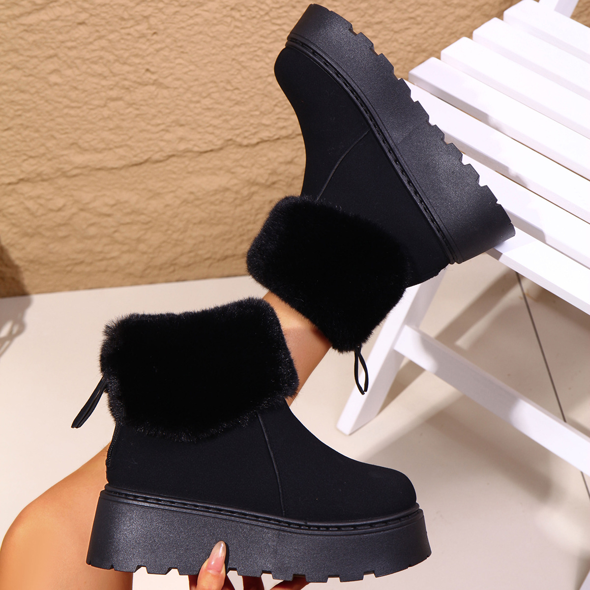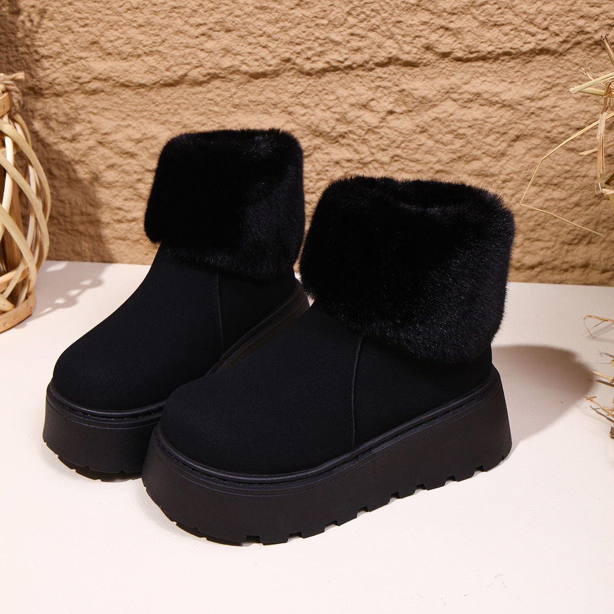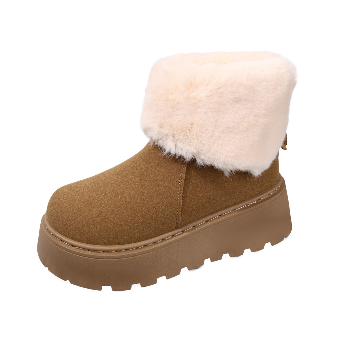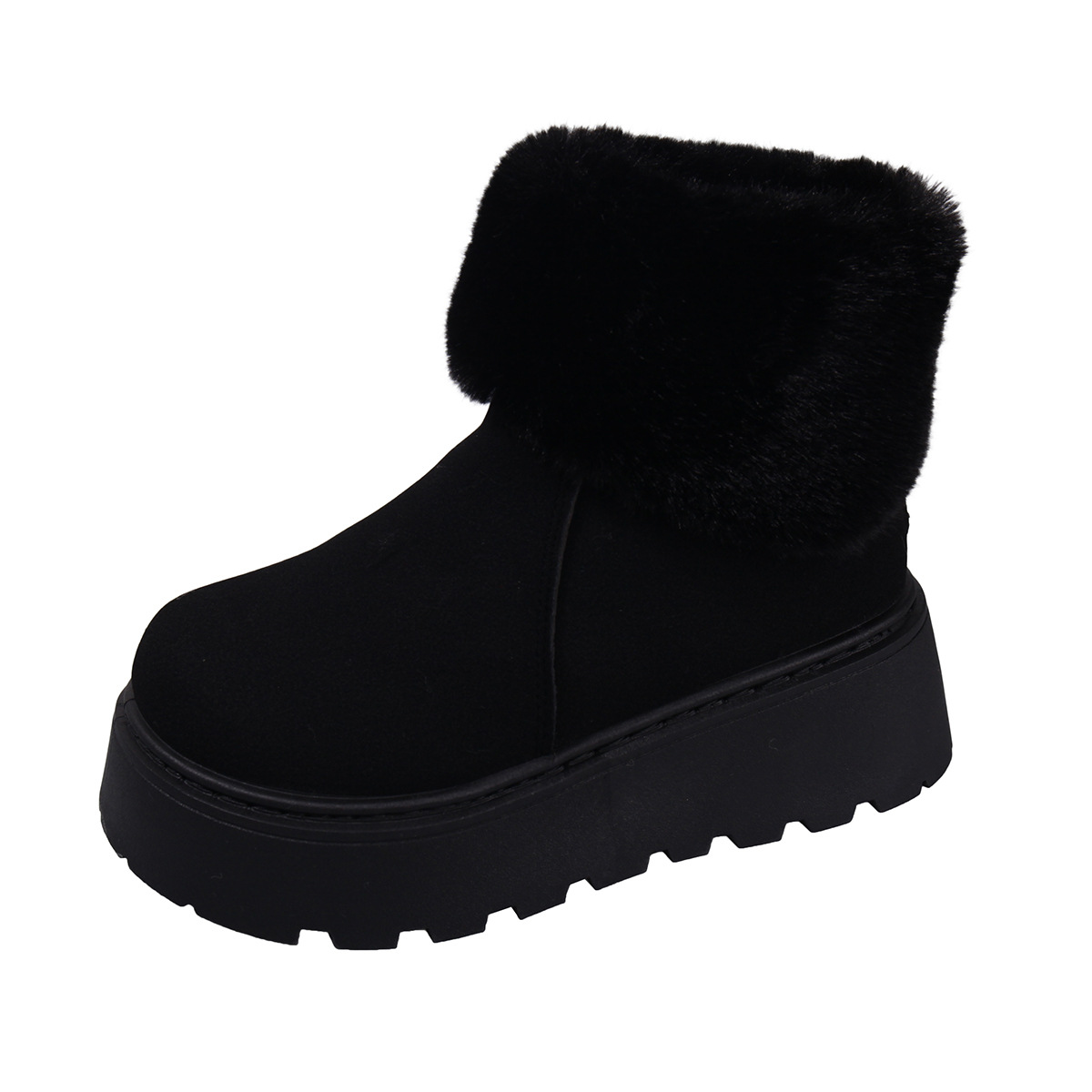 2025 새로운 가을 스타일 플러시 모피 입 플랫폼 두꺼운 밑창 스노우 부츠 여성 한국어 버전 라운드 발가락 따뜻한 대외 무역 대형 여성 부츠