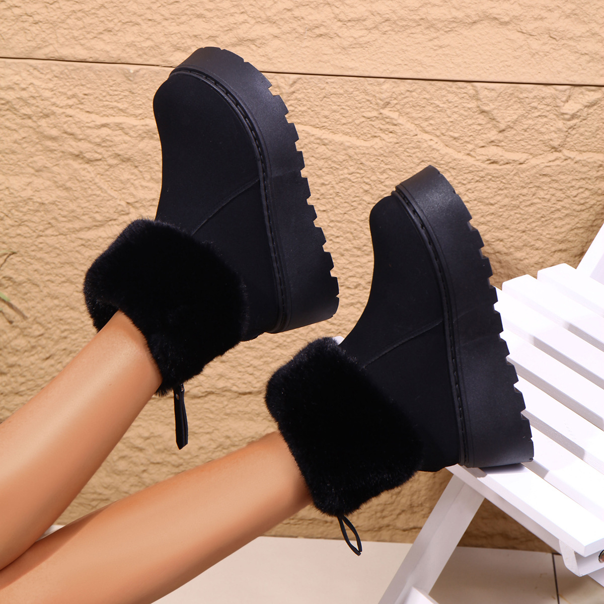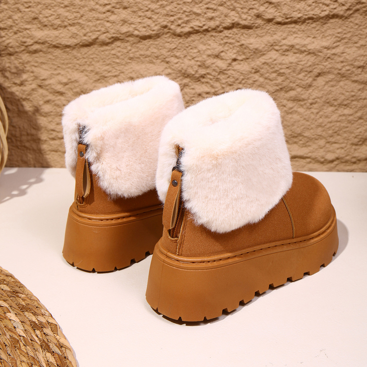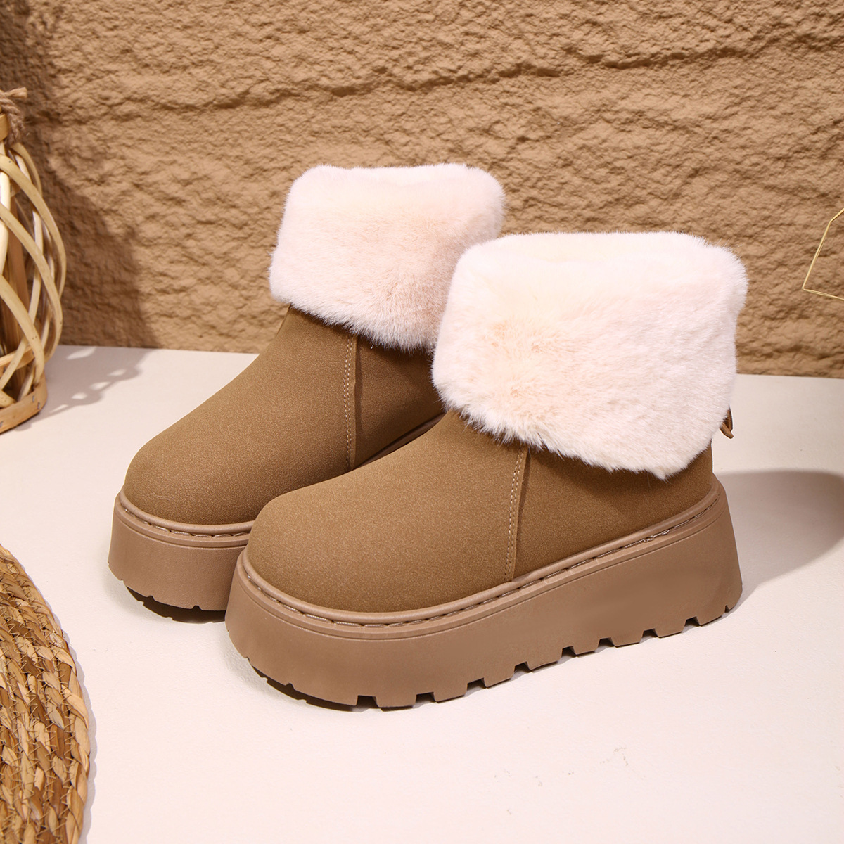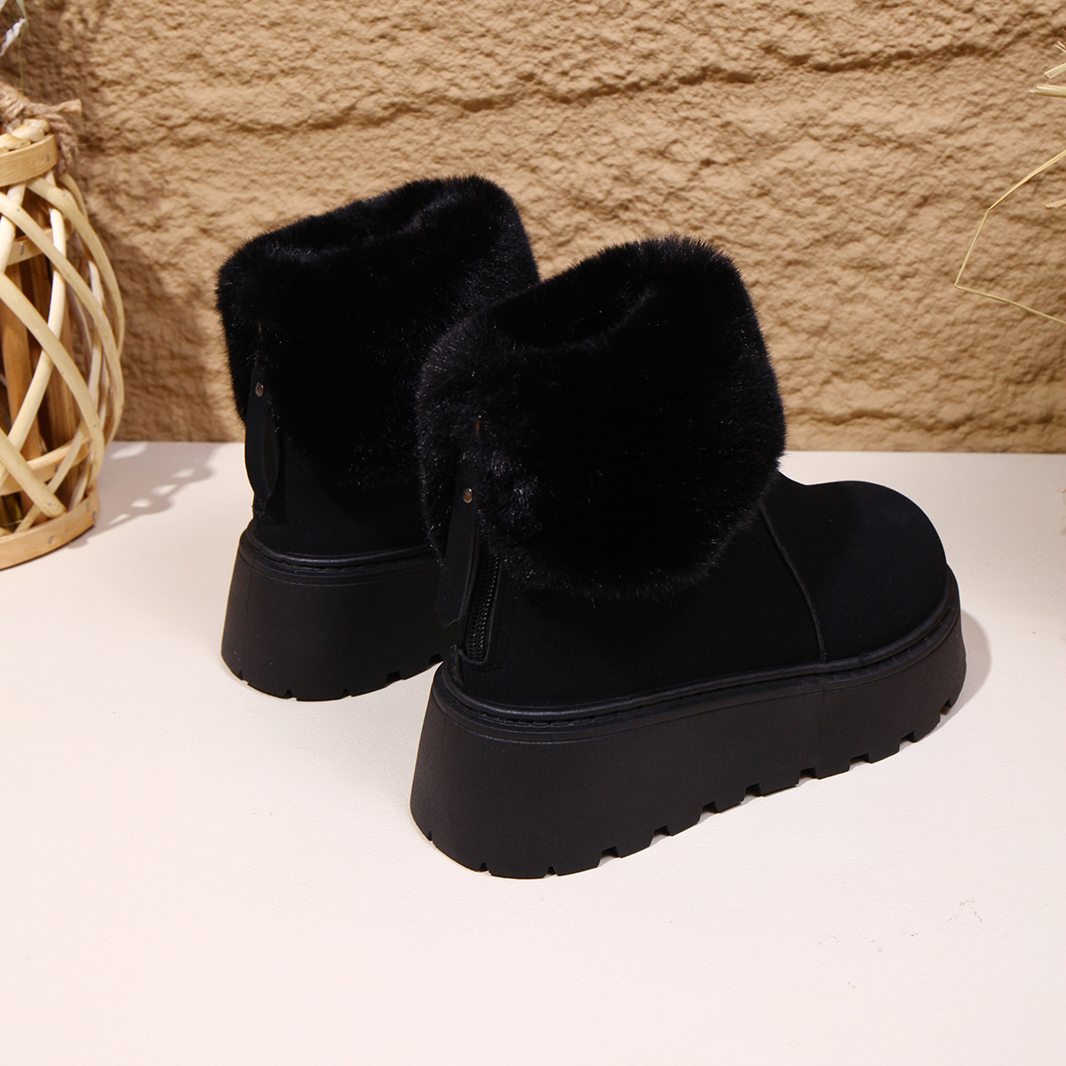 2025 새로운 가을 스타일 플러시 모피 입 플랫폼 두꺼운 밑창 스노우 부츠 여성 한국어 버전 라운드 발가락 따뜻한 대외 무역 대형 여성 부츠