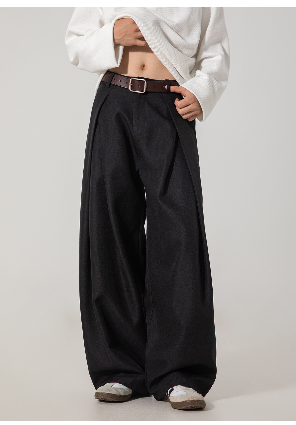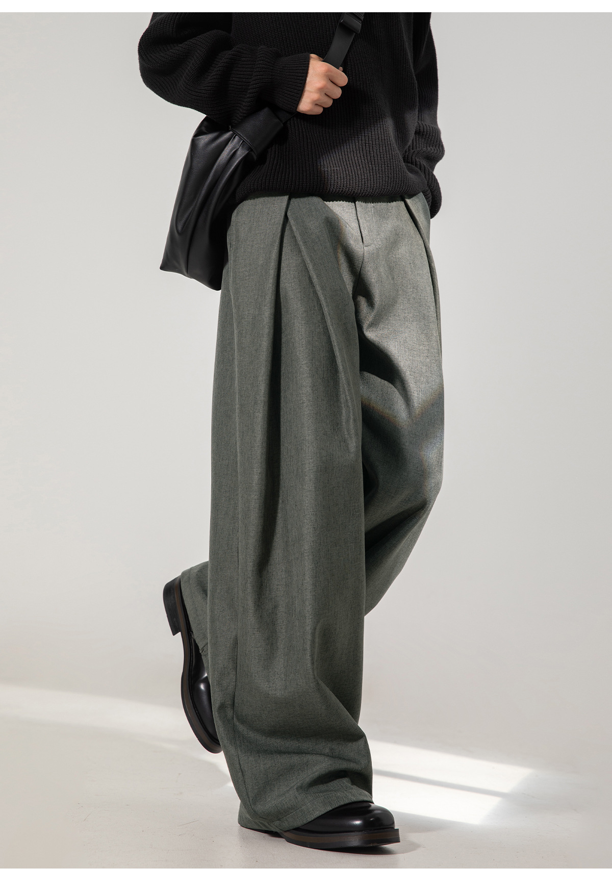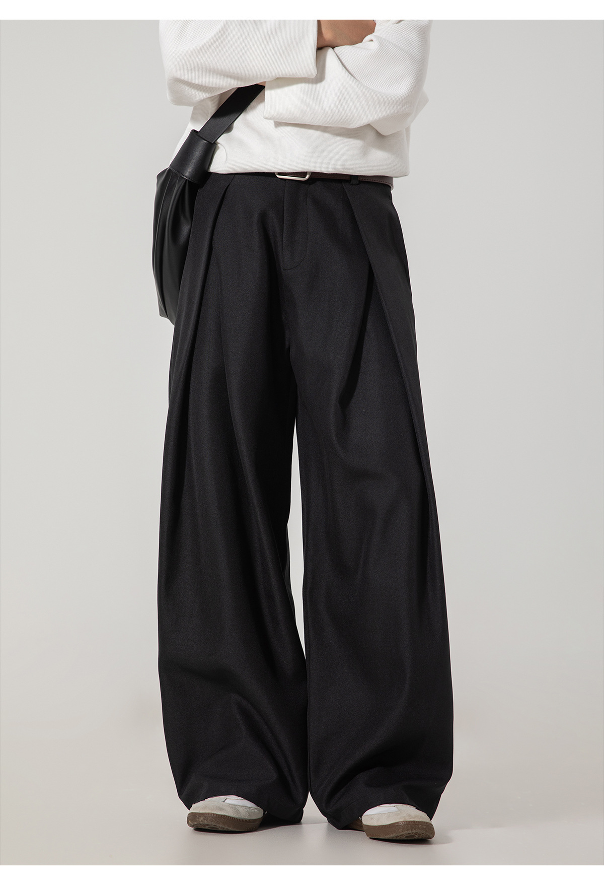 크로스 플리츠 디자인 드레이프 캐주얼 바지 남성 가을 스타일 루즈 스트레이트 팬츠 트렌디 브랜드 레트로 롱 팬츠