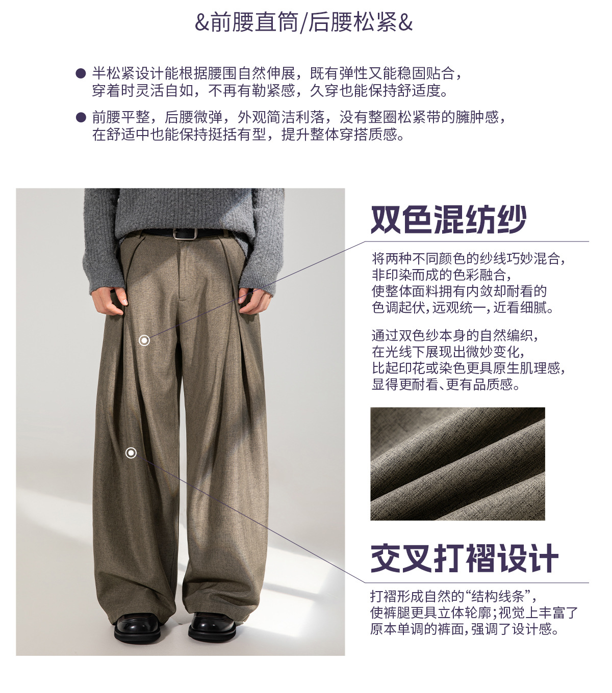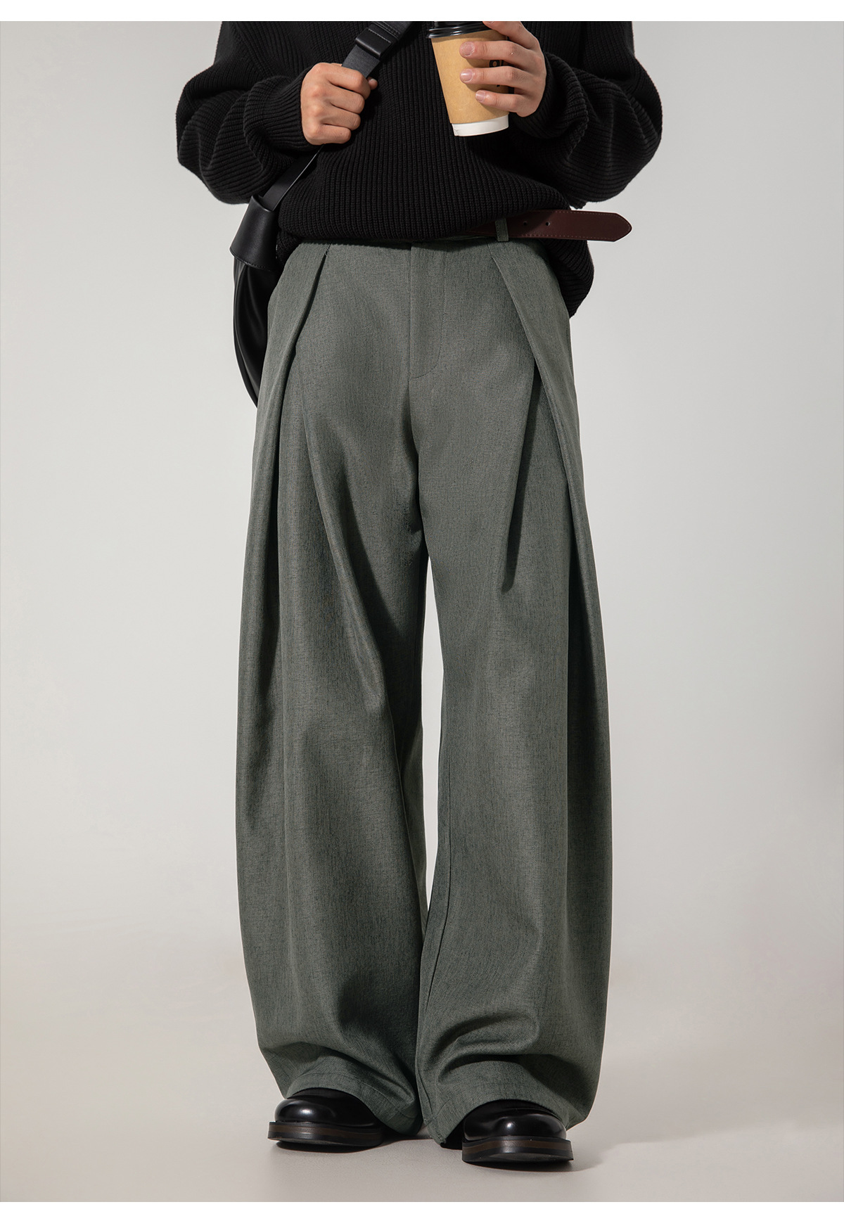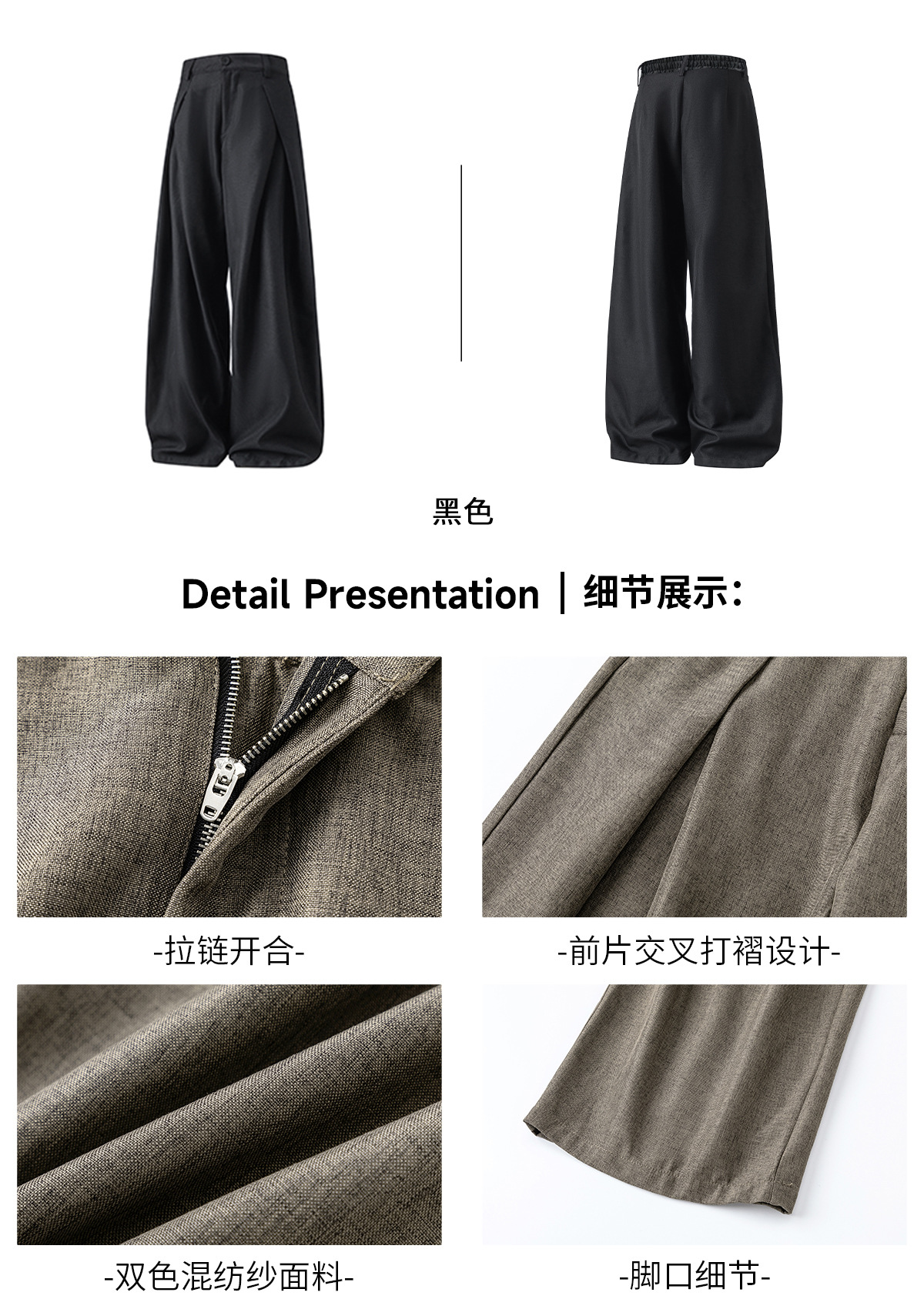 크로스 플리츠 디자인 드레이프 캐주얼 바지 남성 가을 스타일 루즈 스트레이트 팬츠 트렌디 브랜드 레트로 롱 팬츠