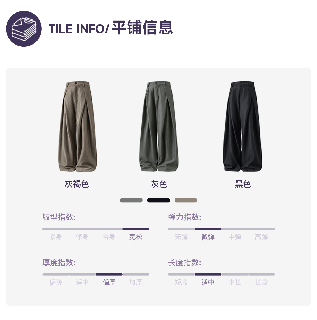 | 弹力 | 微弹 | 颜色 | 黑色, 灰褐色, 灰色, 黑色加绒, 灰褐色加绒, 灰色加绒 |
