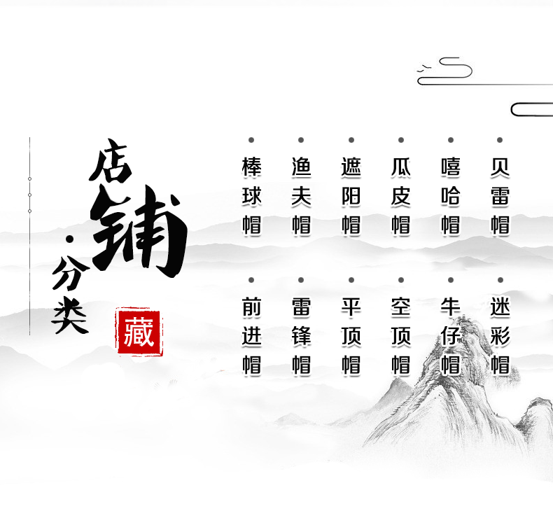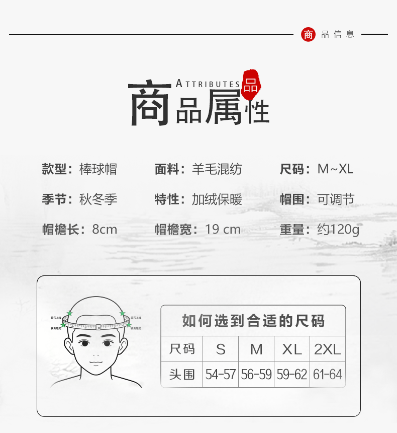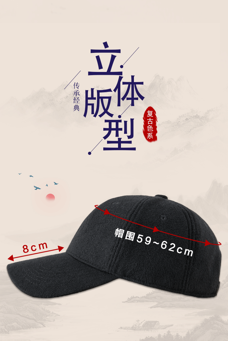 | 产品类别 | 棒球帽 | 流行元素 | 英文字母, 汉字, 复古文体 |