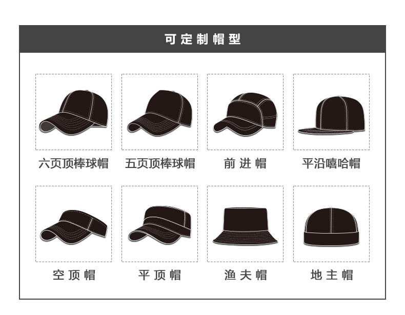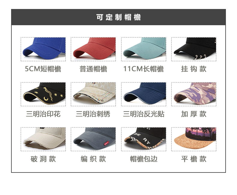 | 帽檐款式 | 弯檐 | 颜色 | S2201#黑色, S2201#深灰, S2201#浅灰, 16028#黑色, 16028#深灰, 16028#浅灰, S2021#黑色, S2021#深灰, S2021#浅灰, 17039#黑色, 17039#深灰, 17039#浅灰, 25221#黑色, 25221#深灰, 25221#浅灰, 25222#黑色, 25222#深灰, 25222#浅灰, 25223#黑色, 25223#深灰, 25223#浅灰, 25224#黑色, 25224#深灰, 25224#浅灰, 24198#黑色, 24198#深灰, 24198#浅灰, 24199#黑色, 24199#深灰, 24199#浅灰 |