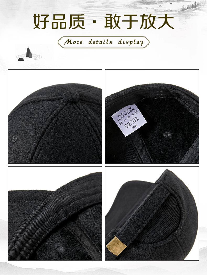 | 面料名称 | 羊毛混纺 | 外贸贸易,跨境货源 | 棒球帽男,冬天保暖帽子,保暖帽子,鸭舌帽女高级感,冷帽大头围,羊毛帽,棒球帽定制,男士帽子冬季,冷帽 |