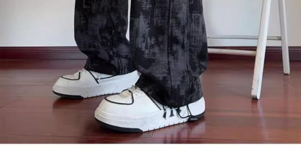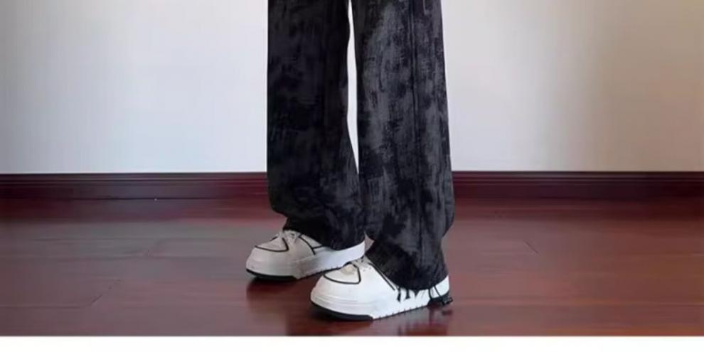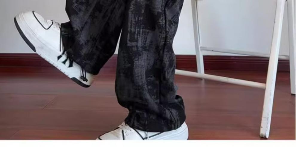 남성용 가을 겨울 아메리칸 하이 스트리트 타이다이 플리스 캐주얼 바지 남성용 다용도 트렌디 스포츠 편안한 플리스 스트레이트 팬츠