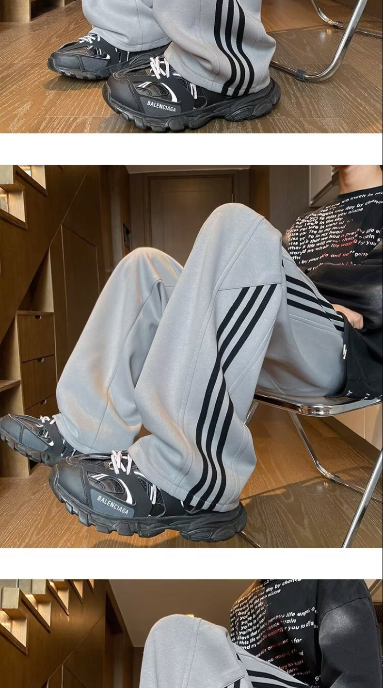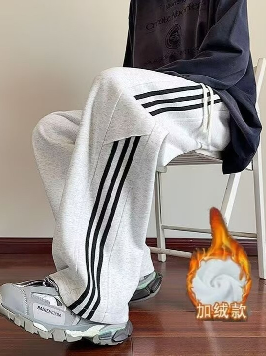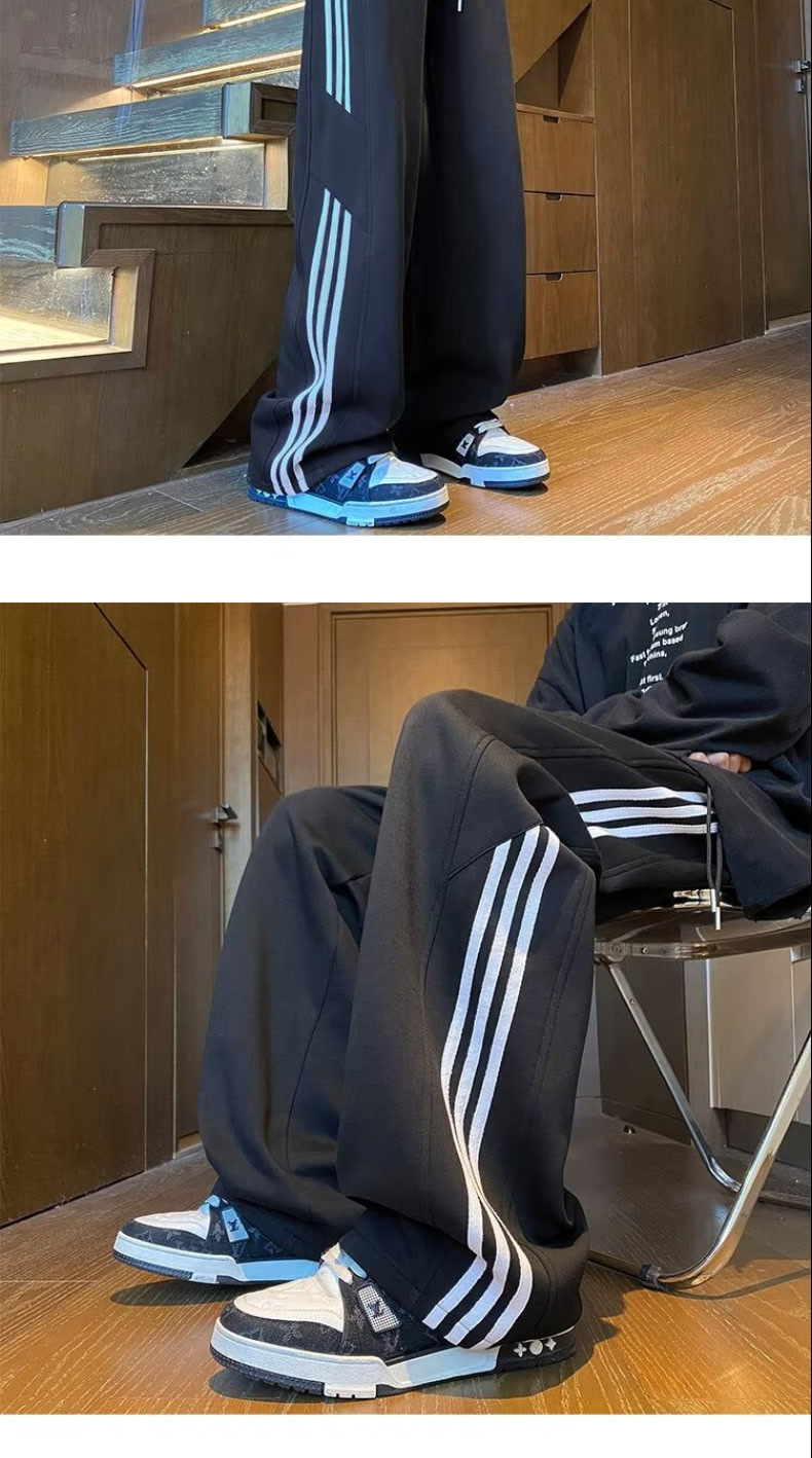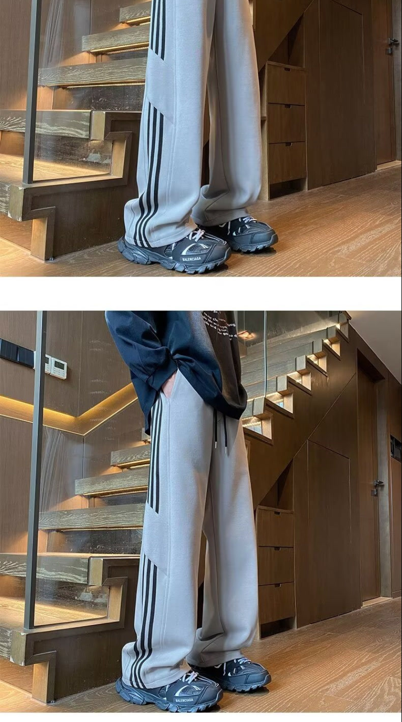 남성용 흰색 줄무늬 바지, 루즈핏 와이드 레그 스포츠 팬츠, 봄 가을용 대형 사이즈 바지, 통통한 남성용 다용도 캐주얼 팬츠