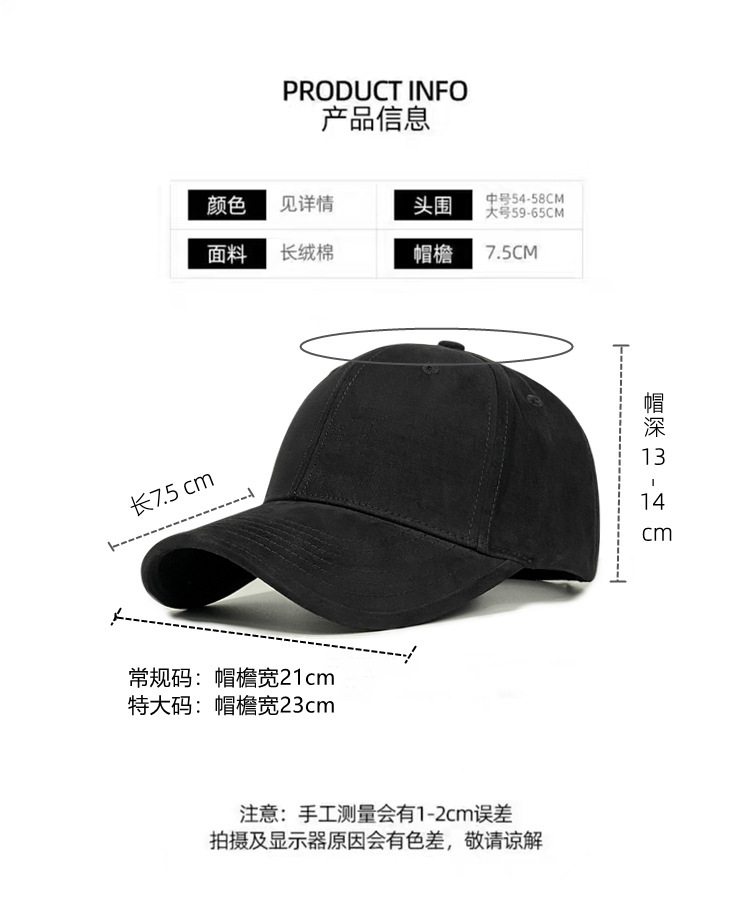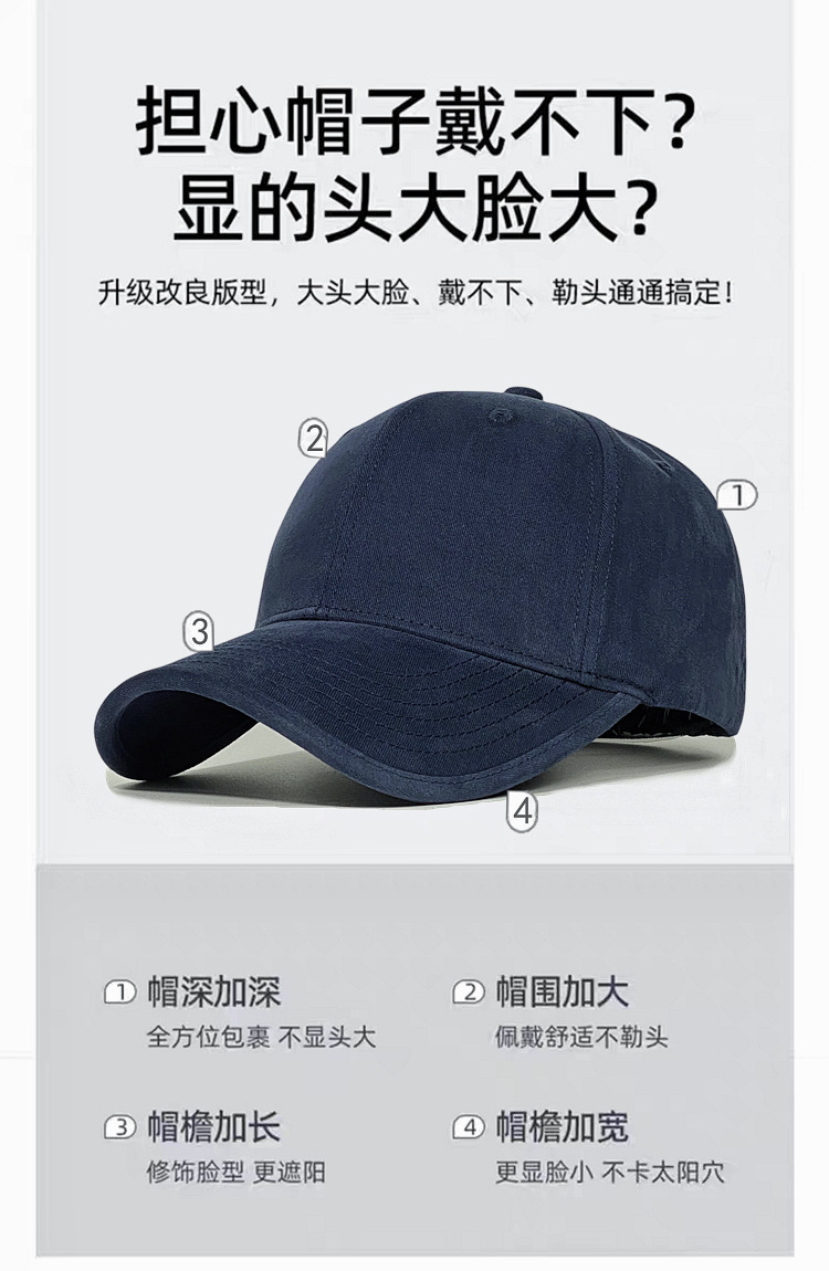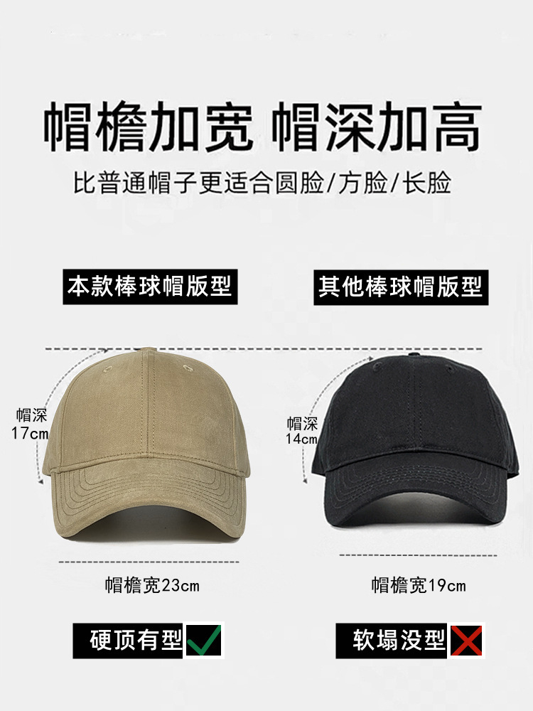 머리둘레가 큰 모자, 얼굴이 작아 보이는 가을 겨울 여성용 하드탑 야구모자, 챙이 넓은 모자, 얼굴이 큰 남성용 깊은 모자