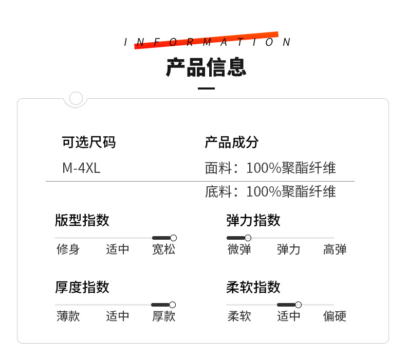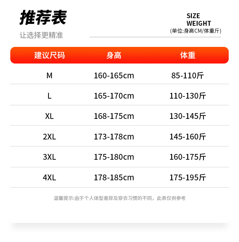 | 颜色 | 黑色, 深灰色, 浅卡其色 | 尺码 | M, L, XL, 2XL, 3XL, 4XL |