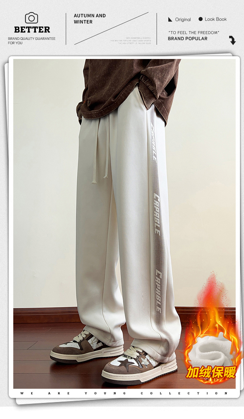 2025년 겨울 남성용 스포츠 벨벳 바지 새로운 청소년 루즈 스트레이트 스웨트 팬츠 소년 캐주얼 바지