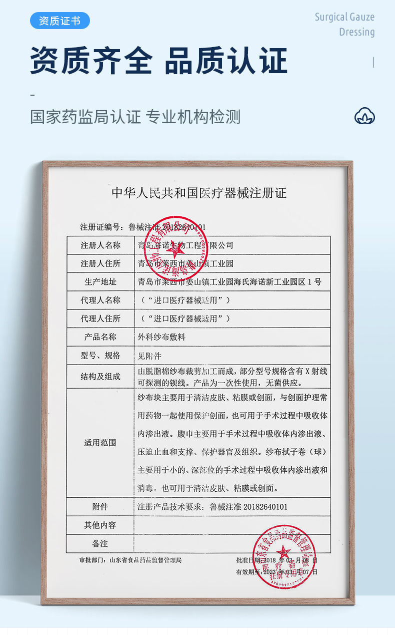 | 生产许可证 | 鲁食药监械生产许20120047号 | 产品注册证 | 鲁械注准20182640101 |