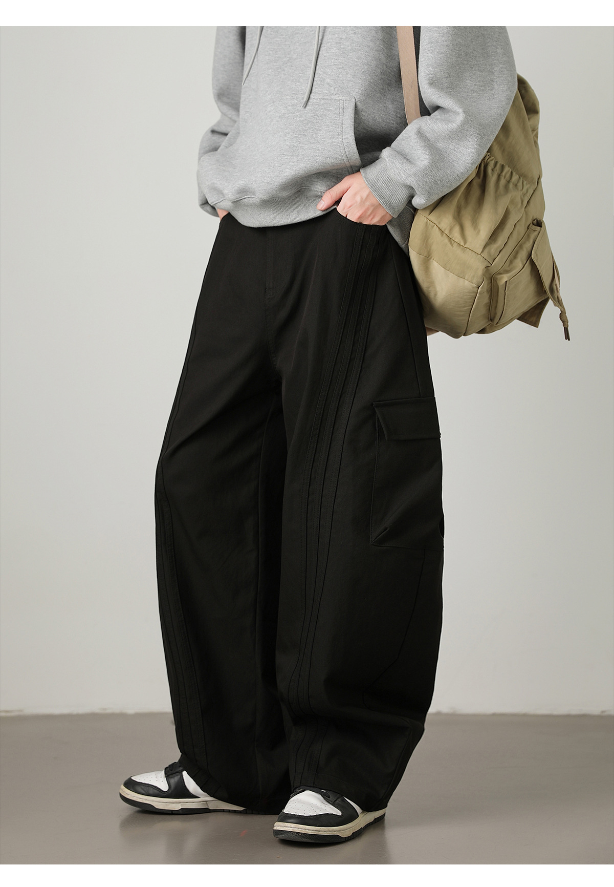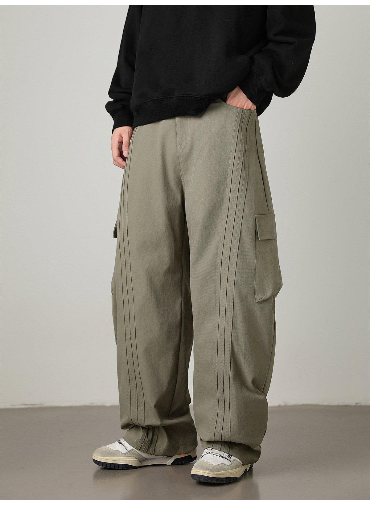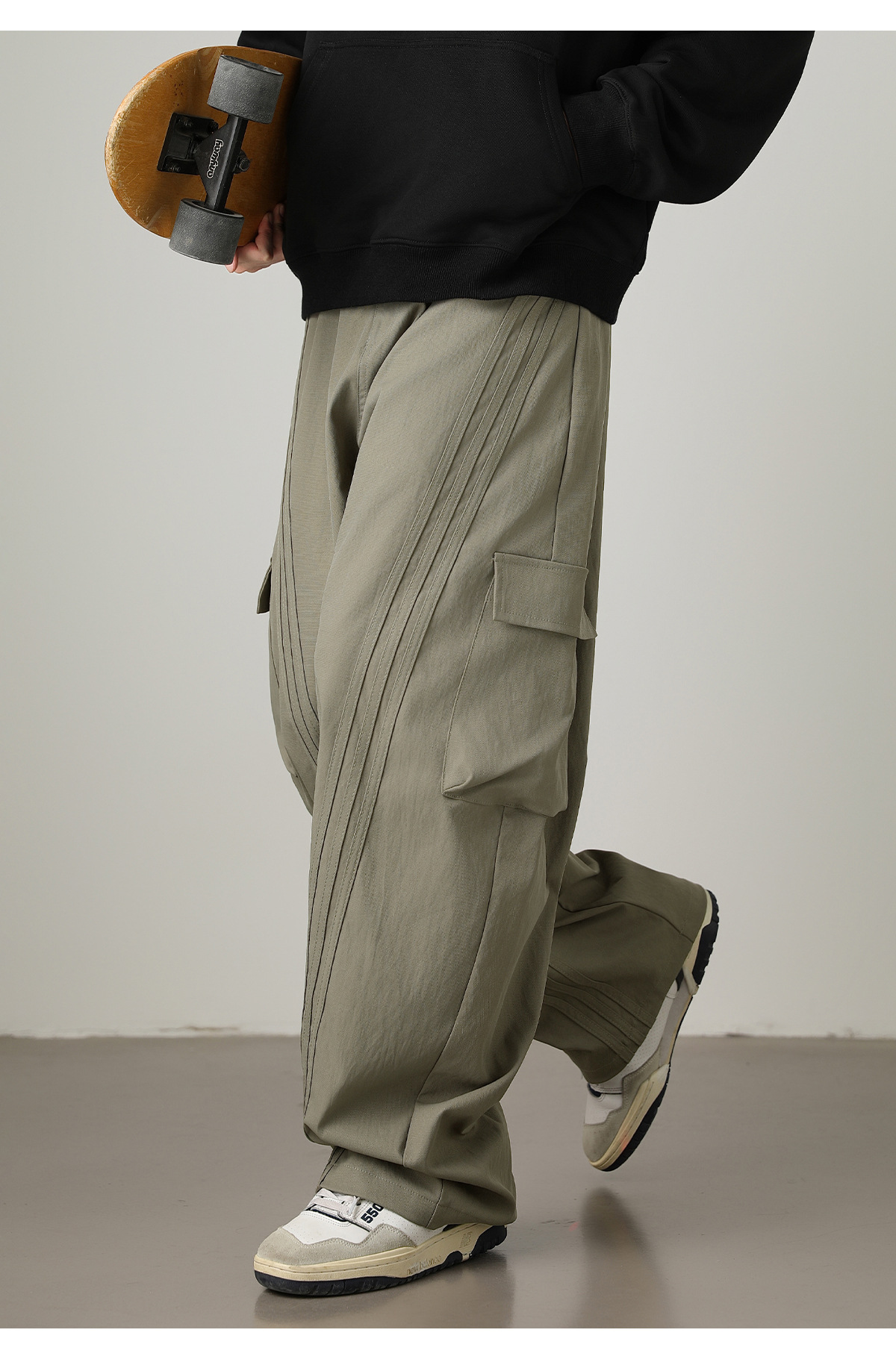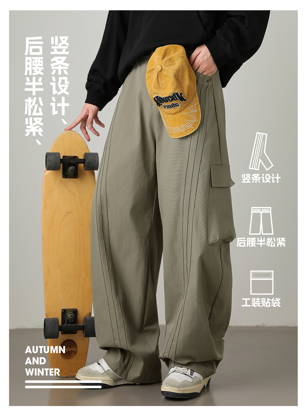 남성용 아메리칸 레트로 워크웨어 캐주얼 팬츠, 가을 스타일 스트라이프 스플라이싱 실루엣 세이버 팬츠, 트렌디한 스포츠 루즈 팬츠