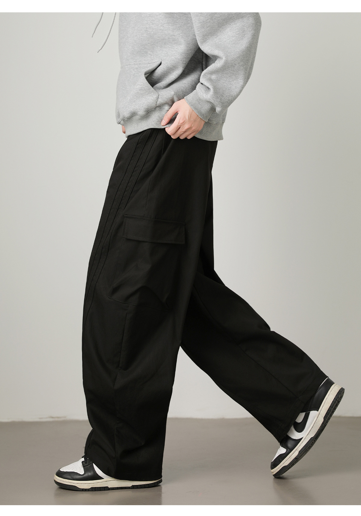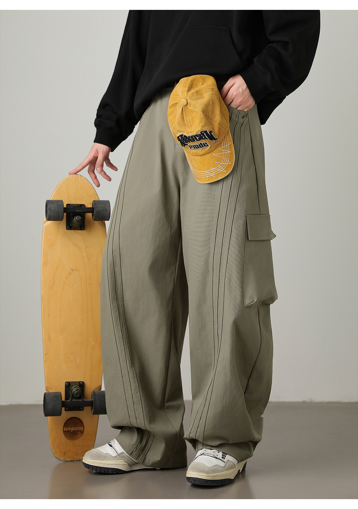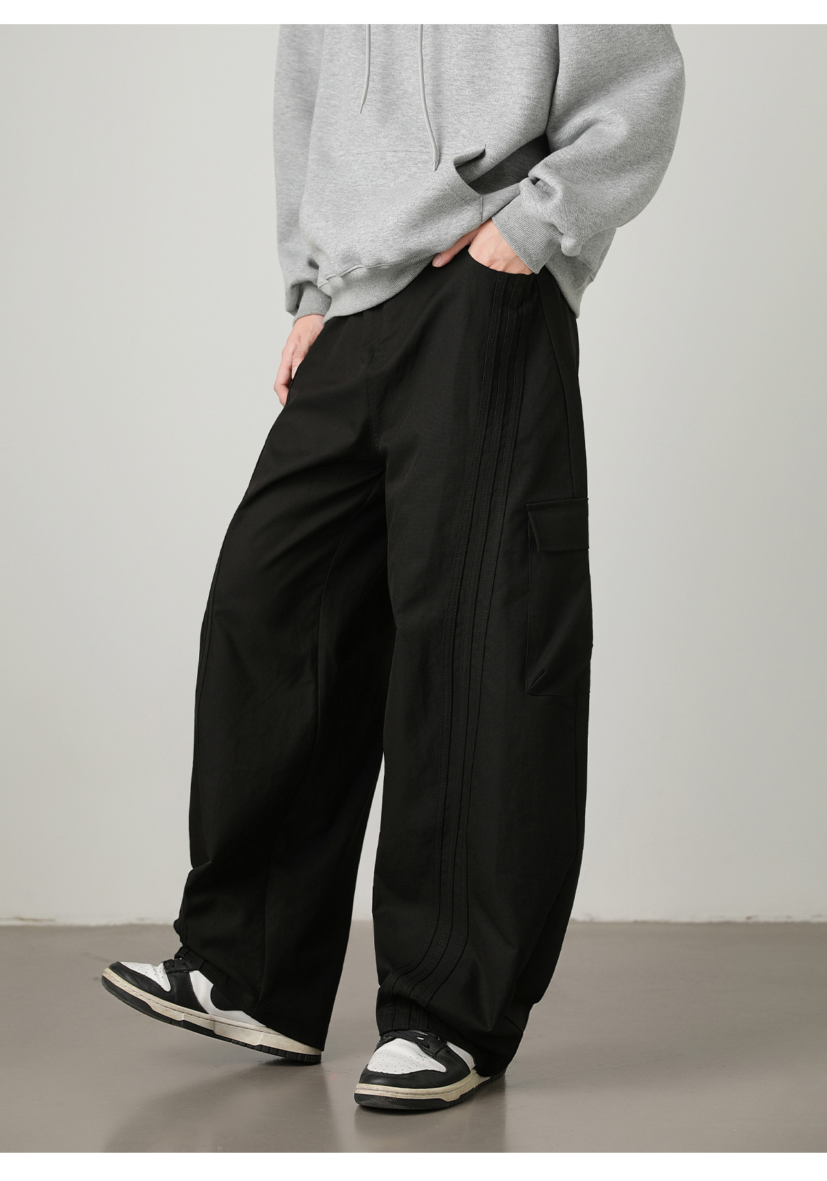 남성용 아메리칸 레트로 워크웨어 캐주얼 팬츠, 가을 스타일 스트라이프 스플라이싱 실루엣 세이버 팬츠, 트렌디한 스포츠 루즈 팬츠