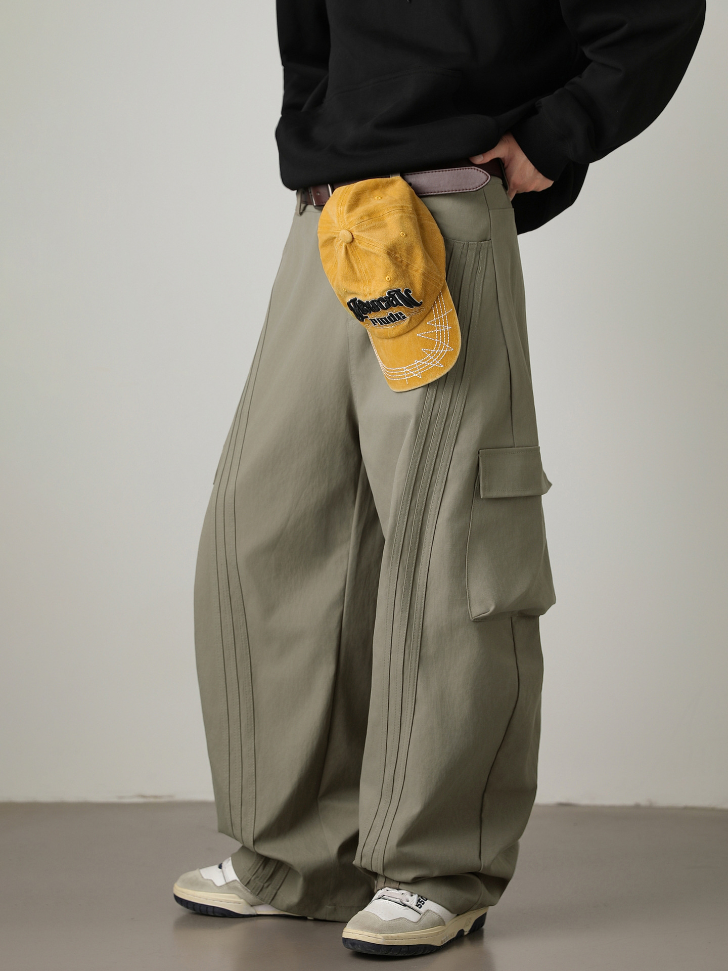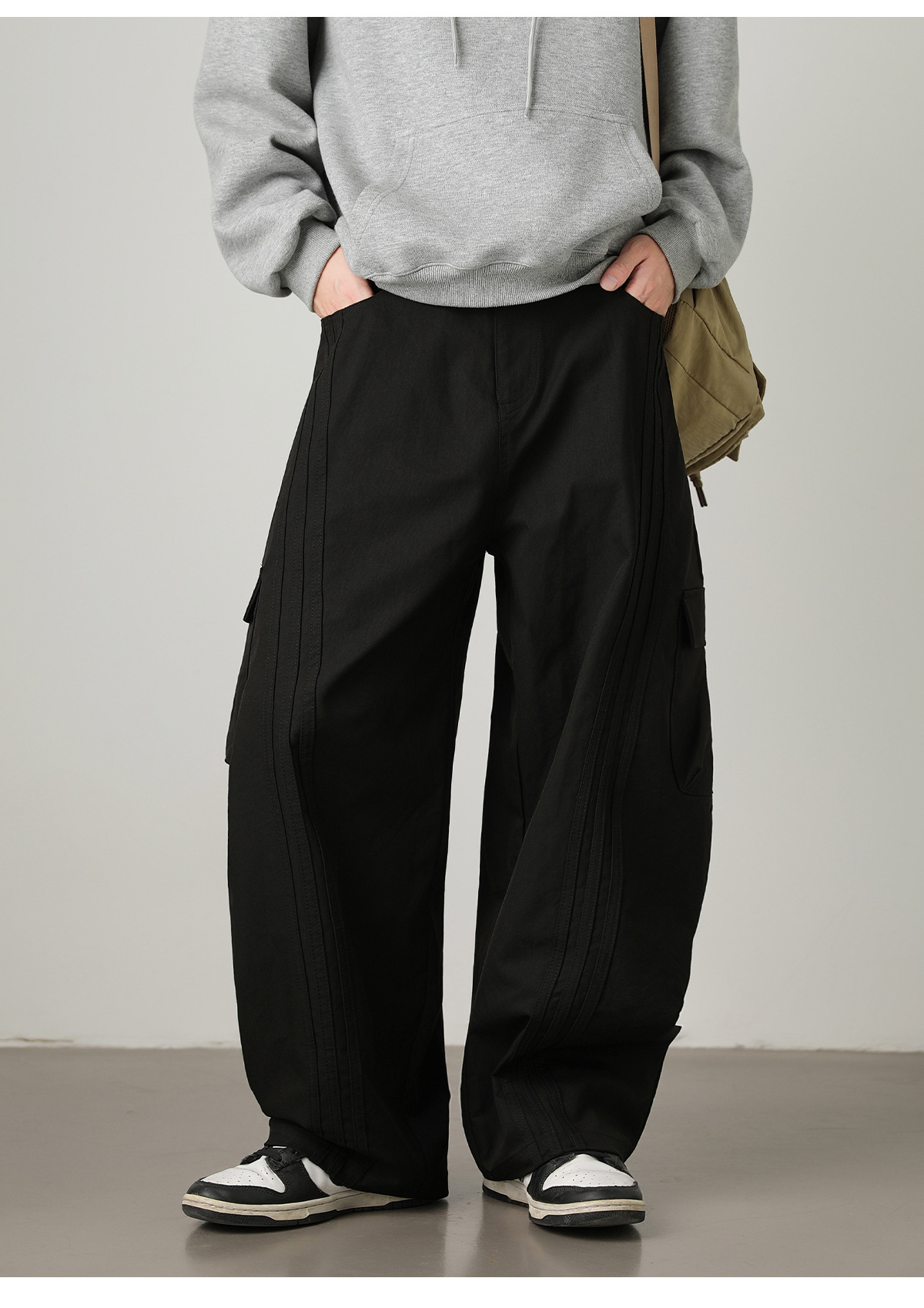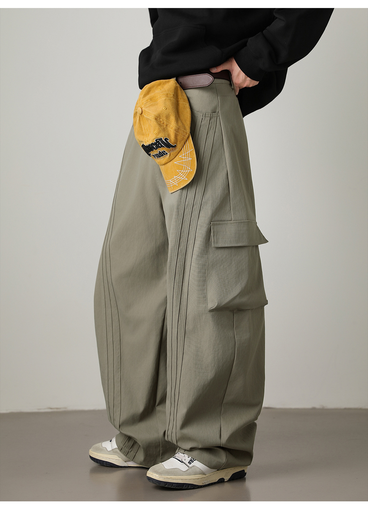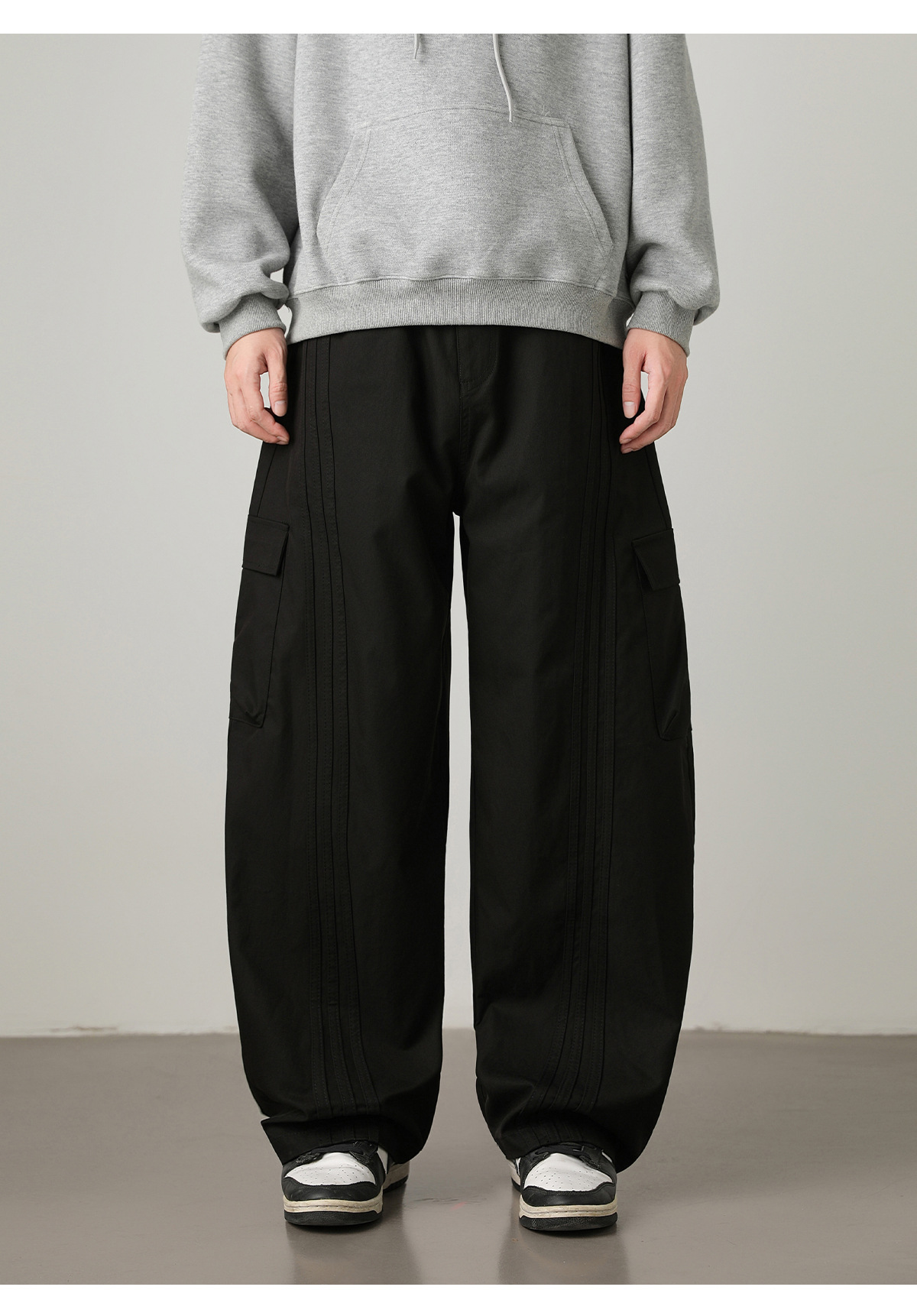 남성용 아메리칸 레트로 워크웨어 캐주얼 팬츠, 가을 스타일 스트라이프 스플라이싱 실루엣 세이버 팬츠, 트렌디한 스포츠 루즈 팬츠
