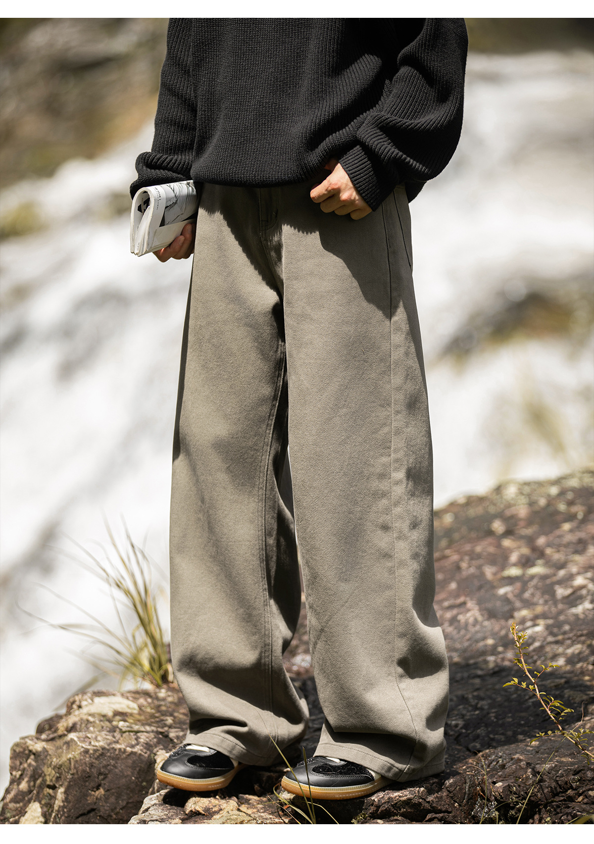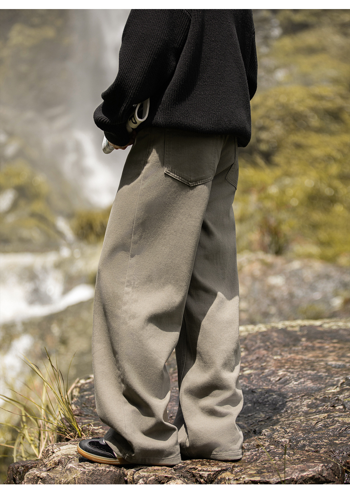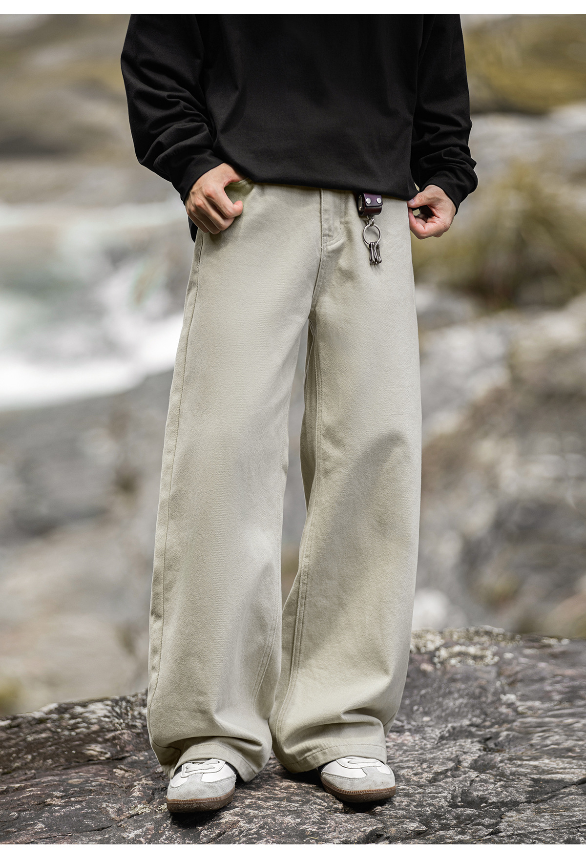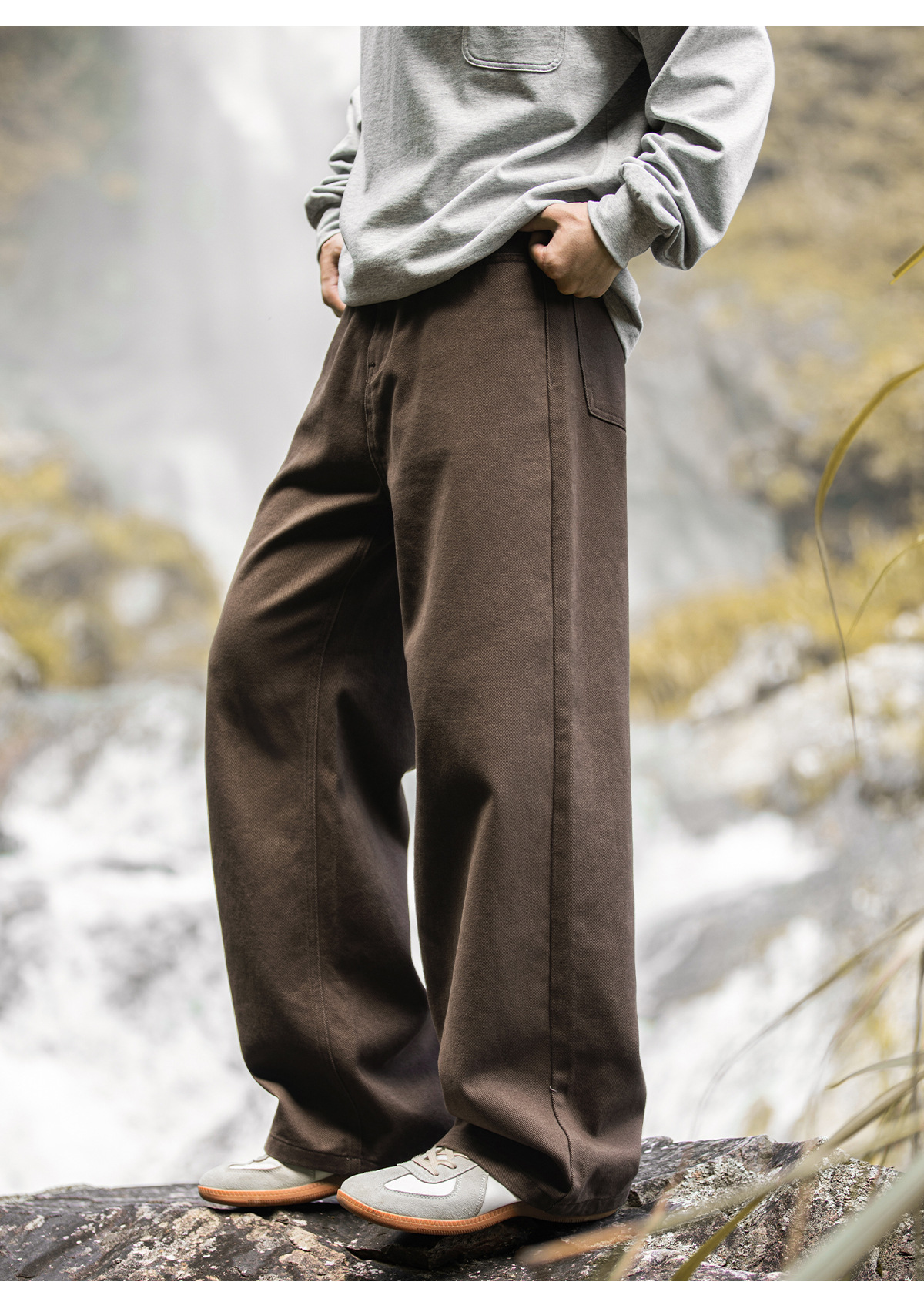 가을 스타일의 남성용 능직 마이크로 와이드 아웃도어 루즈 스트레이트 캐주얼 팬츠, 텍스처드 퓨어 코튼 트렌디 브랜드 레트로 반탄성 바지