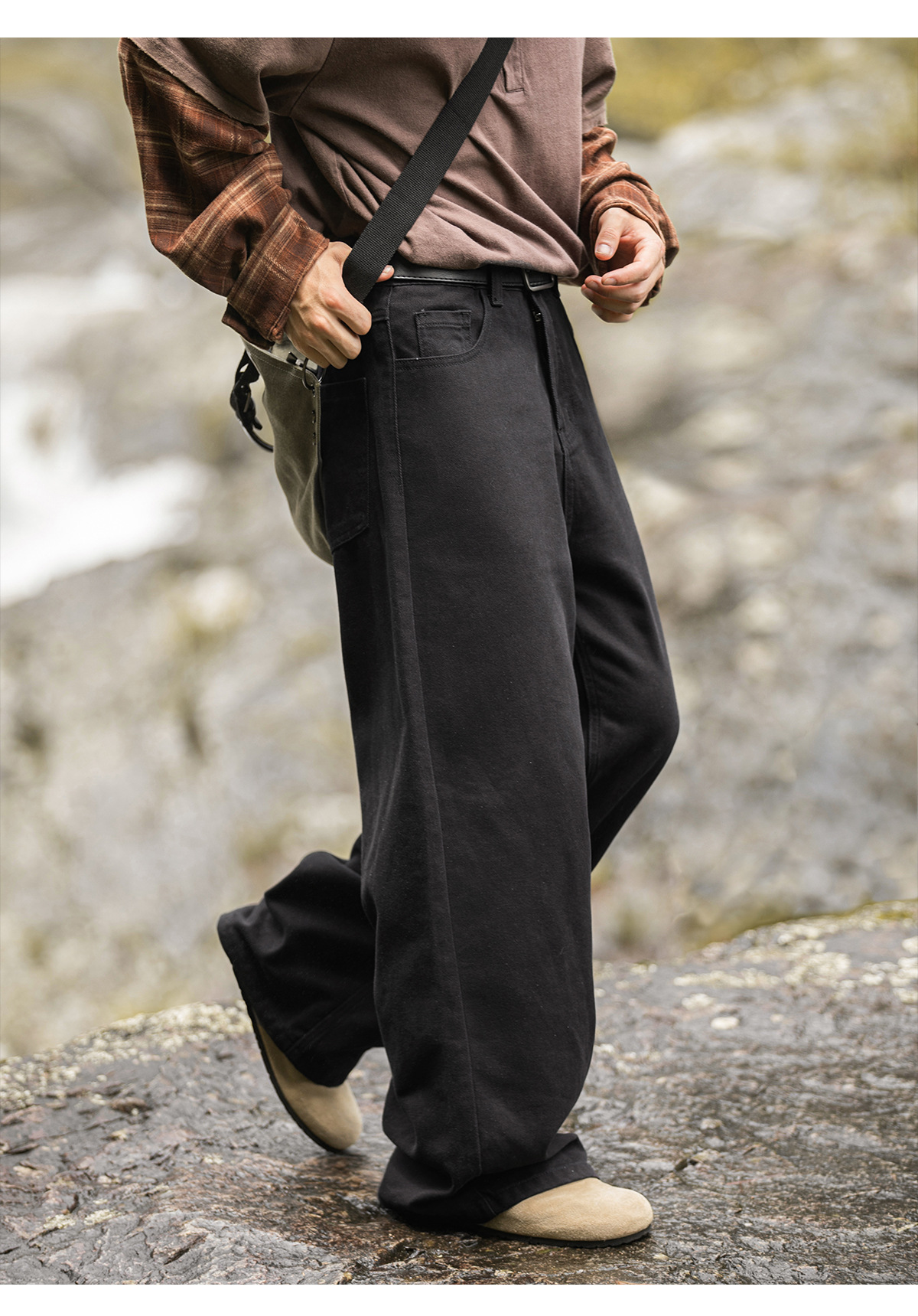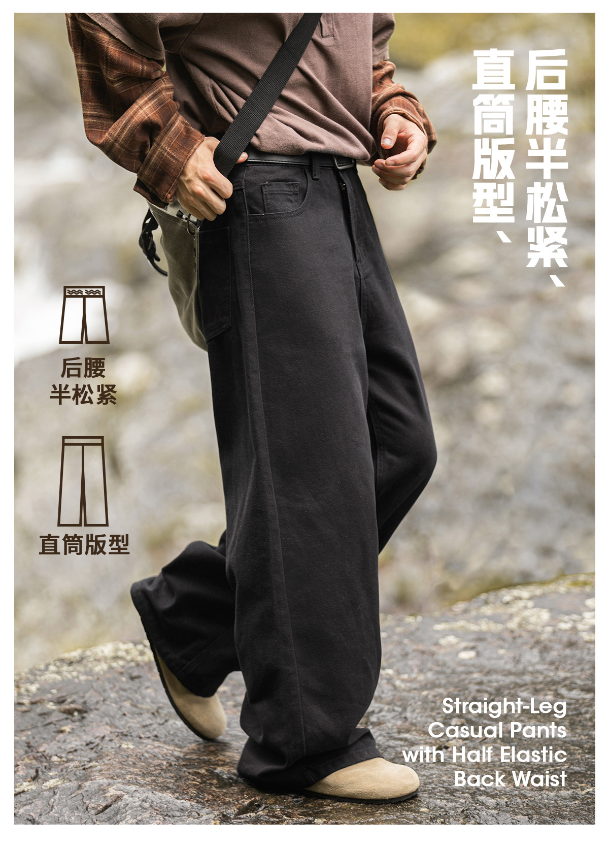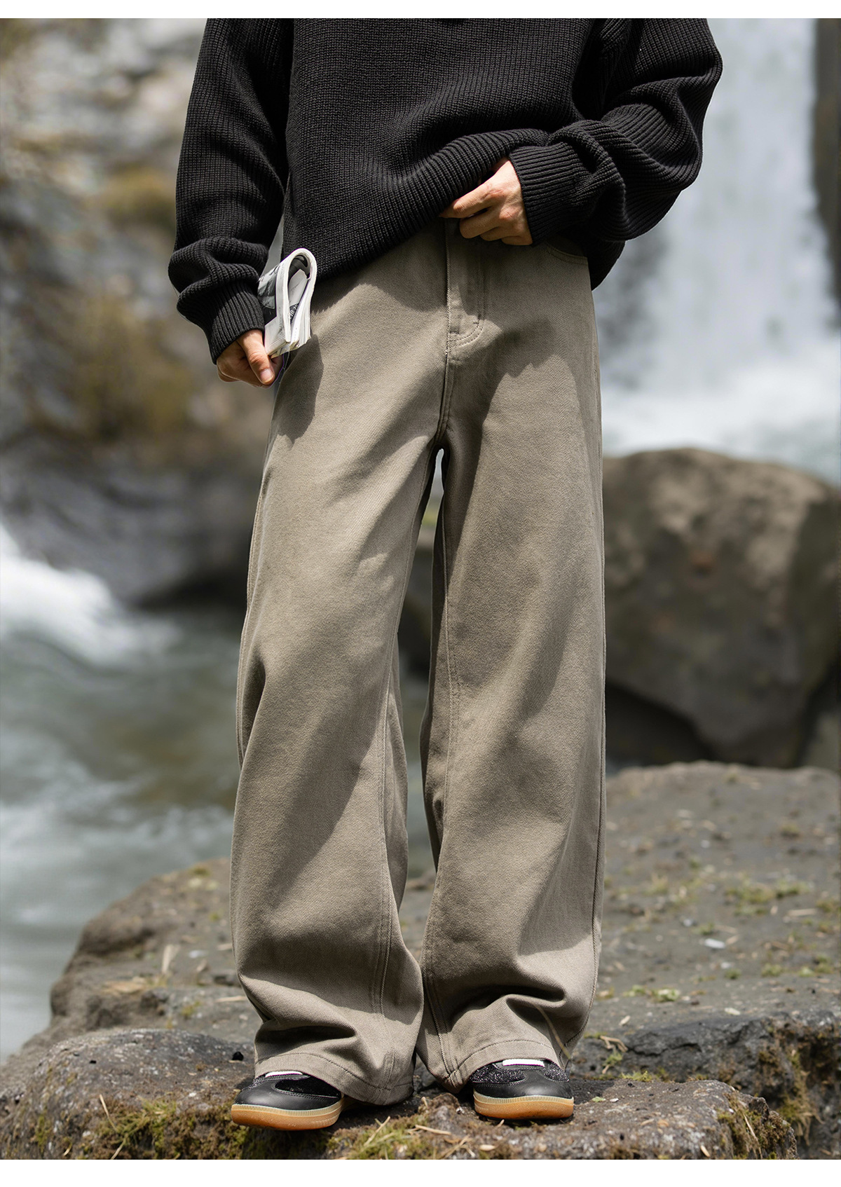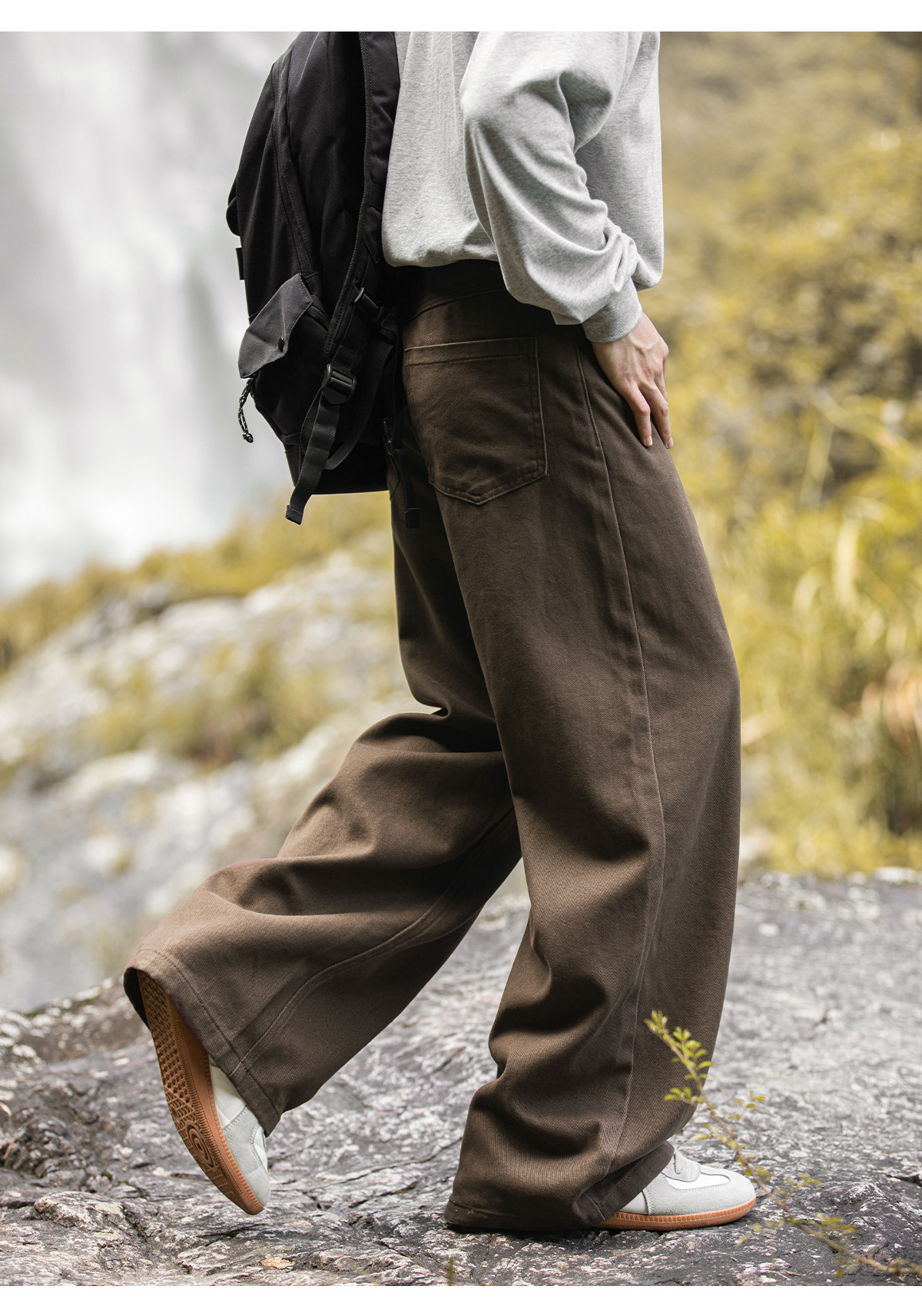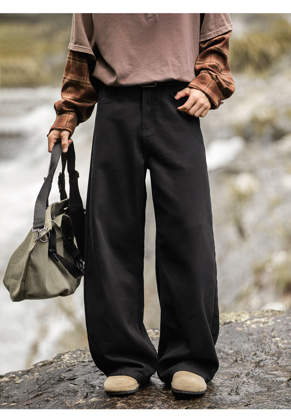 가을 스타일의 남성용 능직 마이크로 와이드 아웃도어 루즈 스트레이트 캐주얼 팬츠, 텍스처드 퓨어 코튼 트렌디 브랜드 레트로 반탄성 바지