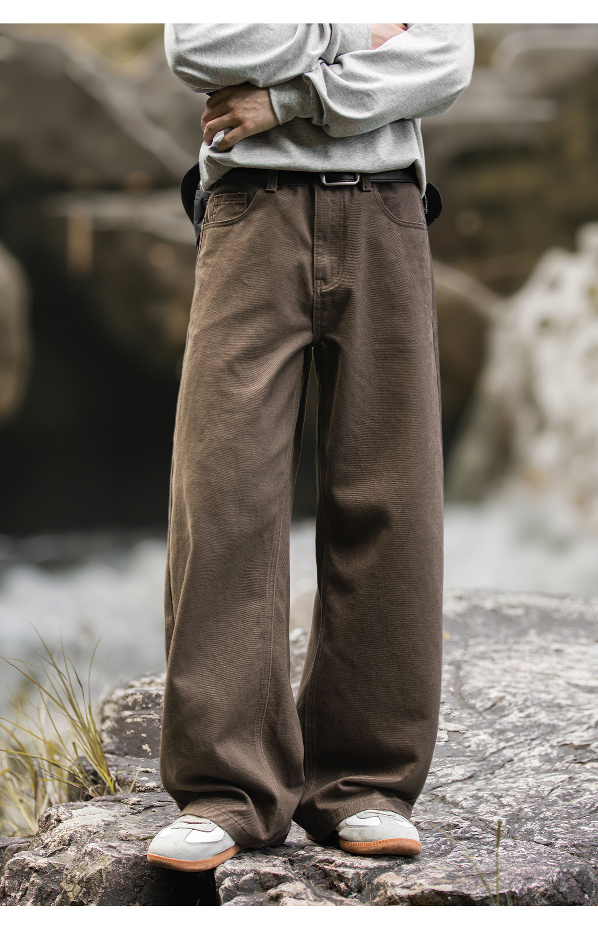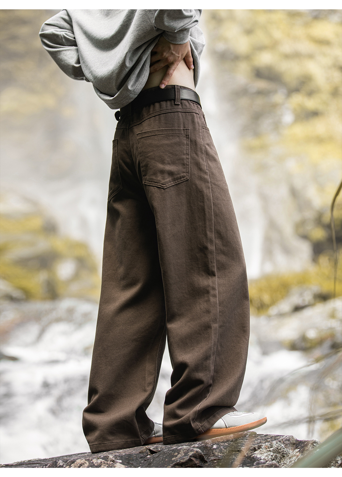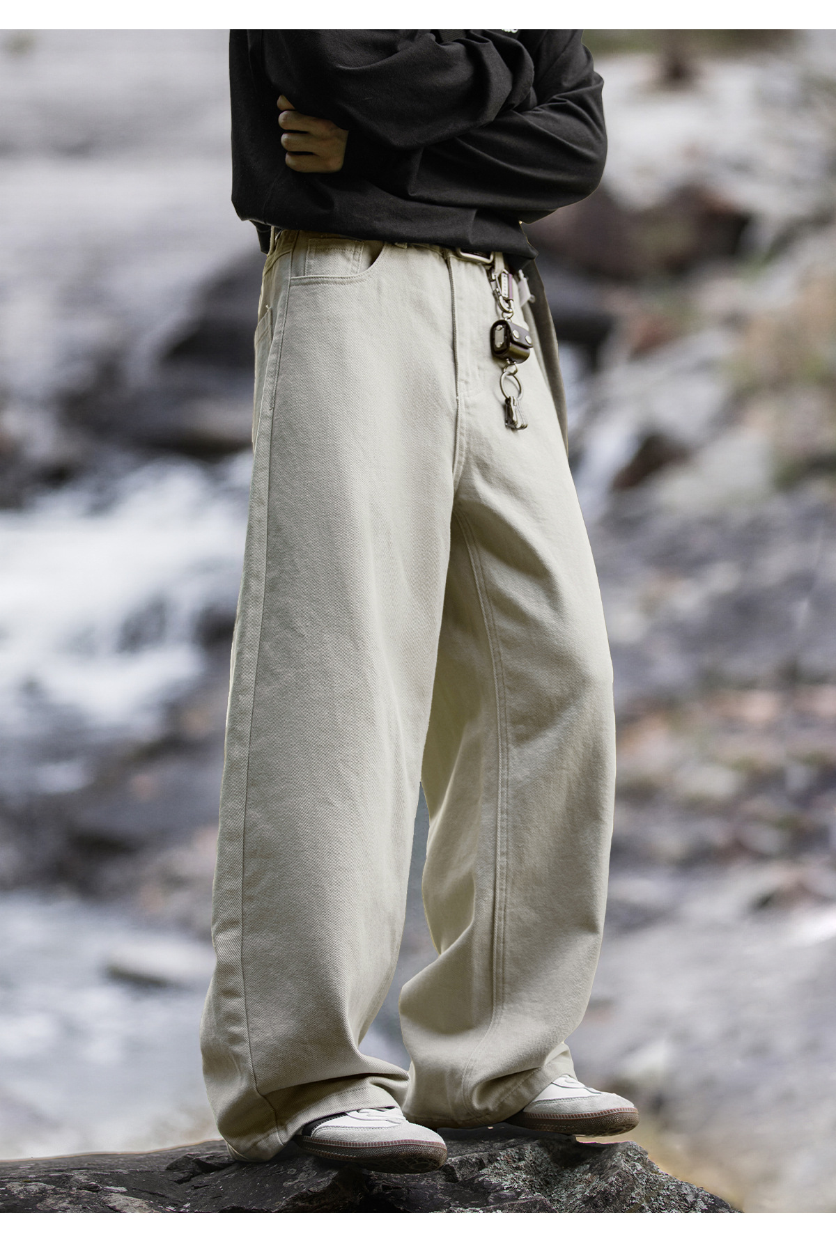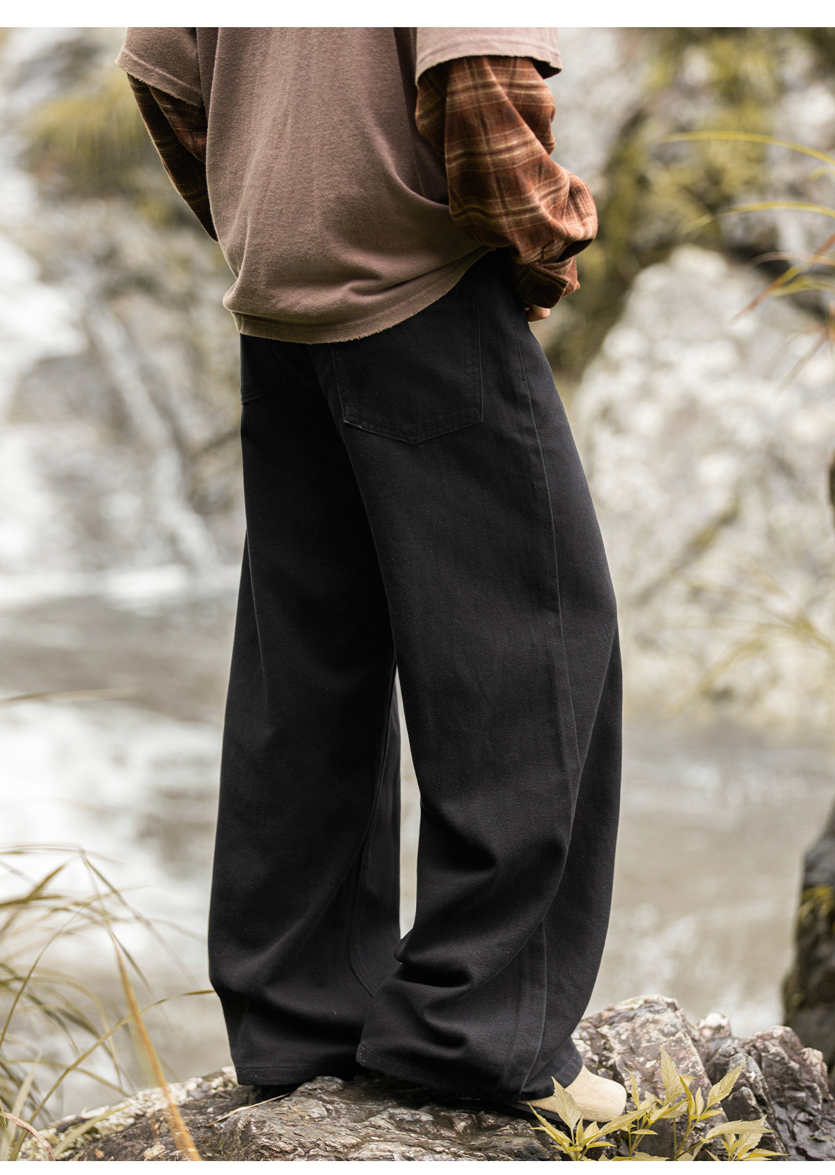 가을 스타일의 남성용 능직 마이크로 와이드 아웃도어 루즈 스트레이트 캐주얼 팬츠, 텍스처드 퓨어 코튼 트렌디 브랜드 레트로 반탄성 바지