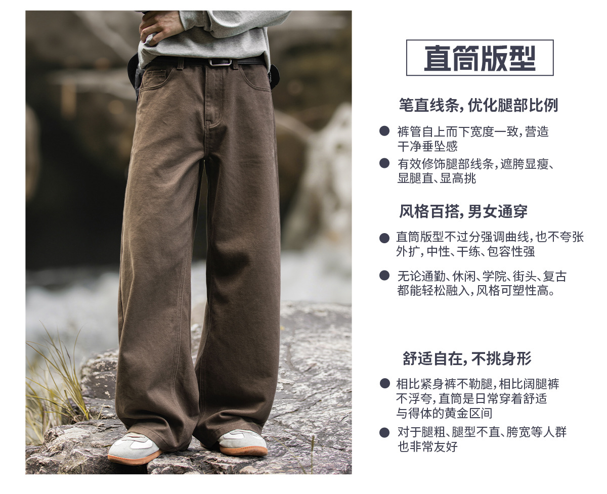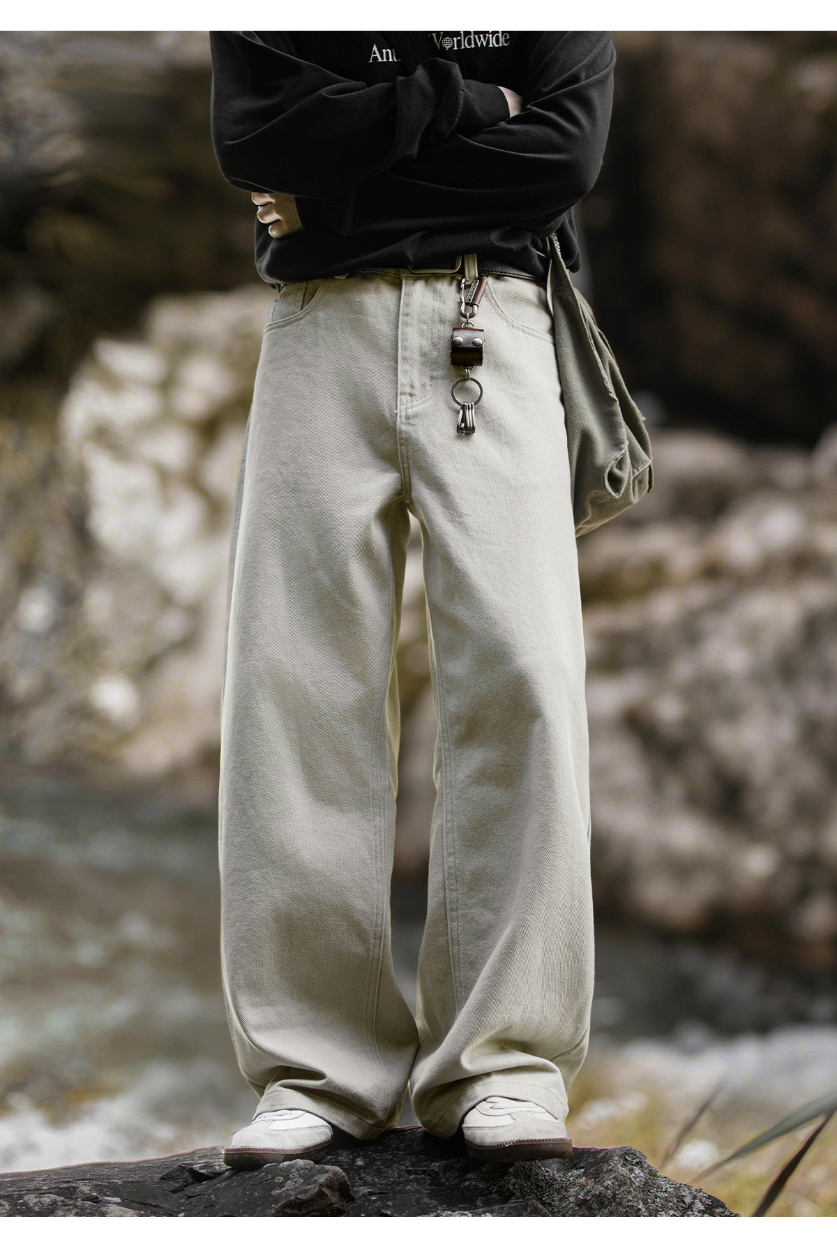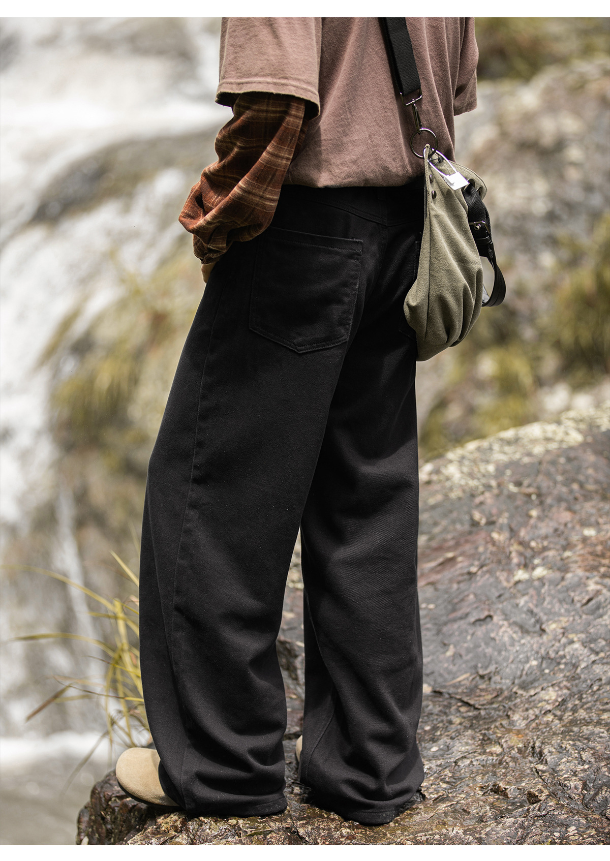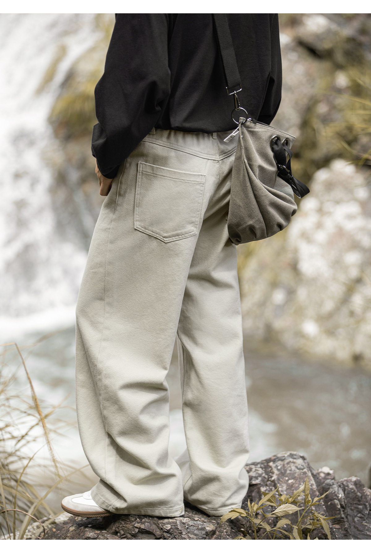 가을 스타일의 남성용 능직 마이크로 와이드 아웃도어 루즈 스트레이트 캐주얼 팬츠, 텍스처드 퓨어 코튼 트렌디 브랜드 레트로 반탄성 바지