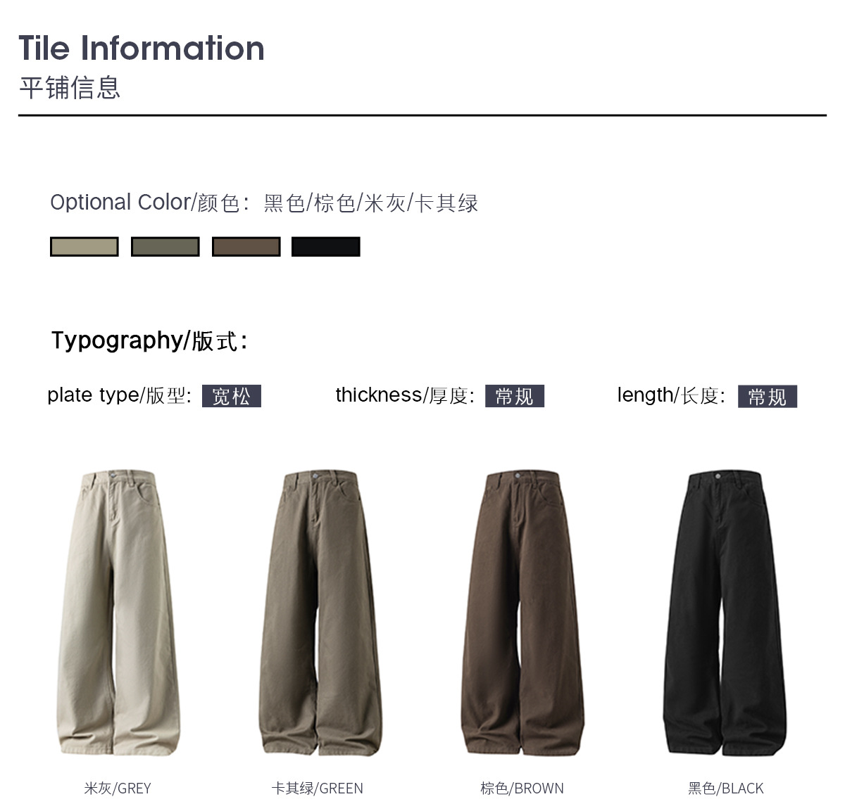 | 弹力 | 微弹 | 颜色 | 黑色, 卡其绿, 米灰, 棕色 |