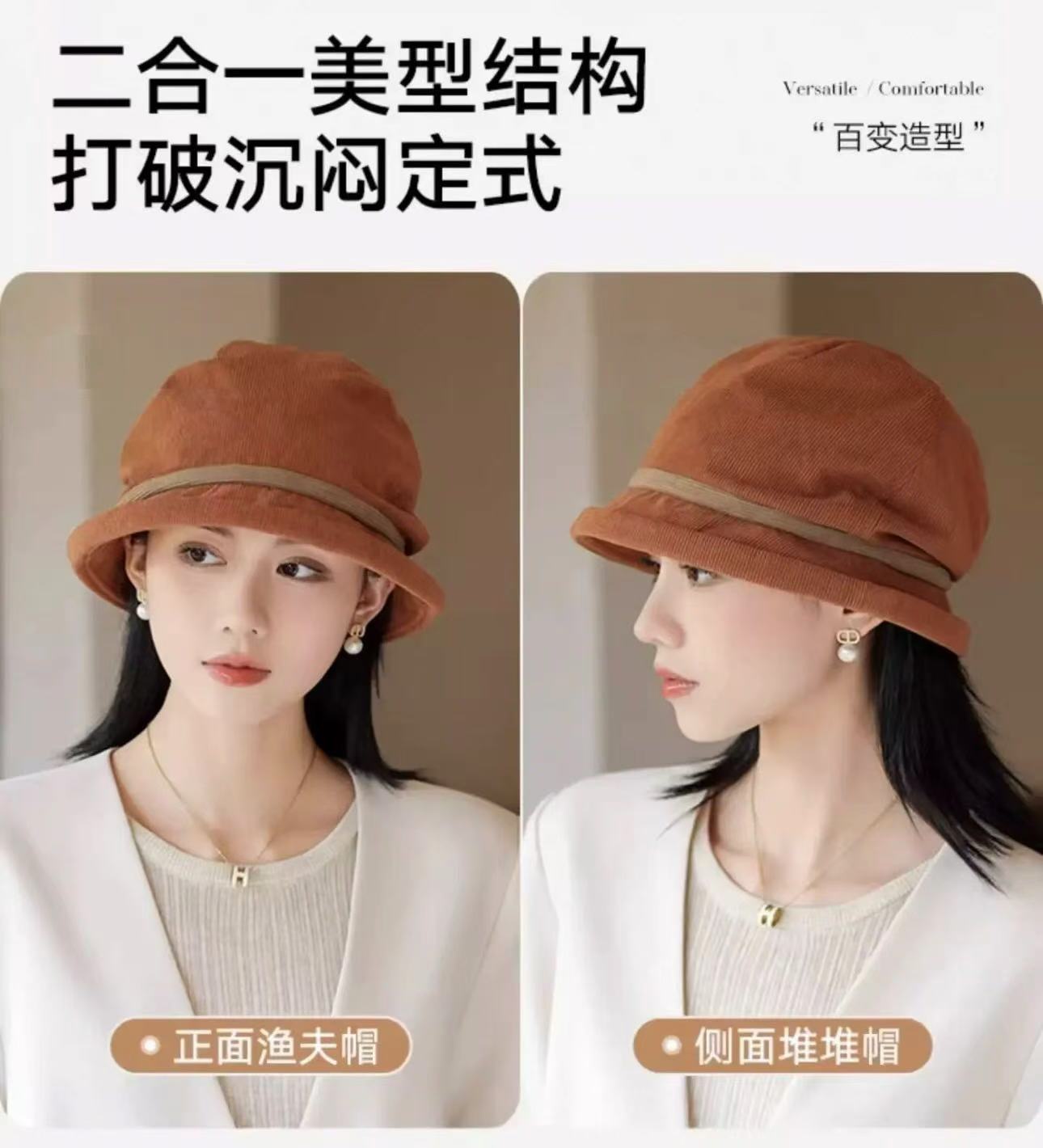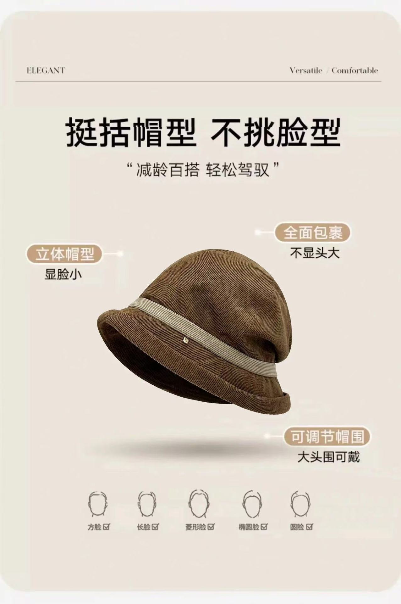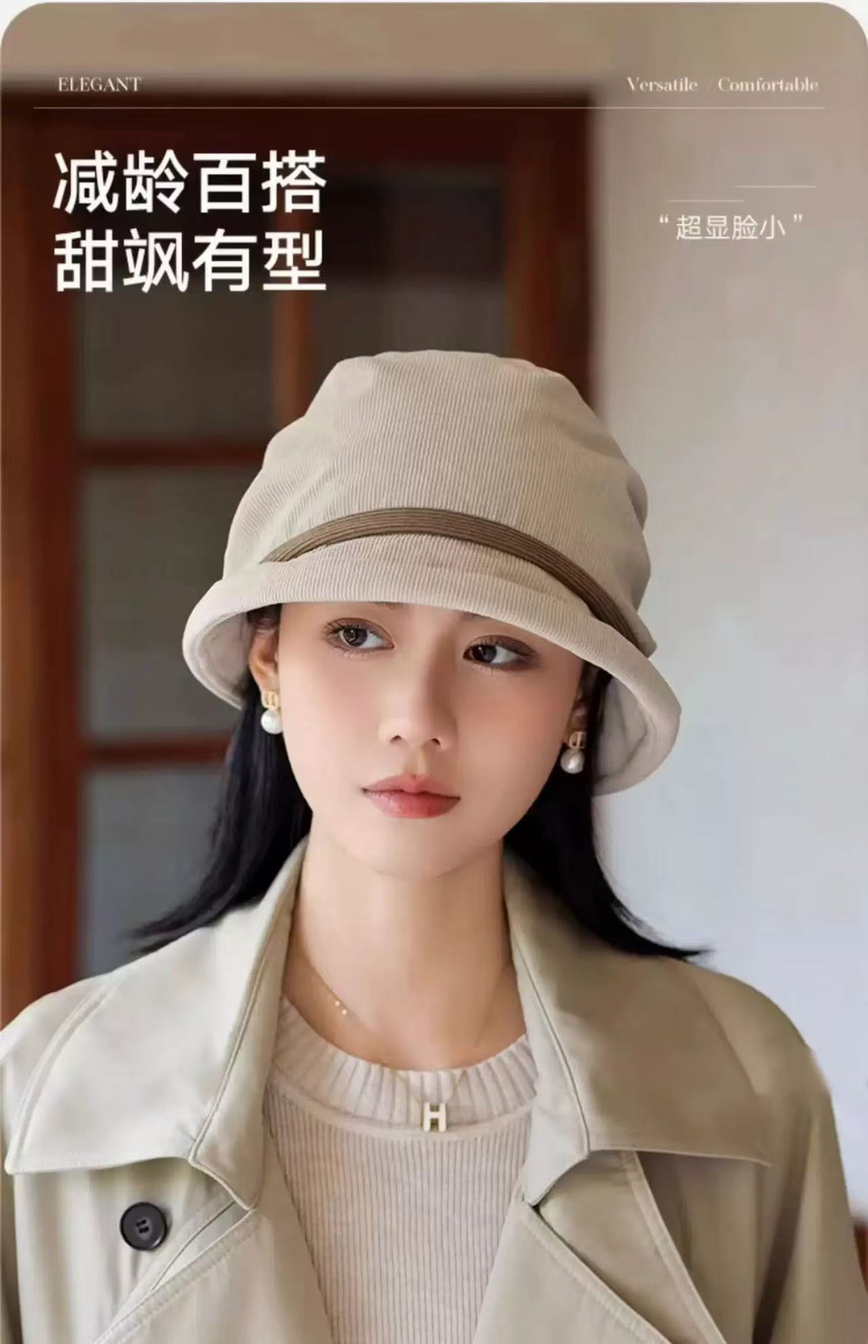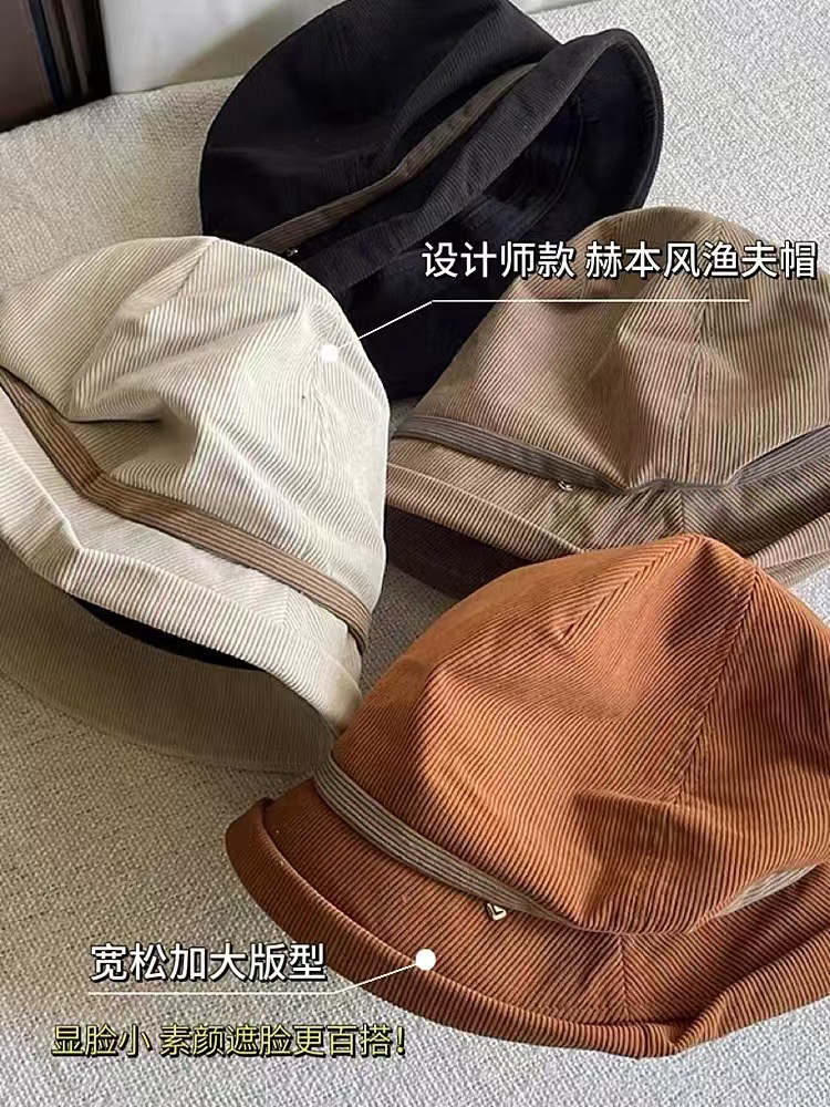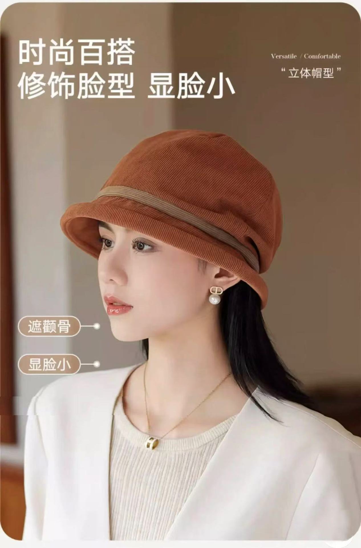 秋冬季复古百搭显脸小渔夫帽子女加厚灯芯绒保暖防风堆堆包头帽
