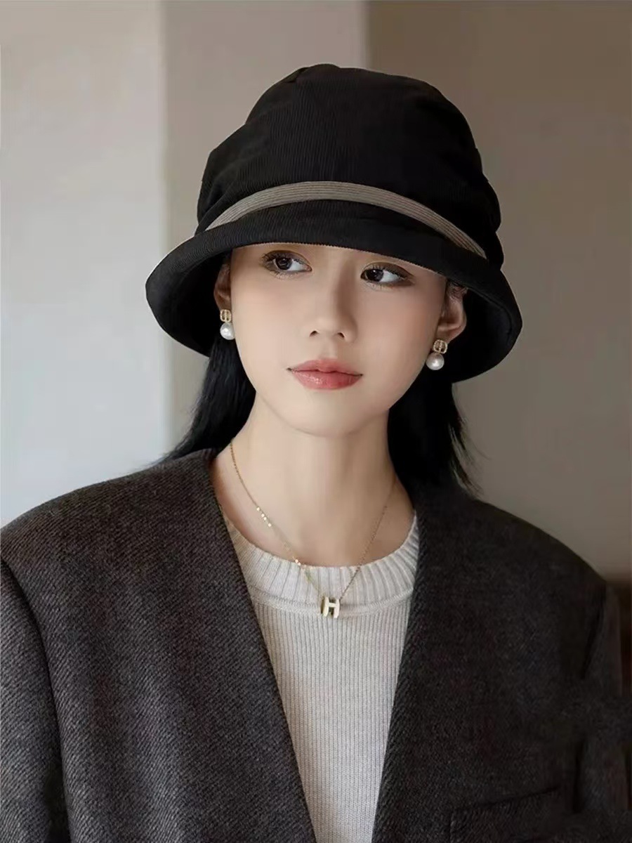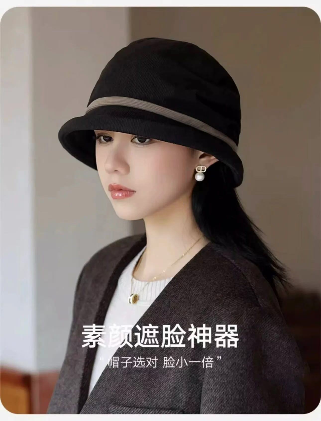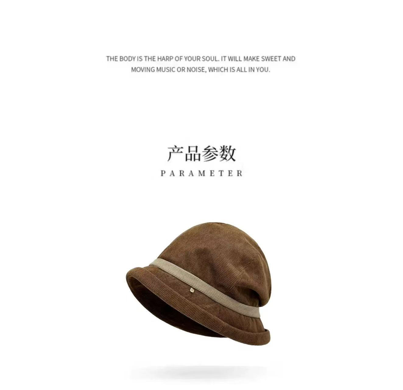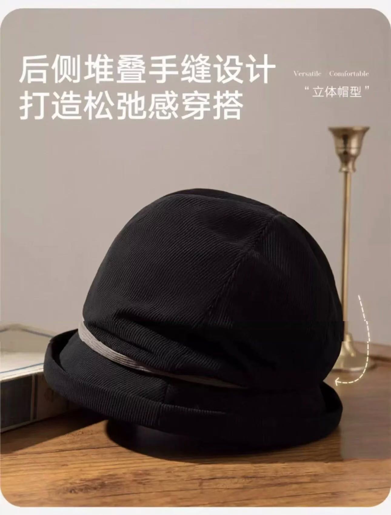 秋冬季复古百搭显脸小渔夫帽子女加厚灯芯绒保暖防风堆堆包头帽