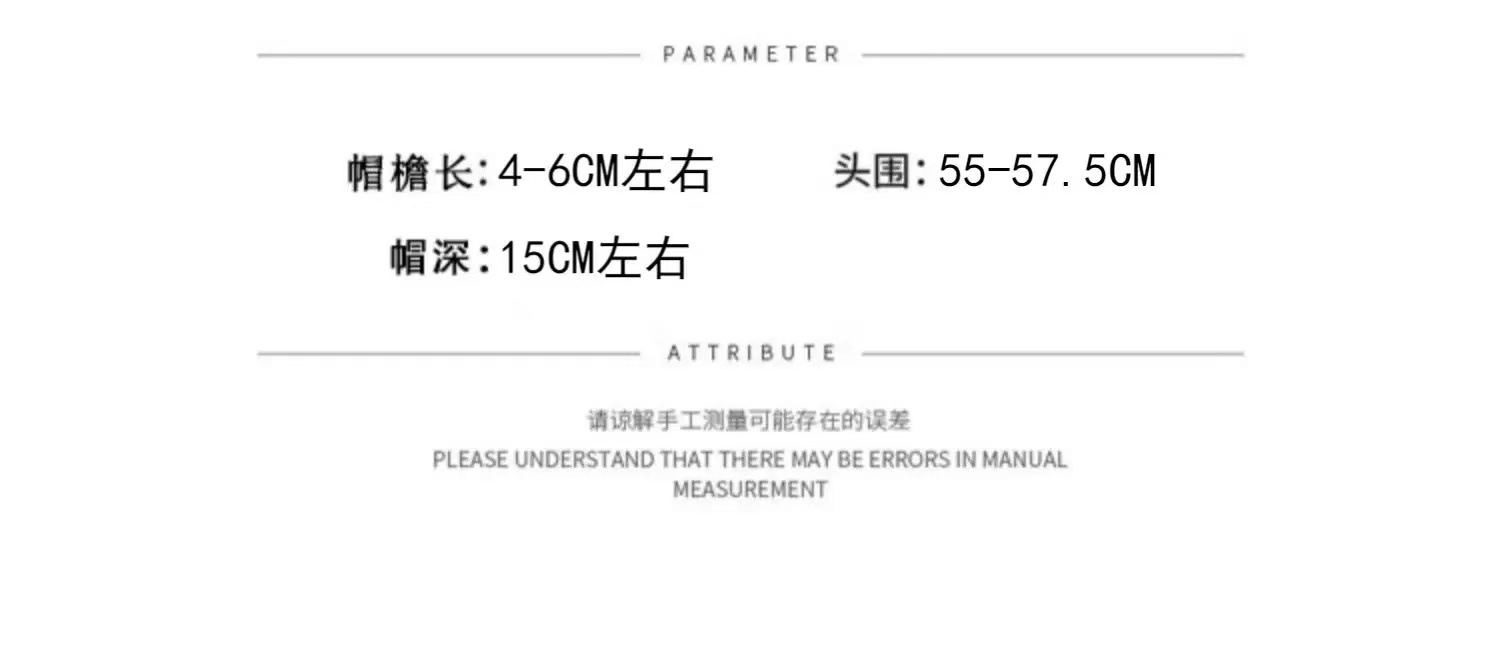 | 帽檐款式 | 短檐 | 颜色 | 黑色, 米白色, 咖啡色, 焦糖色, 卡其色 |