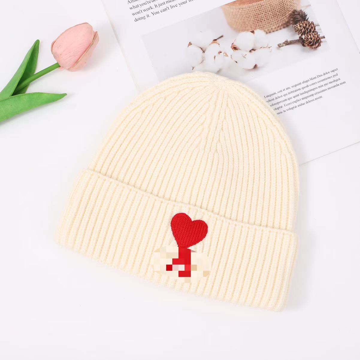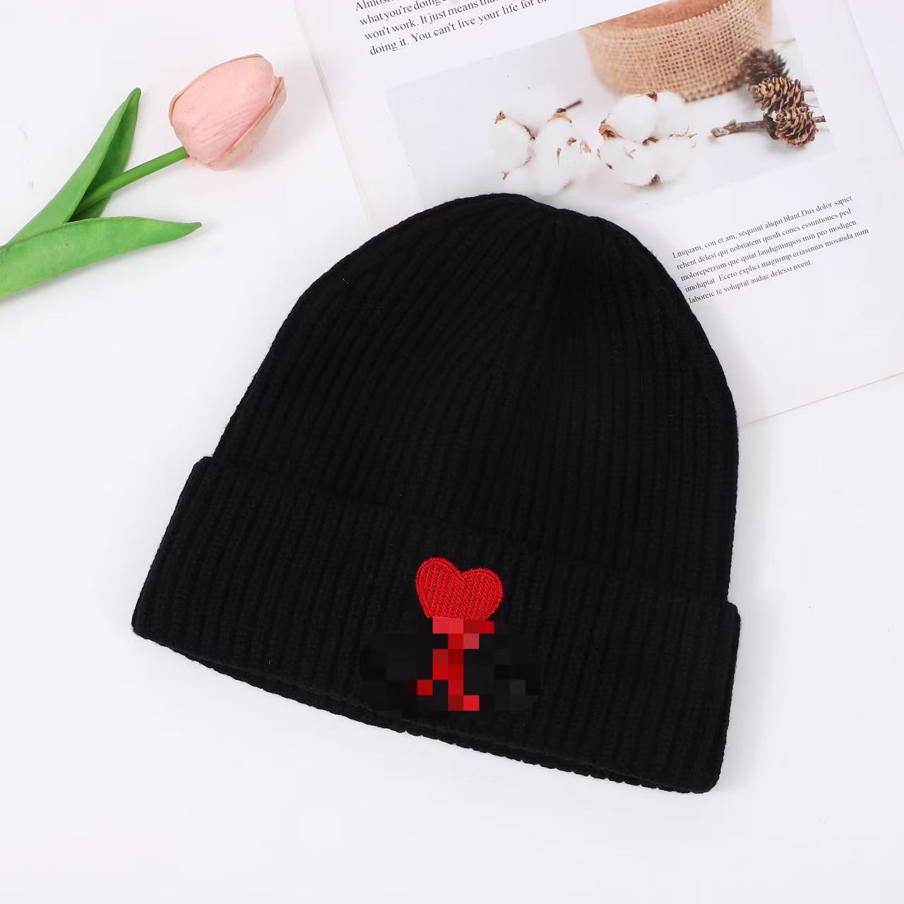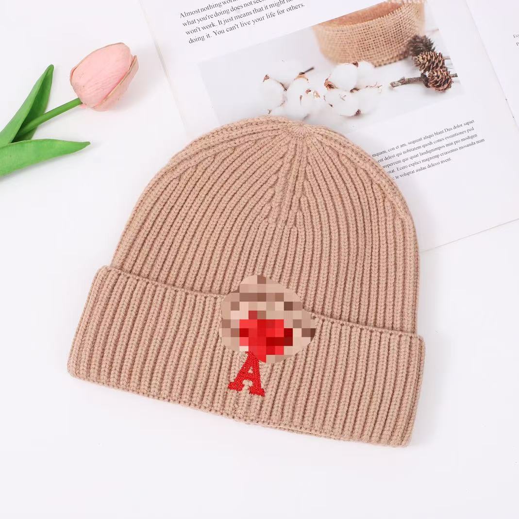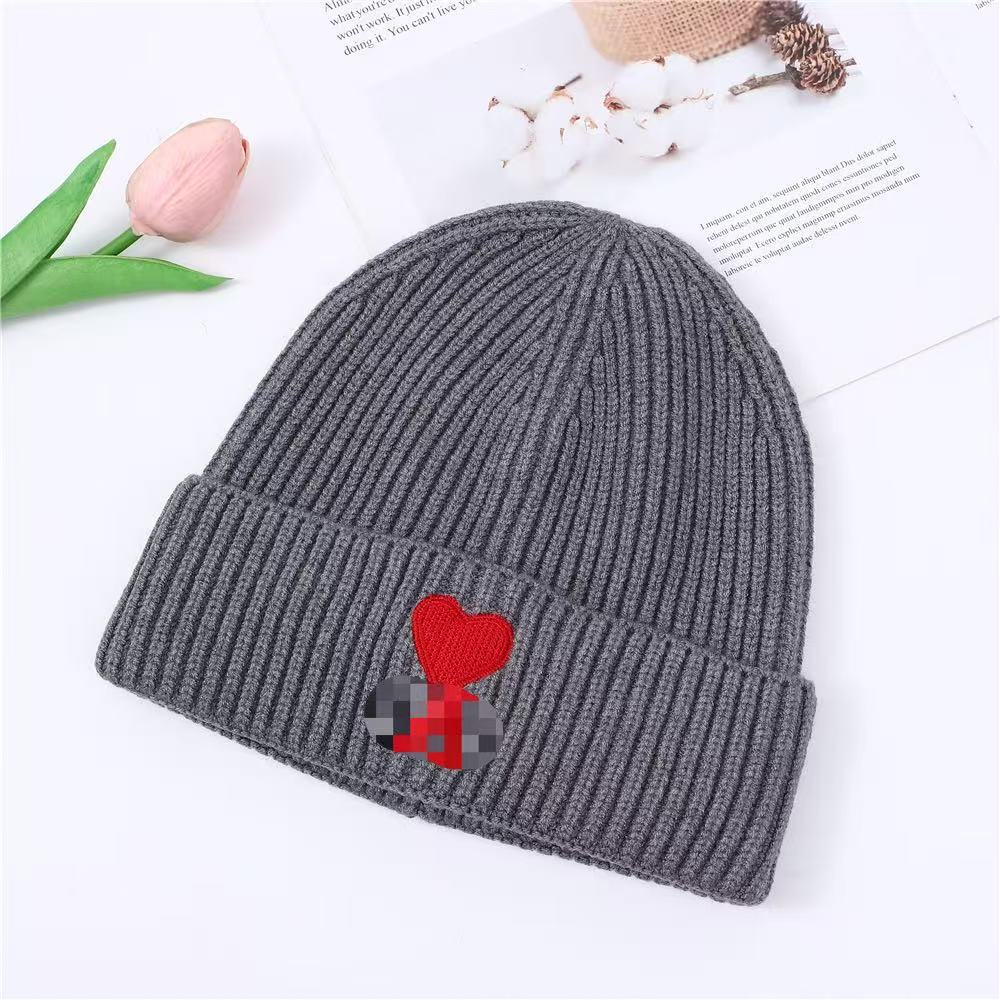 秋冬桃心A爱心小众毛线帽刺绣翻边针织冷帽男女同款韩版潮帽