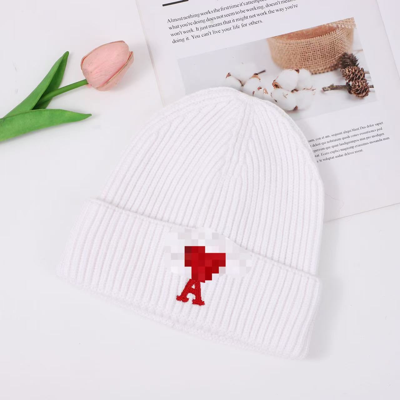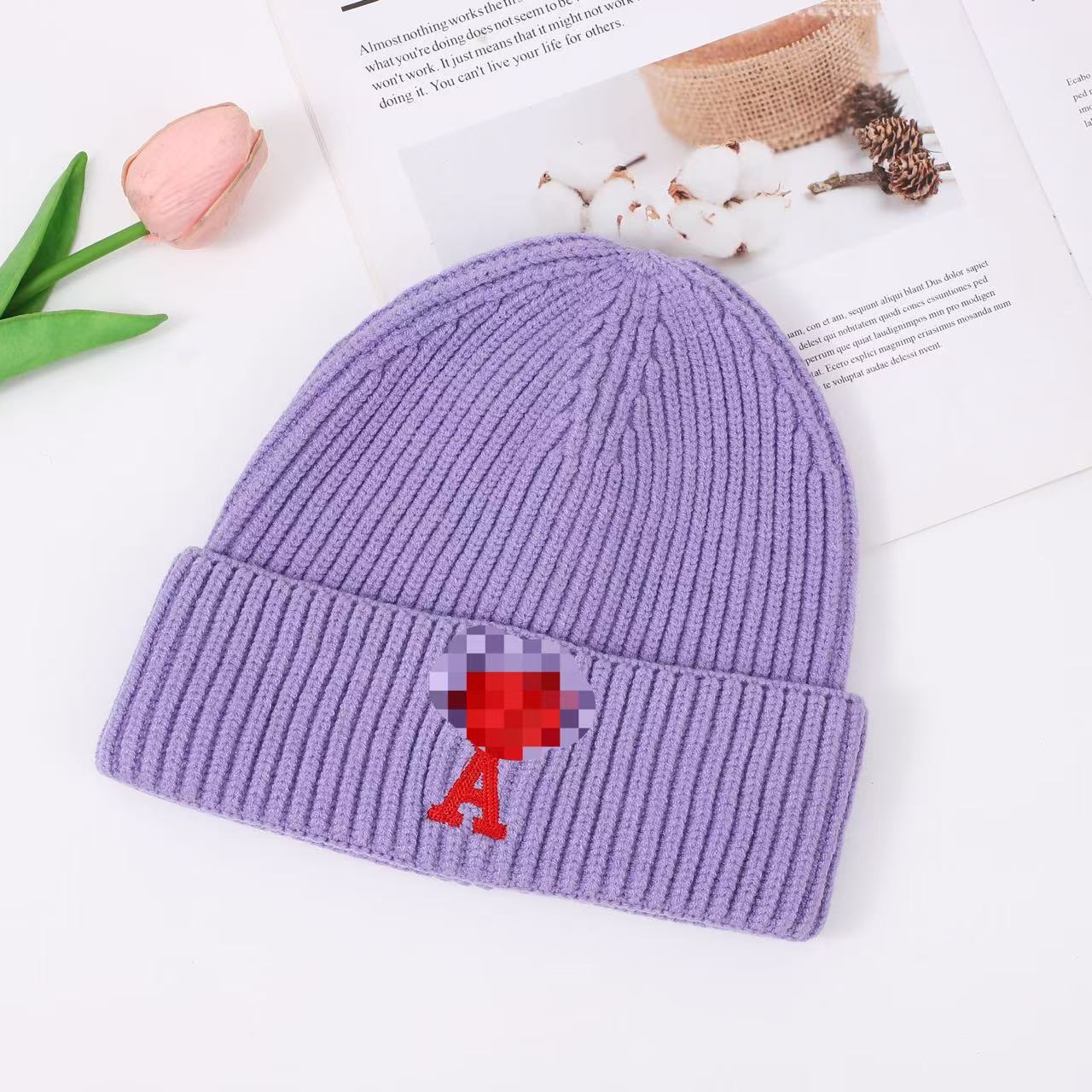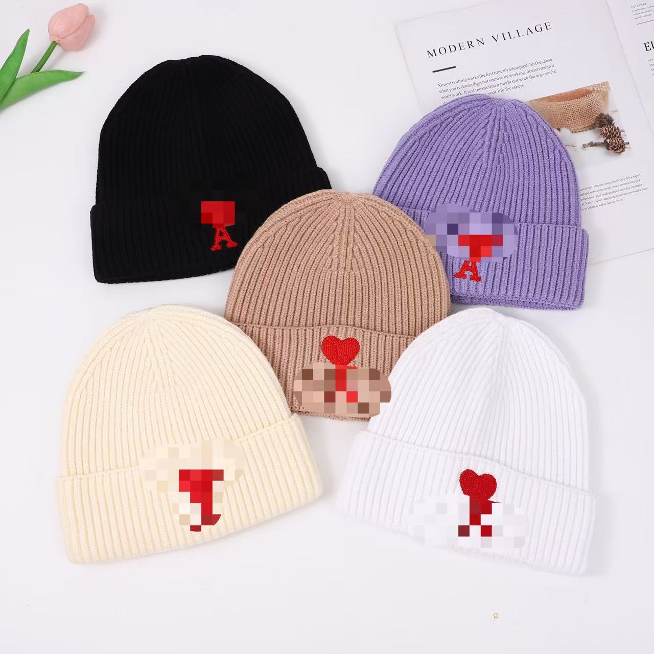 秋冬桃心A爱心小众毛线帽刺绣翻边针织冷帽男女同款韩版潮帽