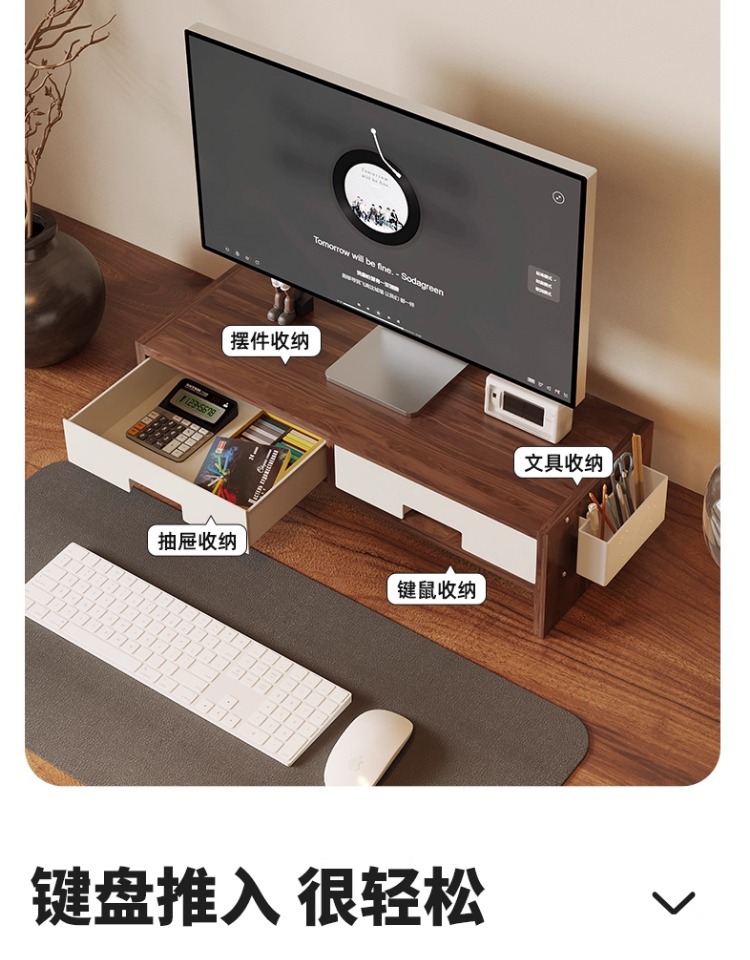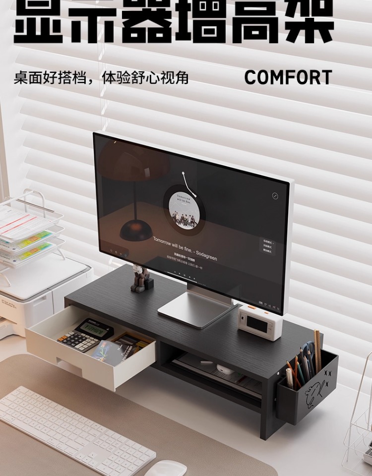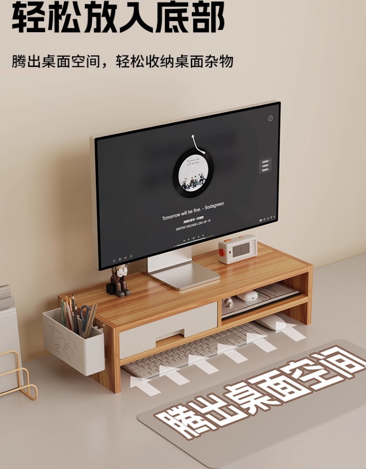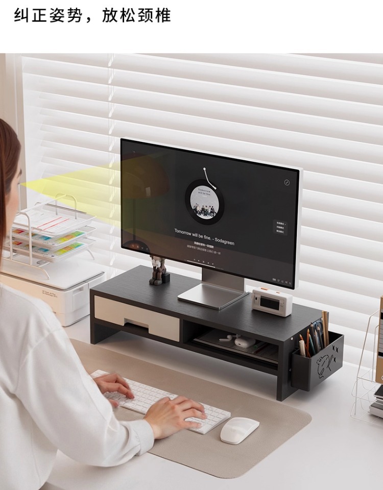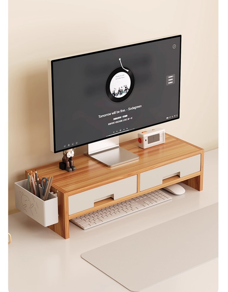 데스크탑 컴퓨터 높이 조절 모니터 스탠드 서랍형 사무실 스크린 브래킷 수납대 수납선반