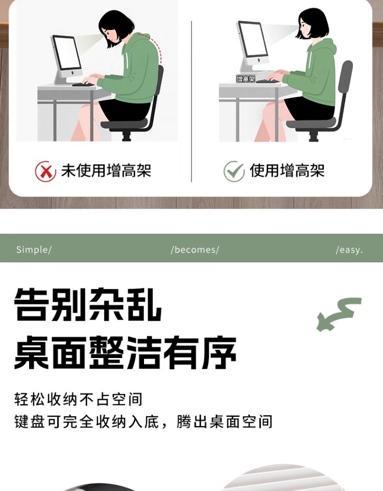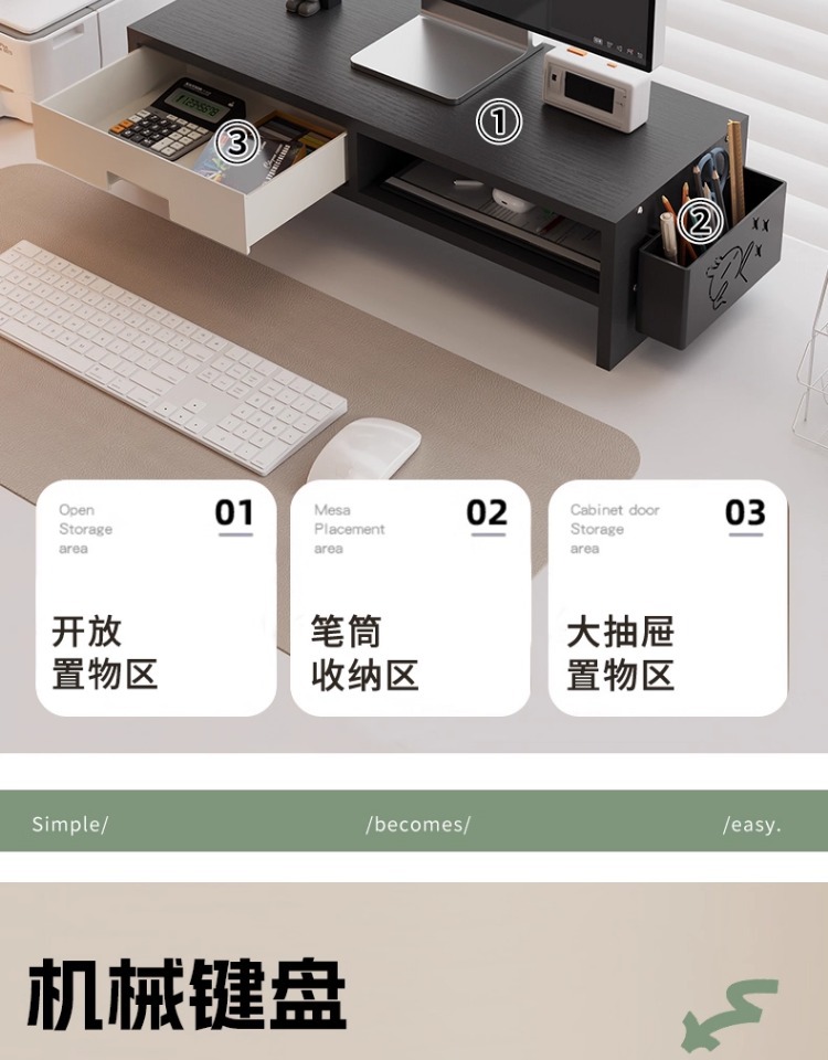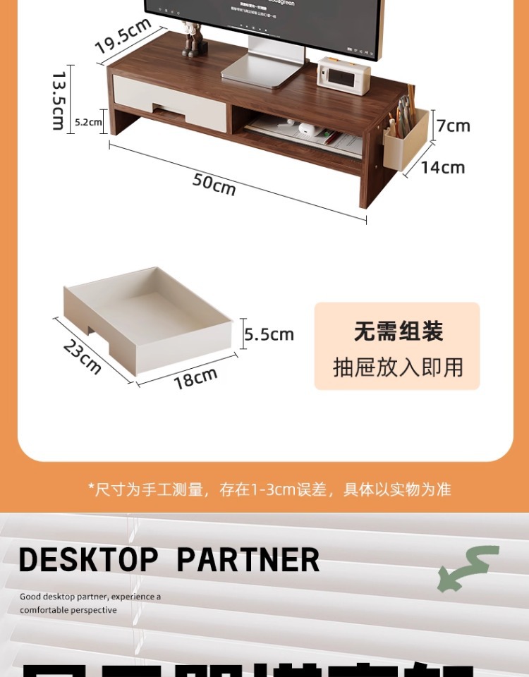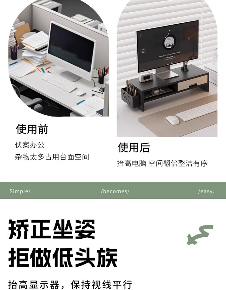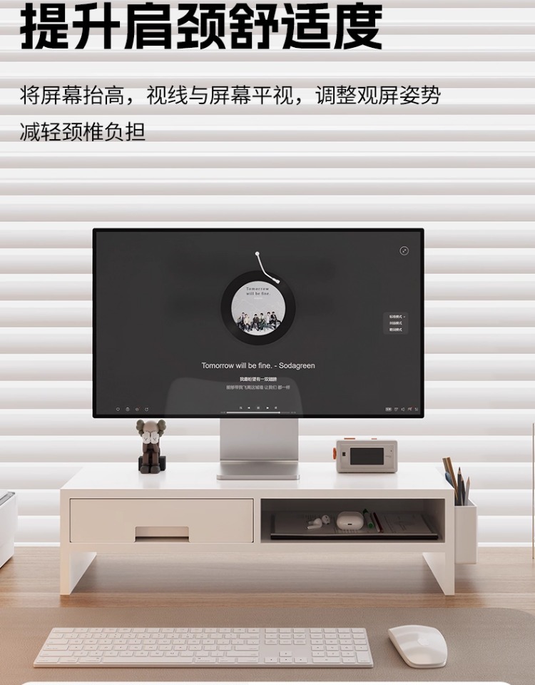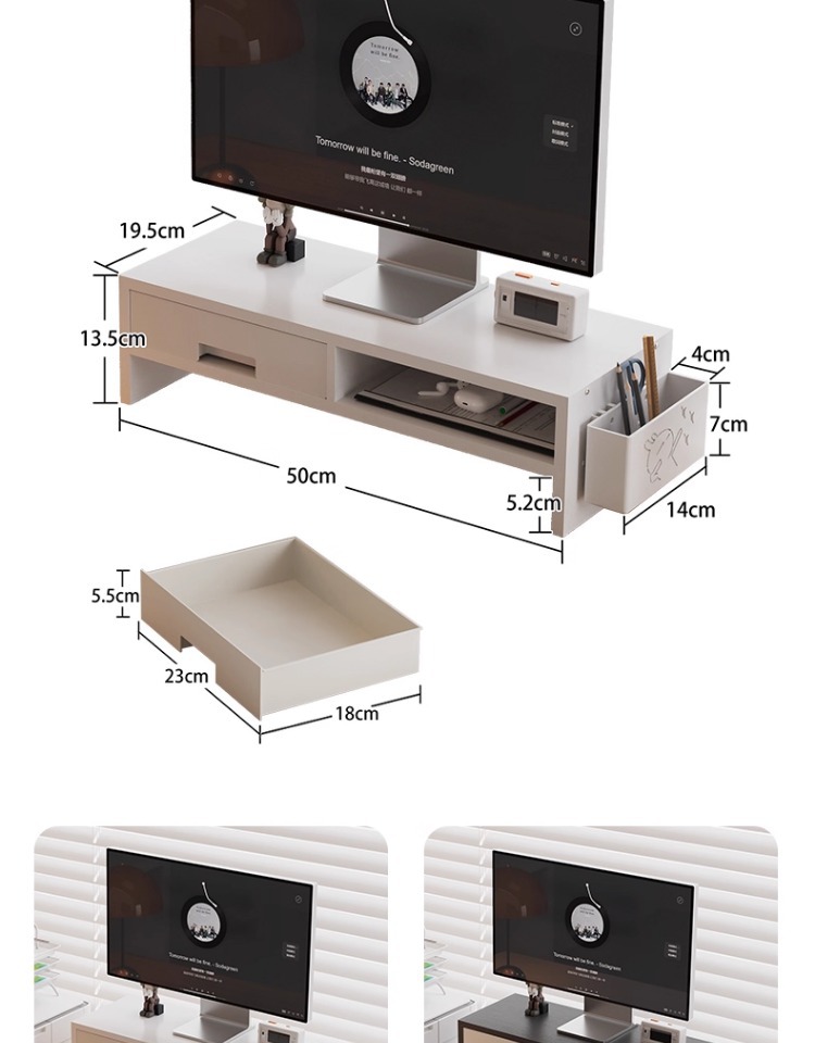데스크탑 컴퓨터 높이 조절 모니터 스탠드 서랍형 사무실 스크린 브래킷 수납대 수납선반