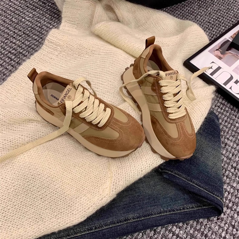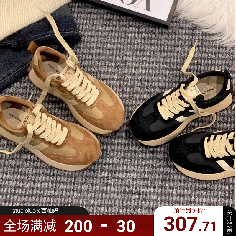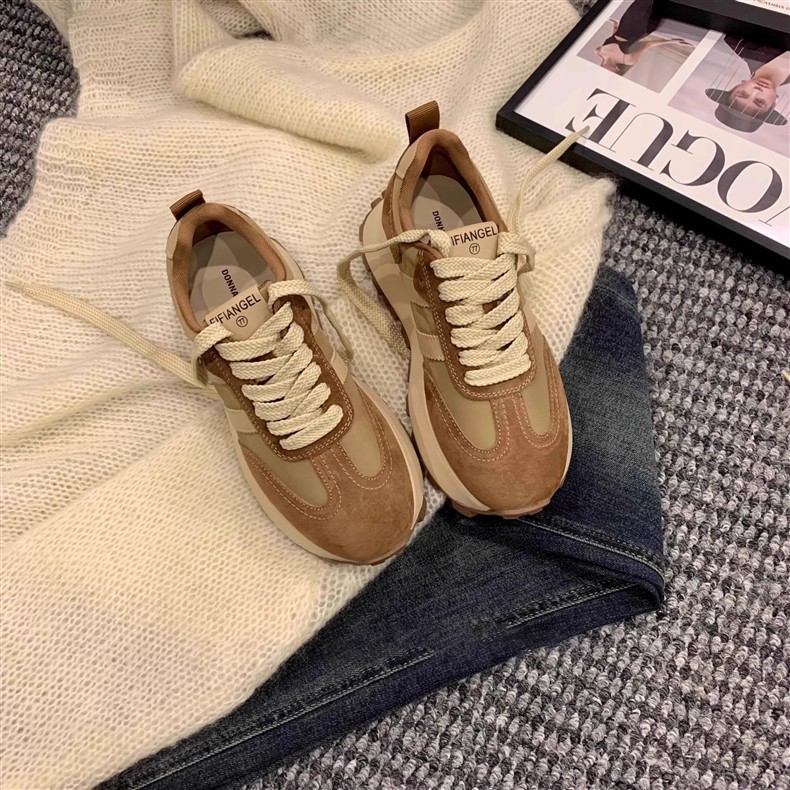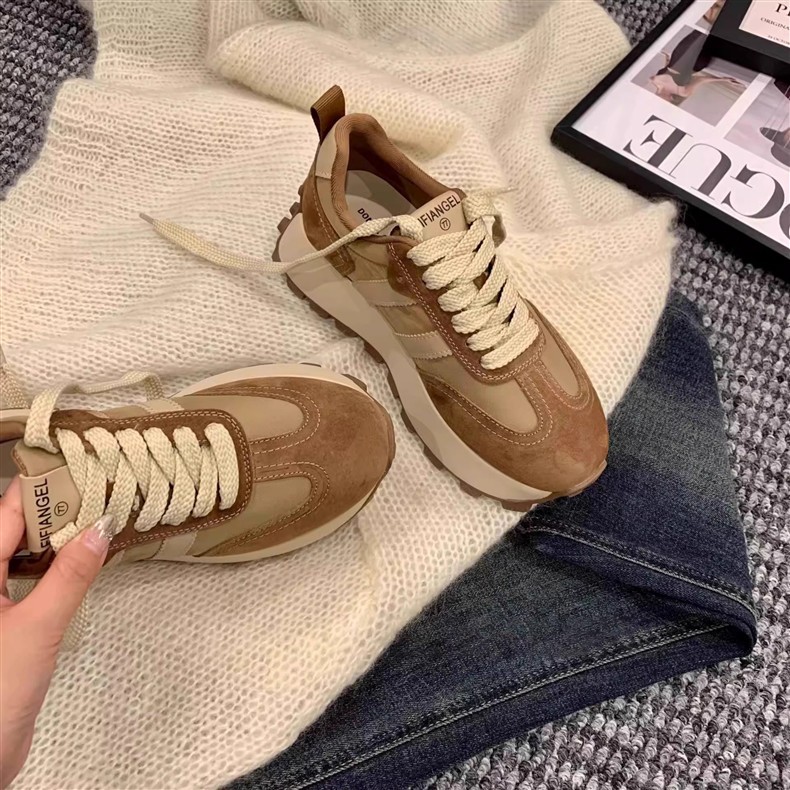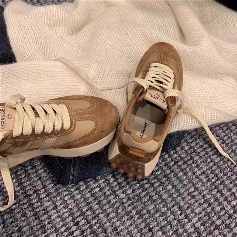 Maillard Sports Forrest Gump 신발 여성 2025 봄, 가을 새로운 스타일 정품 가죽 다목적 캐주얼 와플 두꺼운 밑창 아빠 신발