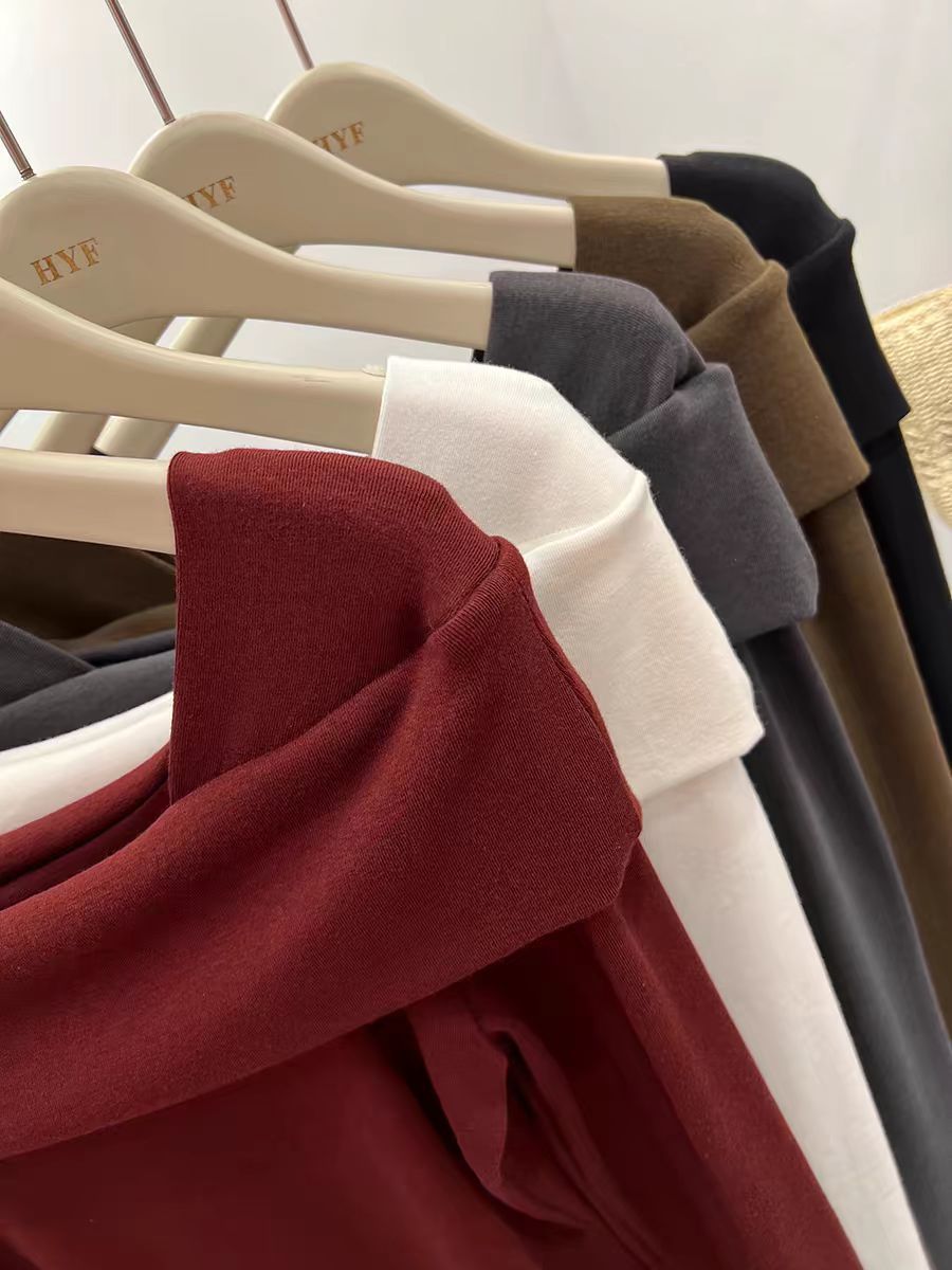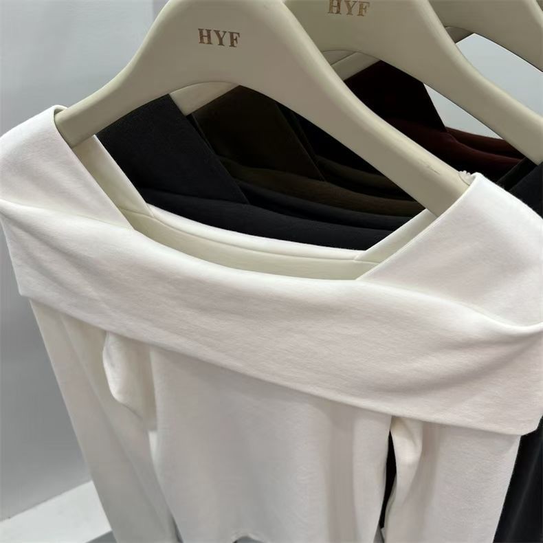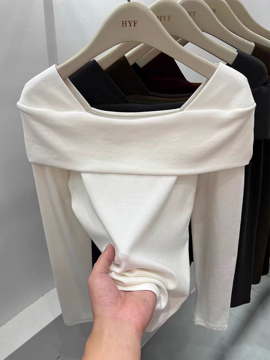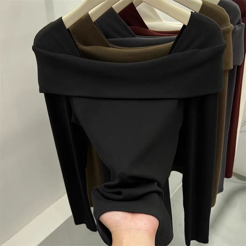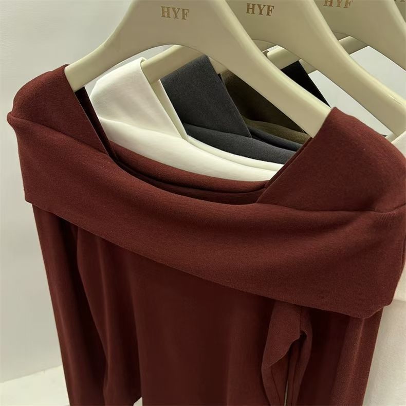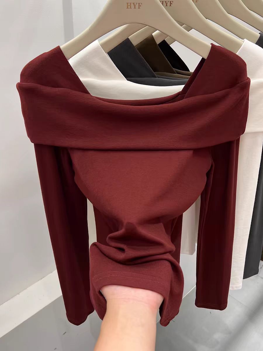 플러스 사이즈 DeRong Ankora 레드 긴팔 티셔츠 여성용 겨울 새 스타일 Fat mm 이너 레이어링 Pure Desire 원 숄더 탑