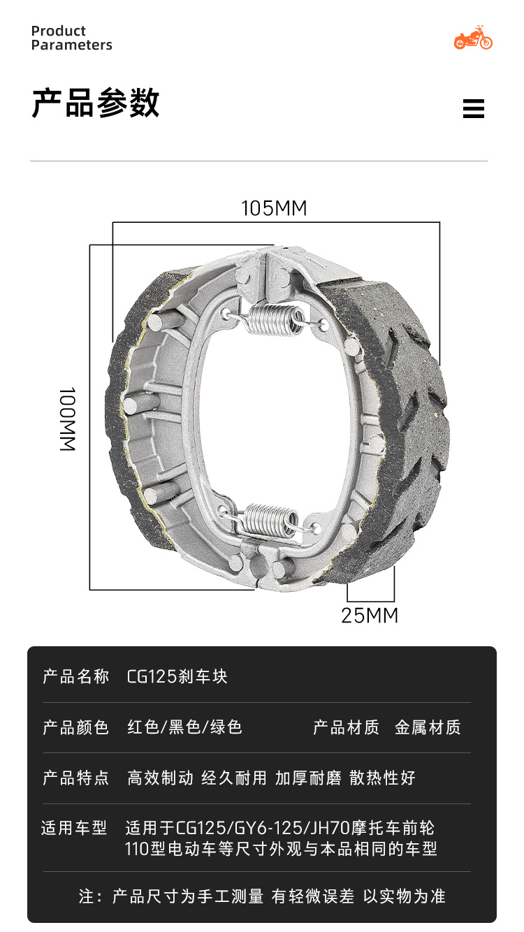 | 包装规格 | 防水款110黑片刹车块, 防水款110红片刹车块, 防水款110绿片刹车块 | 是否跨境出口专供货源 | 否 |