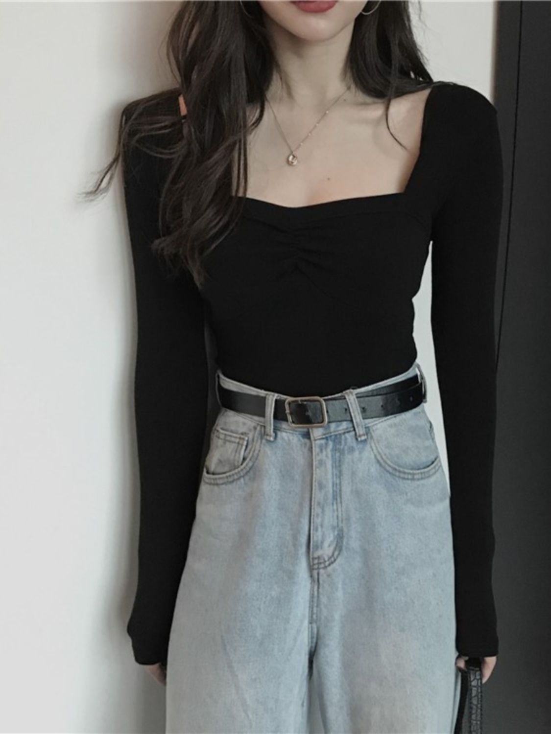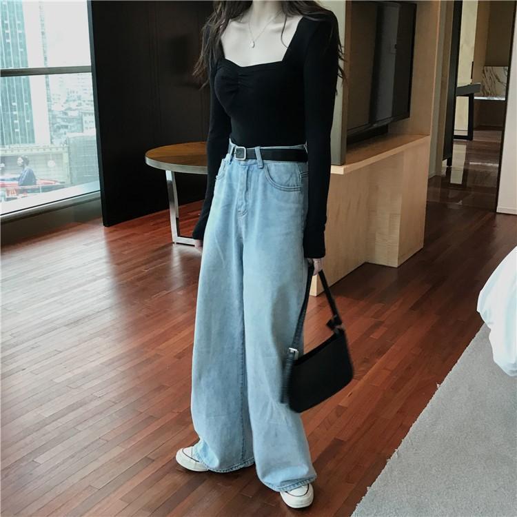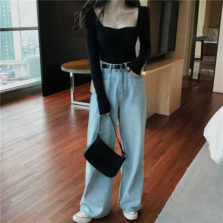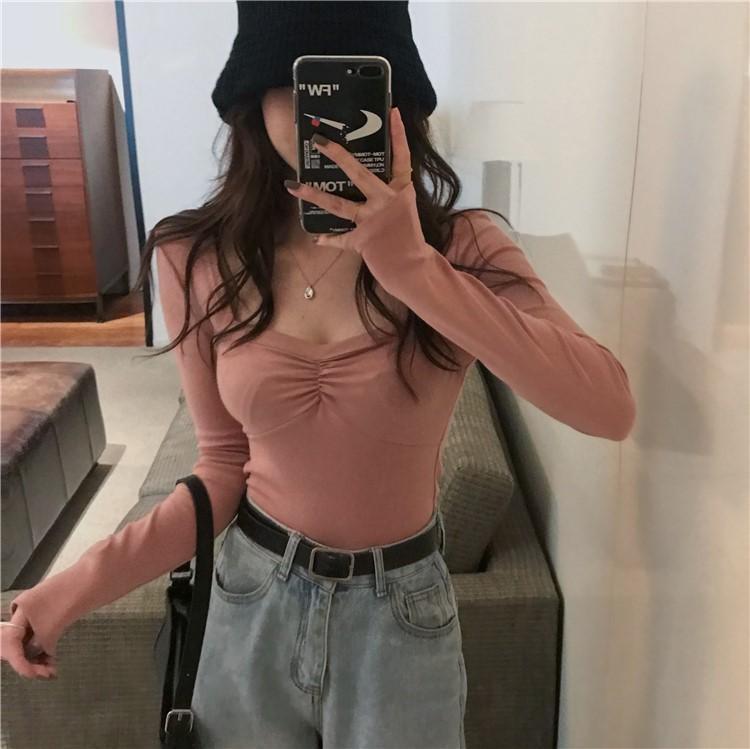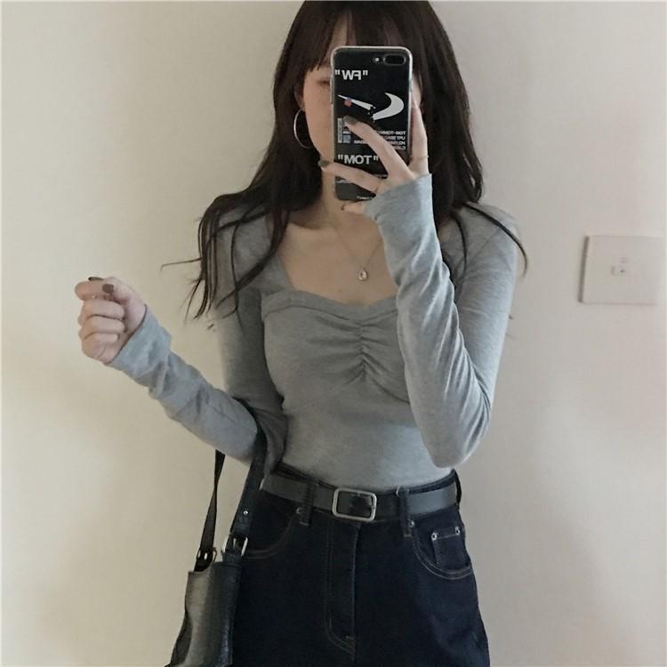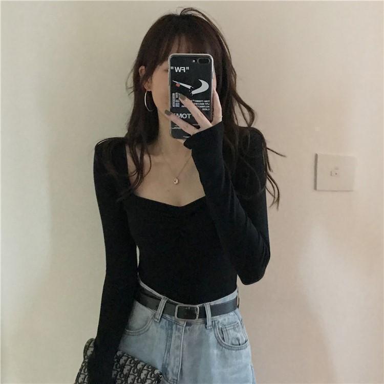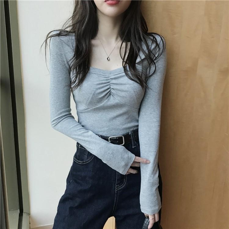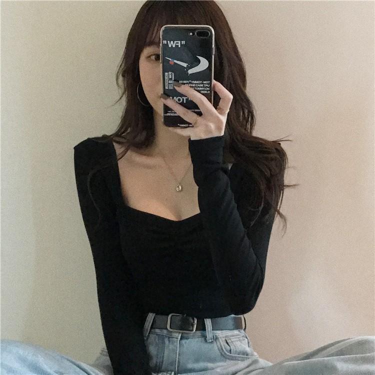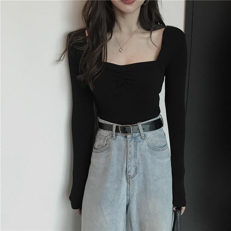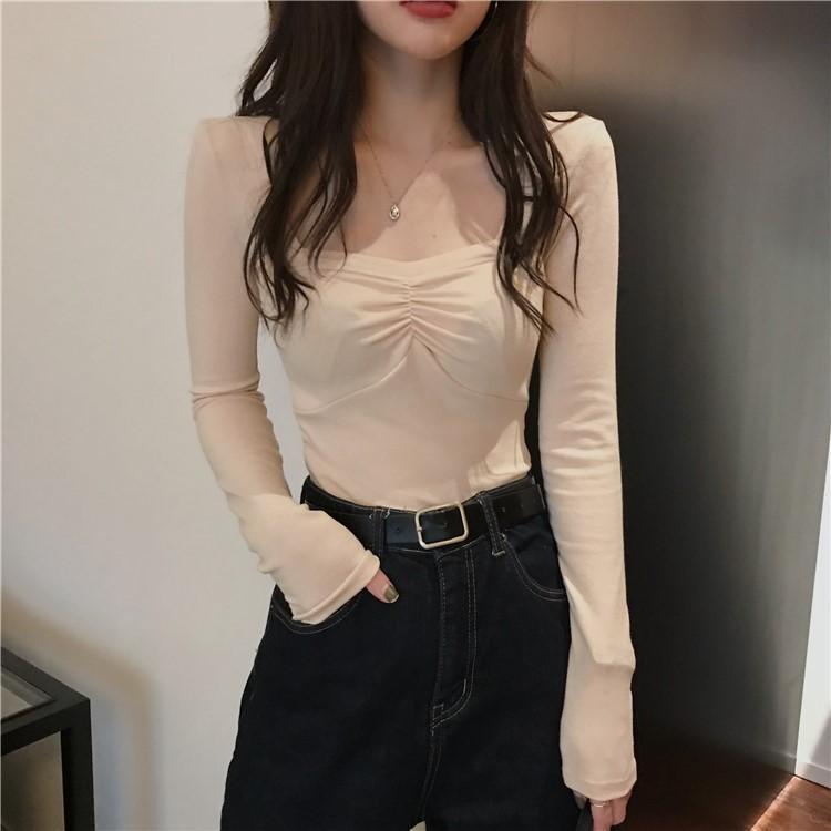 프렌치 스퀘어 넥 셔츠, 봄, 가을 플러스 사이즈 여성복, 아름다운 탑, 타이트한 순수한 욕망 스타일 이너 티셔츠, 여성용 탑