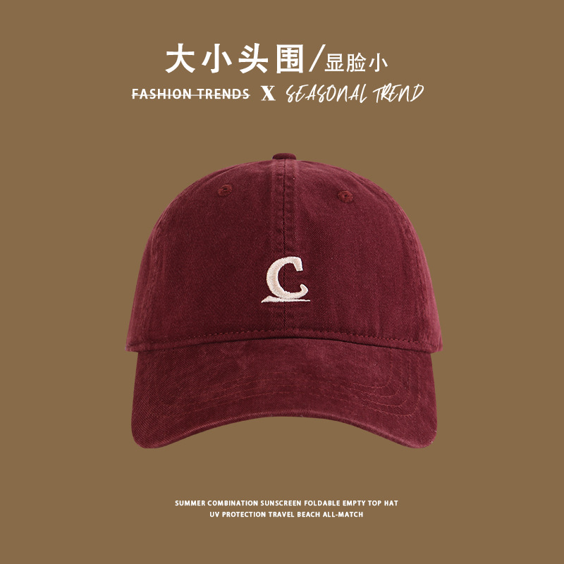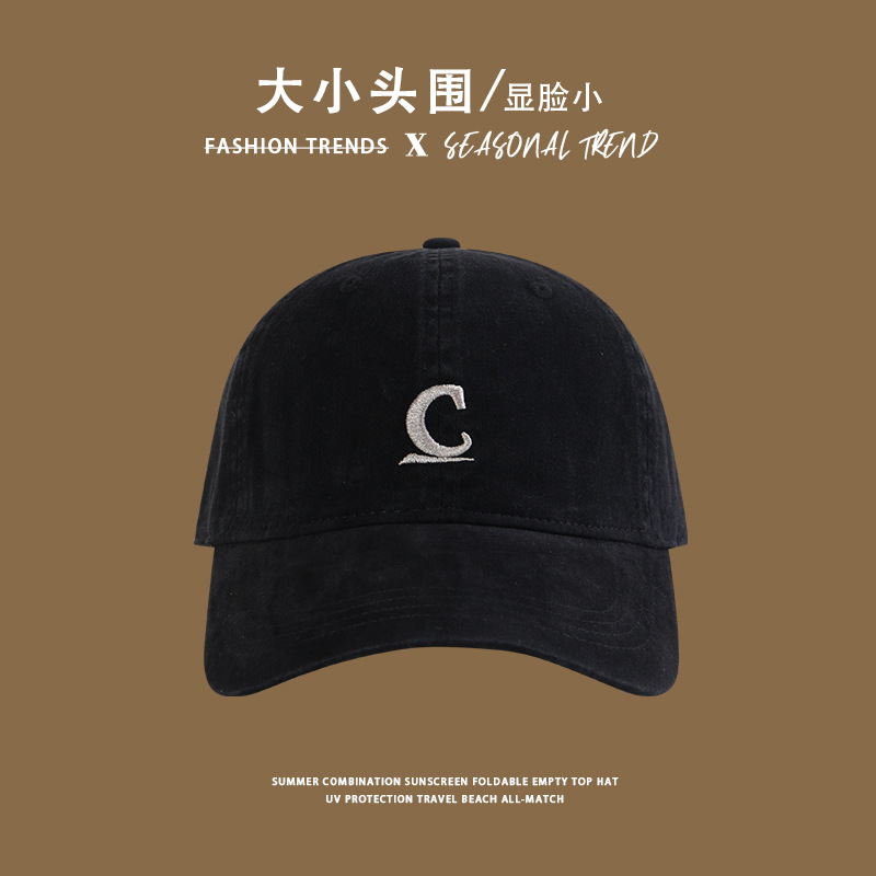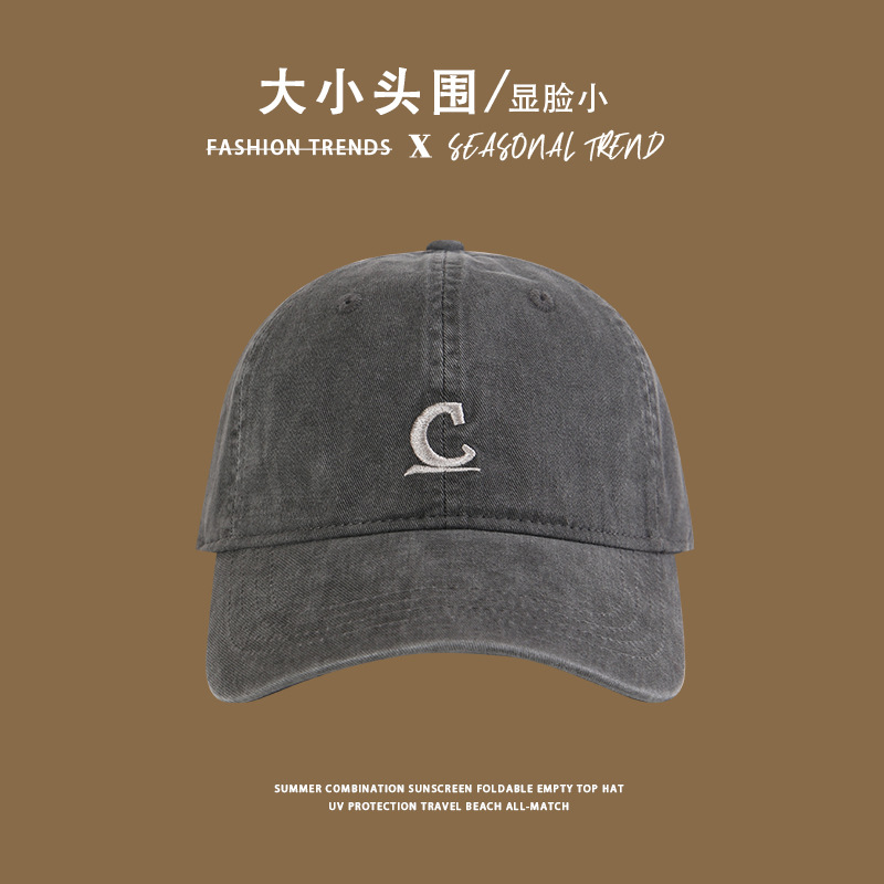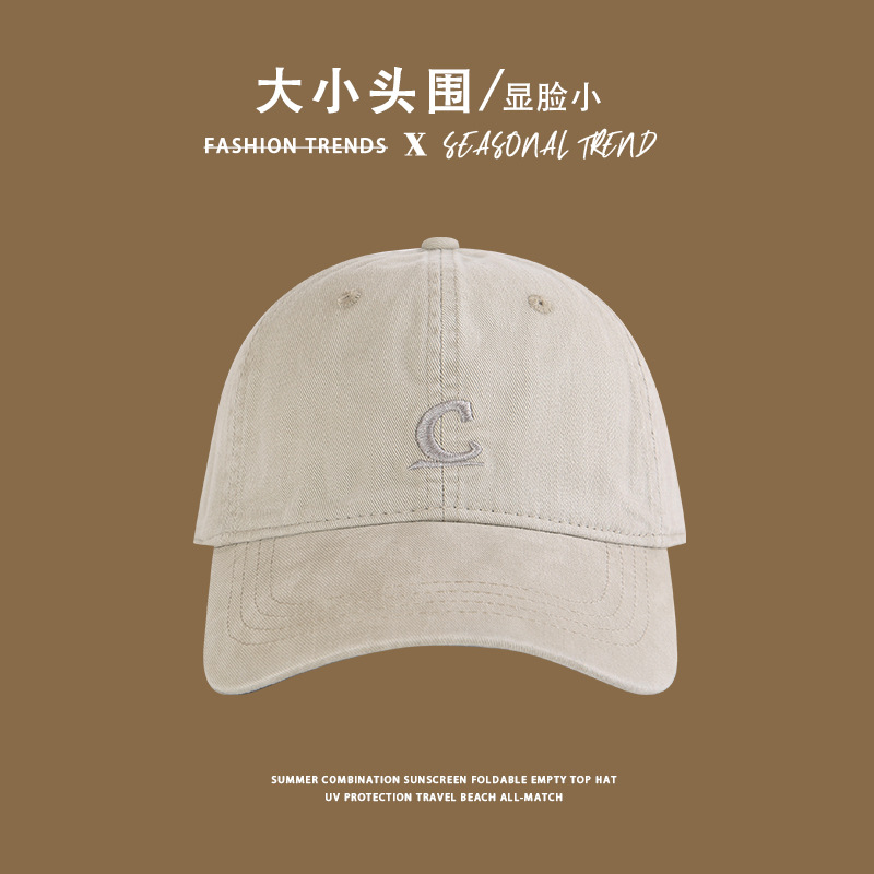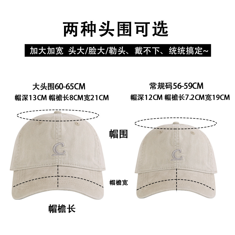 여성용 큰 머리 야구 모자, 얼굴을 더 크게 보이게 하는 넓은 챙, 작은 자외선 차단 모자, 올드 워싱 한국식 깊은 피크 캡