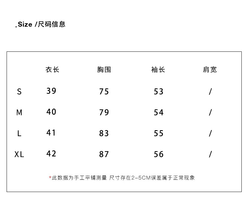 | 版型 | 修身型 | 衣长 | 短款(40cm<衣长≤50cm) |