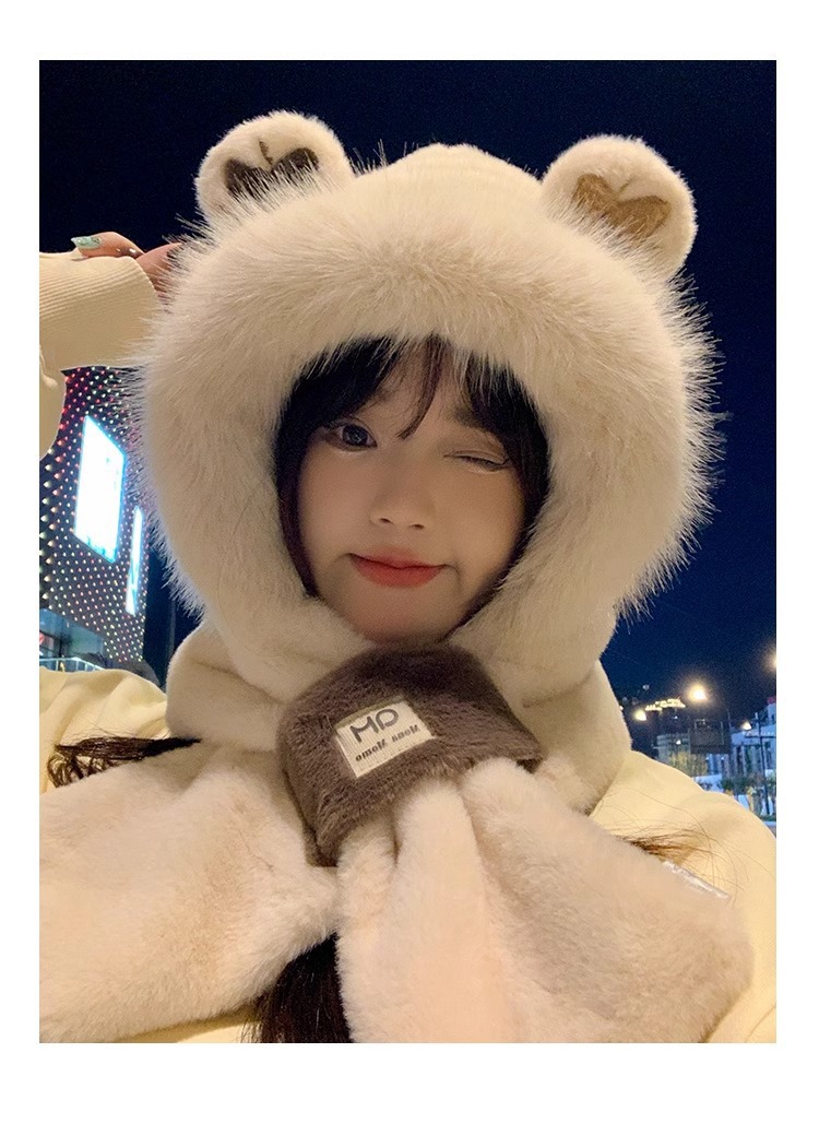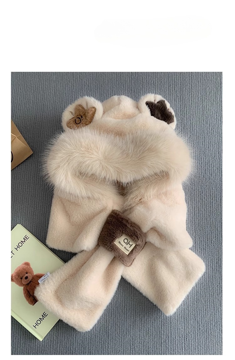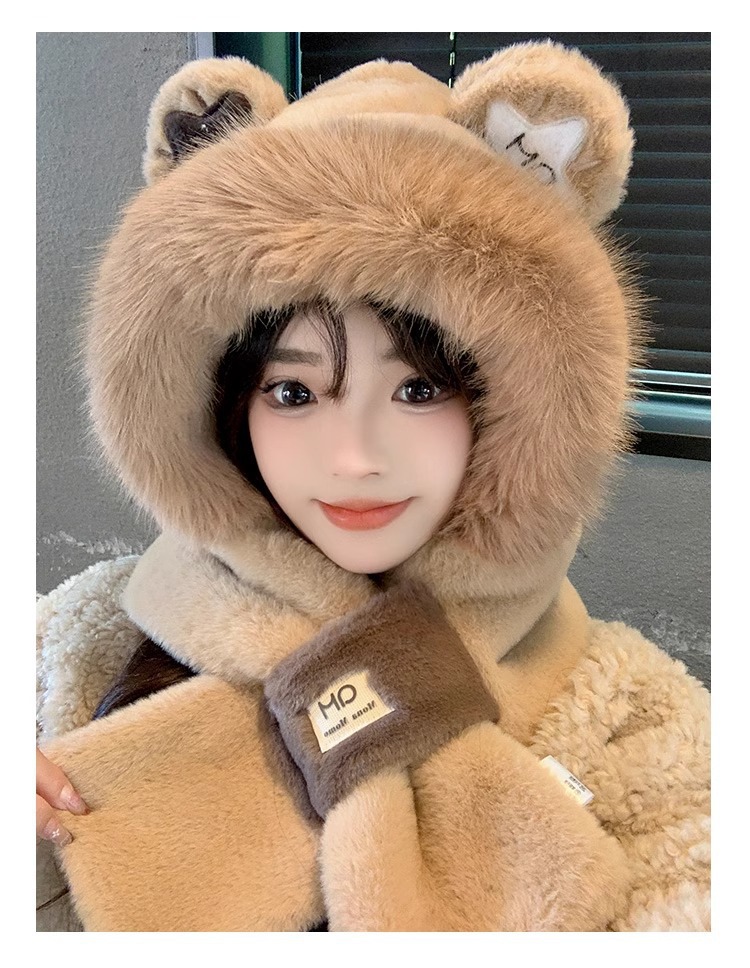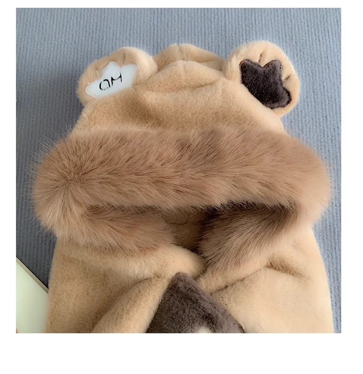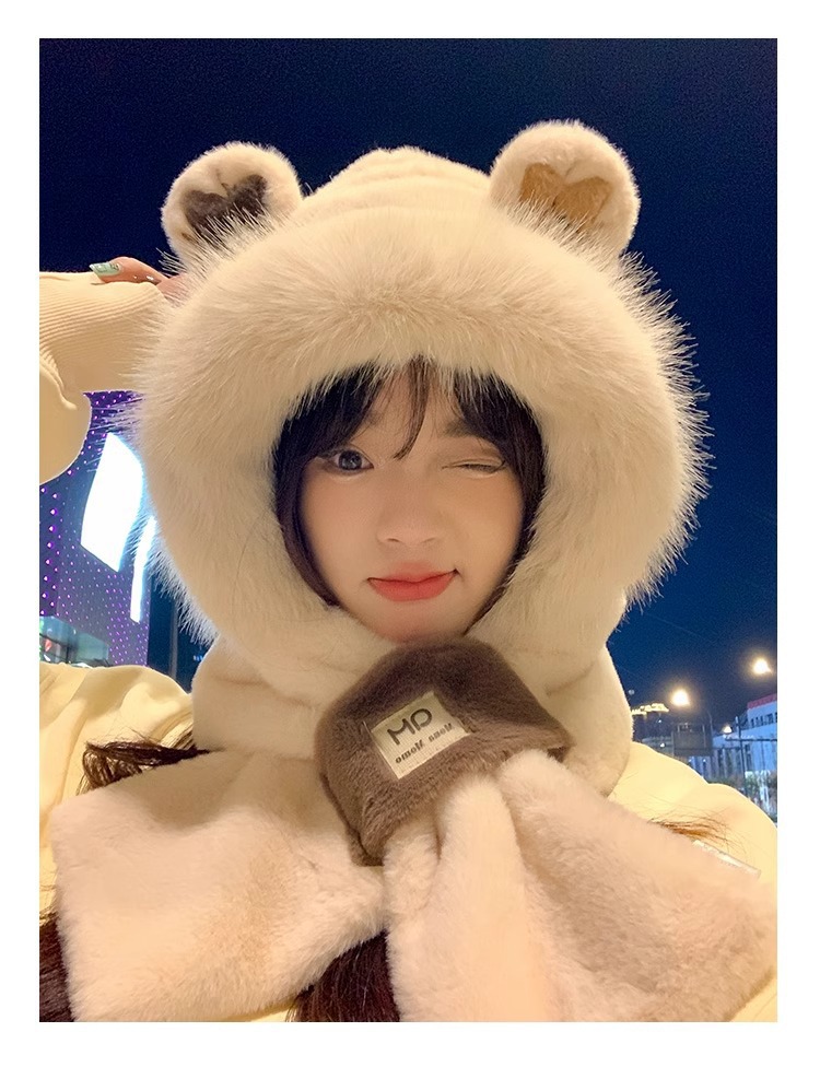 모자와 스카프가 하나로 통합된 여성용 가을 겨울 플러시 모자 따뜻하고 벨벳 어린이 방한 후드 넥 워머 투피스 세트