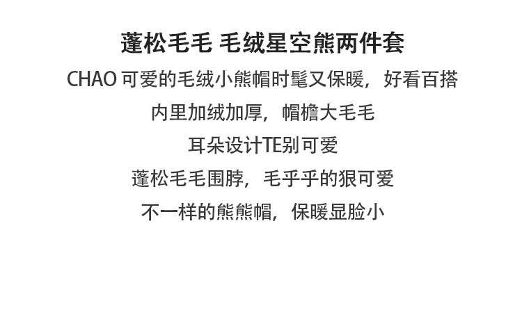 | 组合方式 | 围巾帽子二件套 | 适用性别 | 女 |