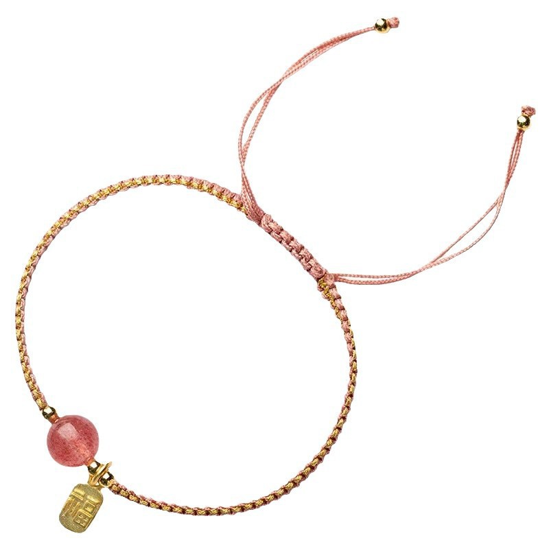 여성을위한 딸기 크리스탈 트랜스퍼 비즈 팔찌 중국 스타일 오리지널 디자인 틈새 조절 가능한 땋은 팔찌 여성을위한 축복 카드 선물