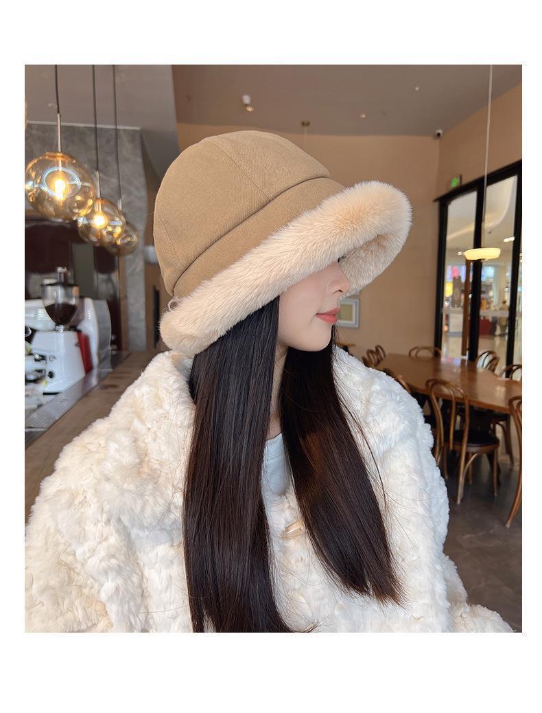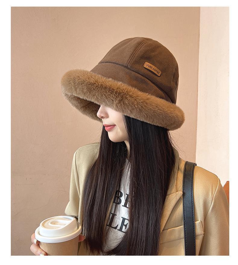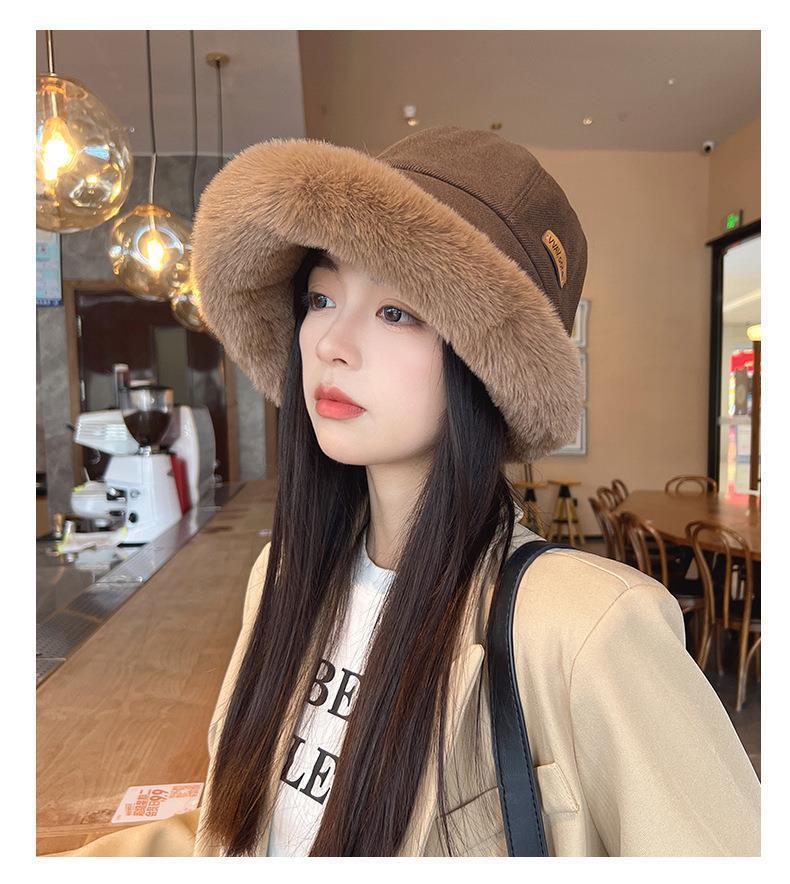 가을 겨울 여성용 플러시 어부 모자, 벨벳과 두꺼운 얼굴이 보이는 작은 몽골 모자, 인터넷 연예인 일본 인터넷 연예인 따뜻한 모자