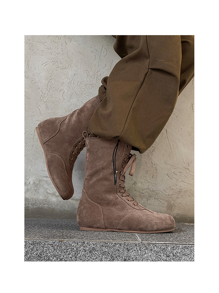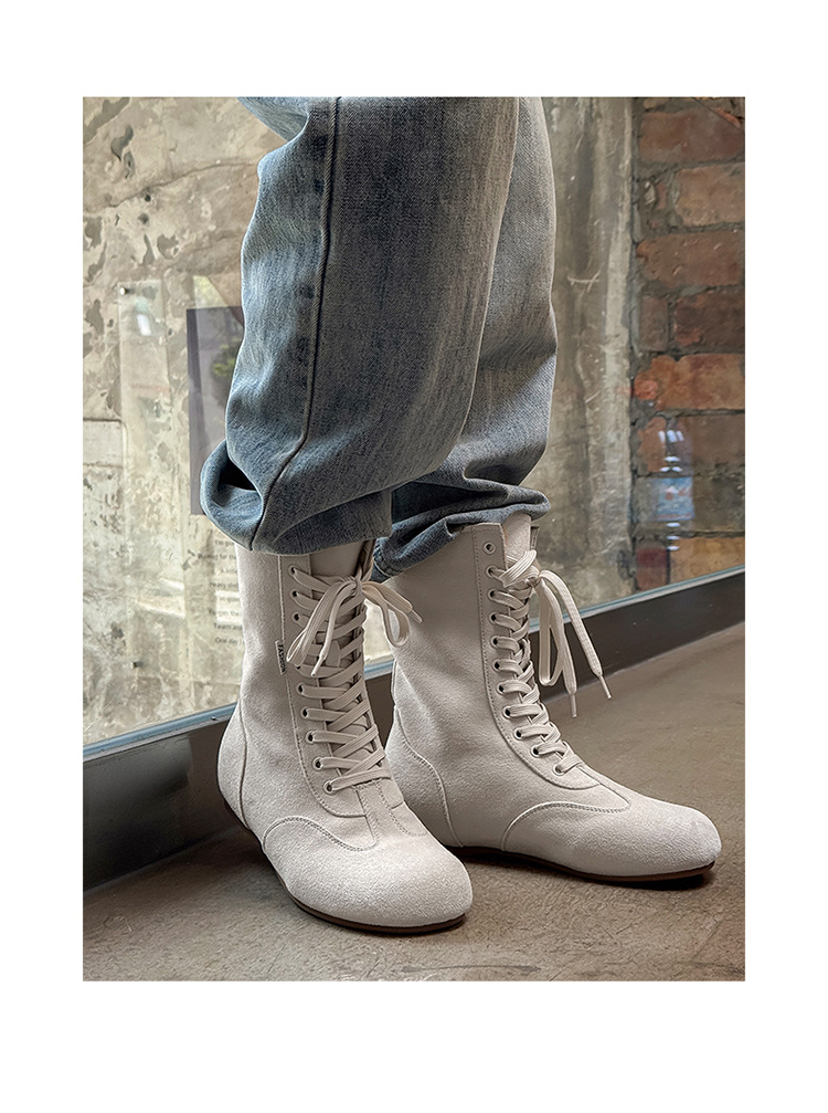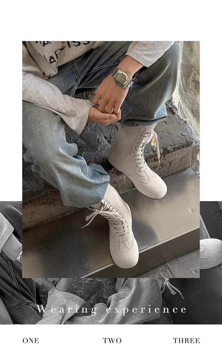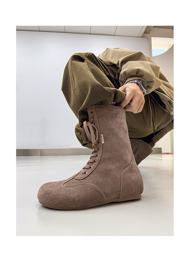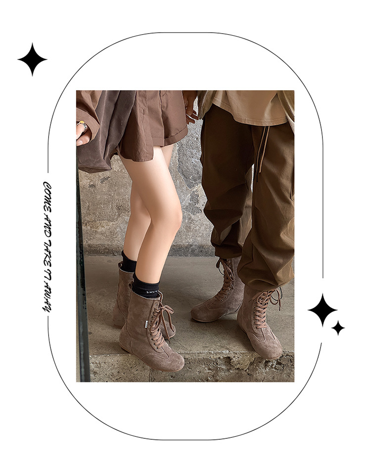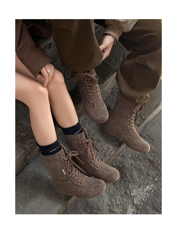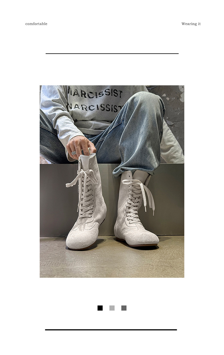 하이탑 카우보이 부츠 남녀공용 복싱부츠 레이스업 트렌디 커플 마틴부츠 23386 브라운 화이트-J