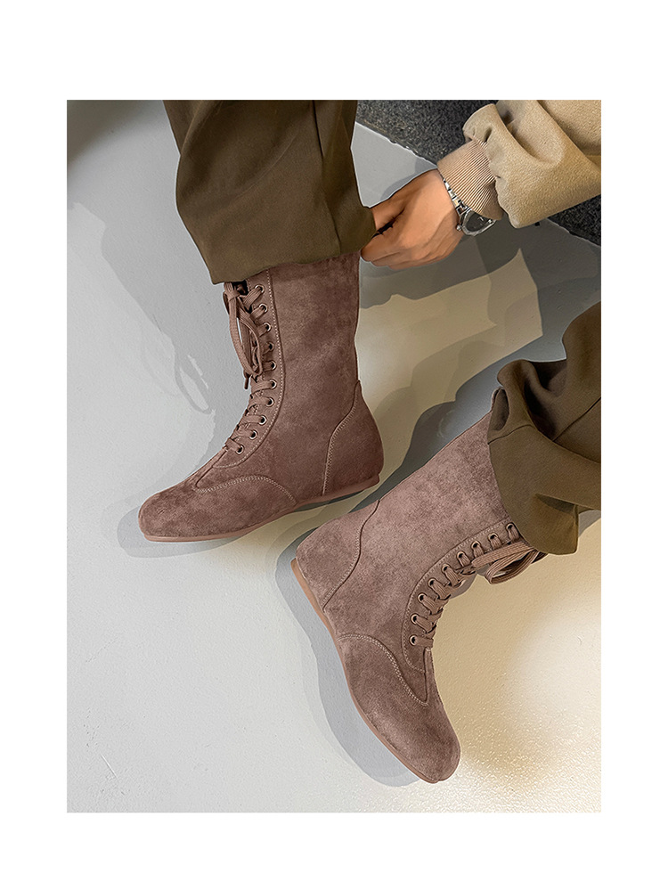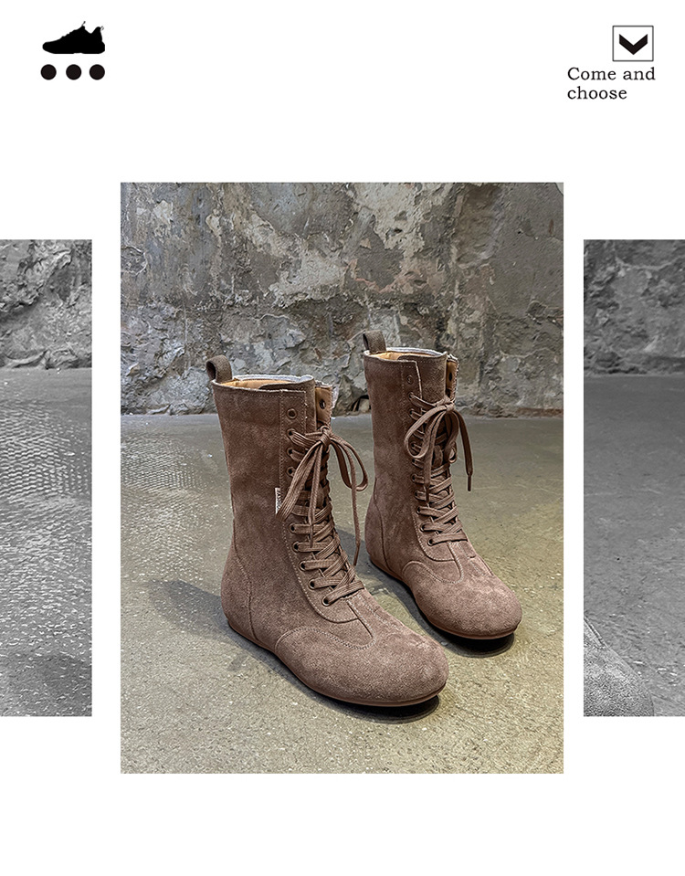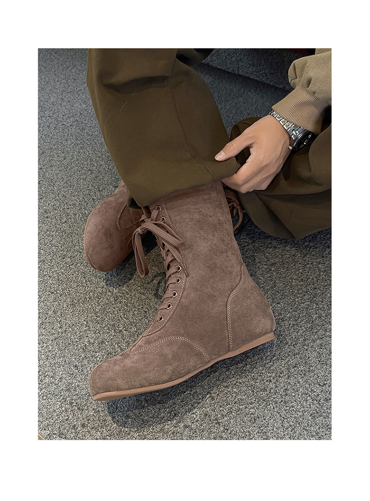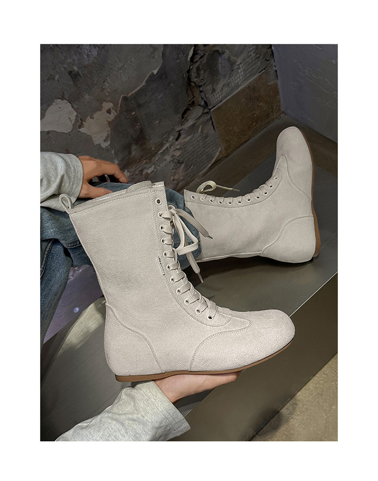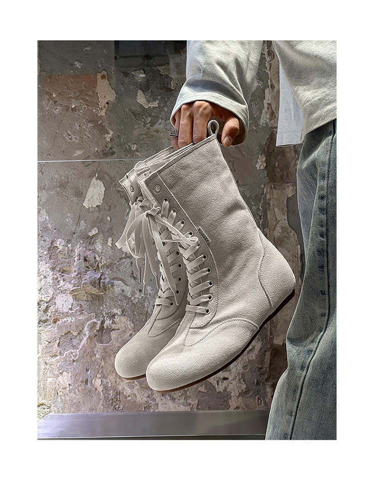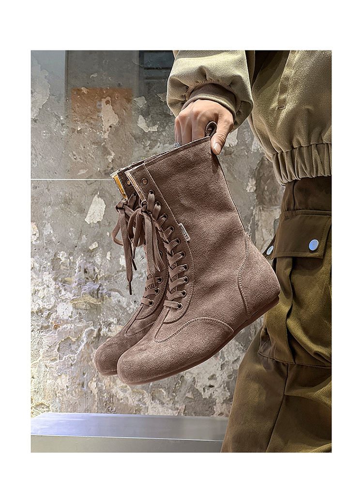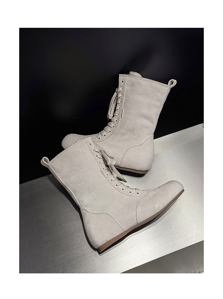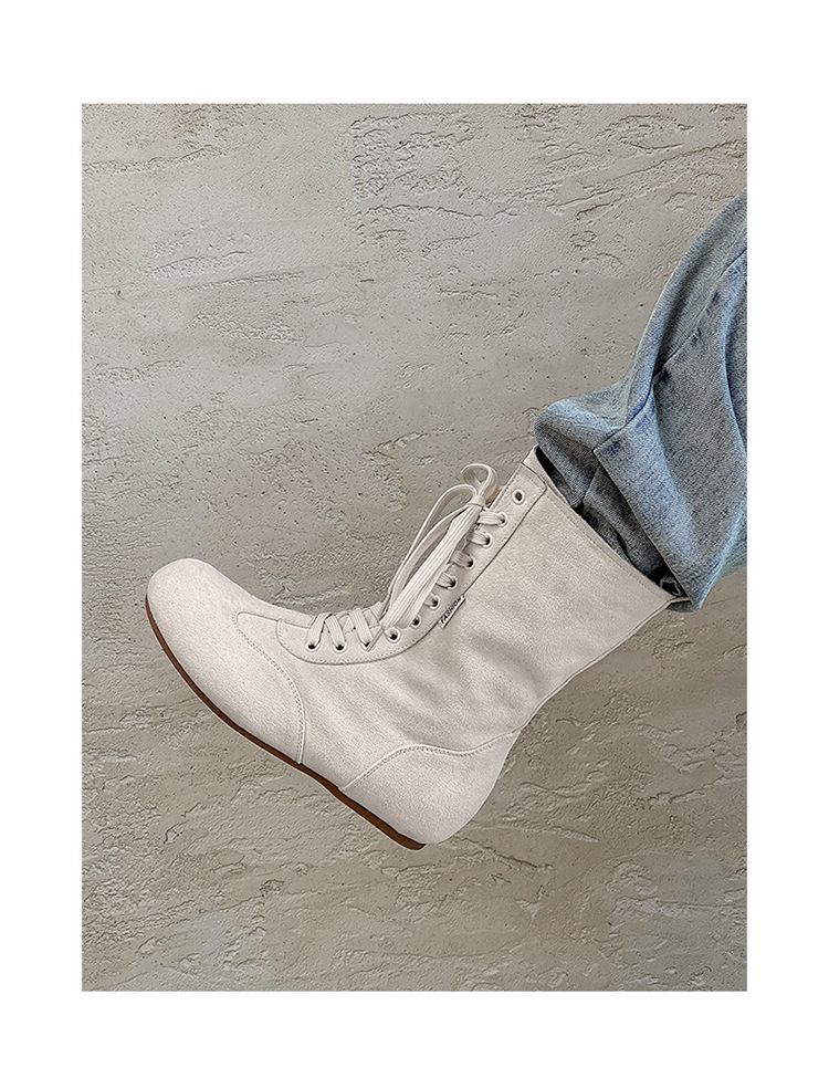 하이탑 카우보이 부츠 남녀공용 복싱부츠 레이스업 트렌디 커플 마틴부츠 23386 브라운 화이트-J