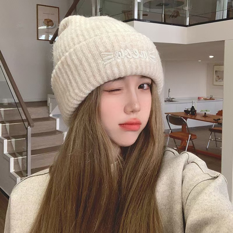 가을 겨울 여성용 머리둘레가 큰 귀여운 고양이 수염 모직 모자 한국식 다용도 얼굴이 보이는 작은 따뜻한 니트 모자 추운 모자 트렌드