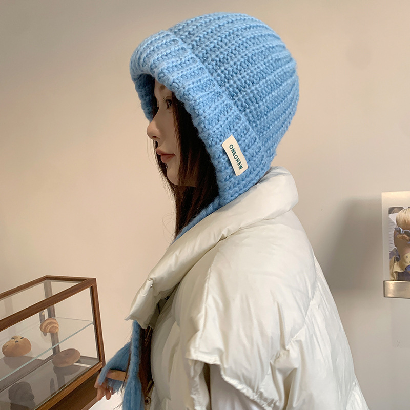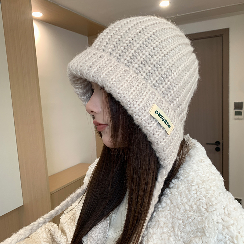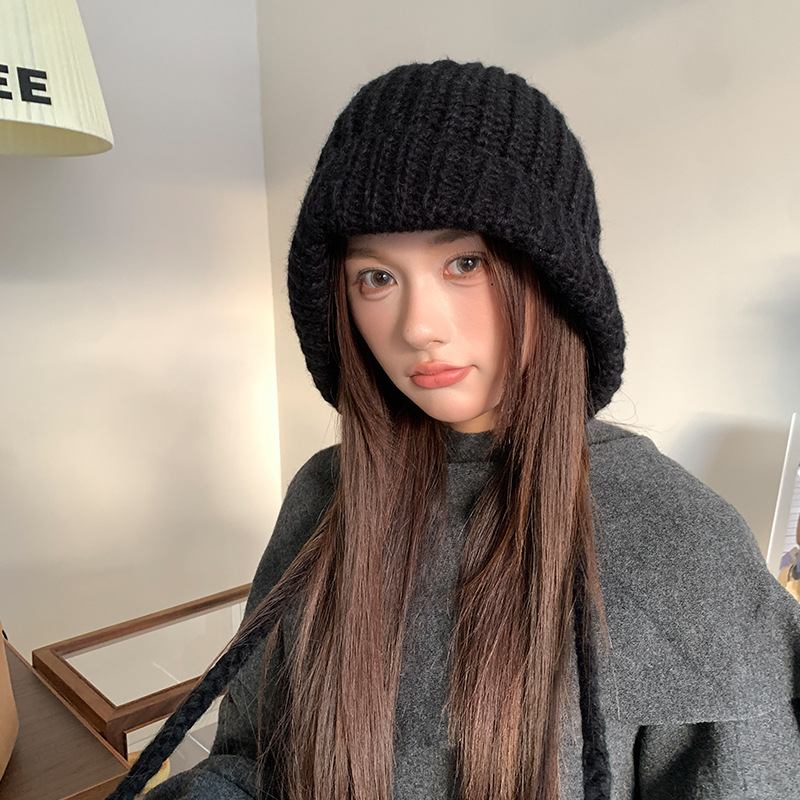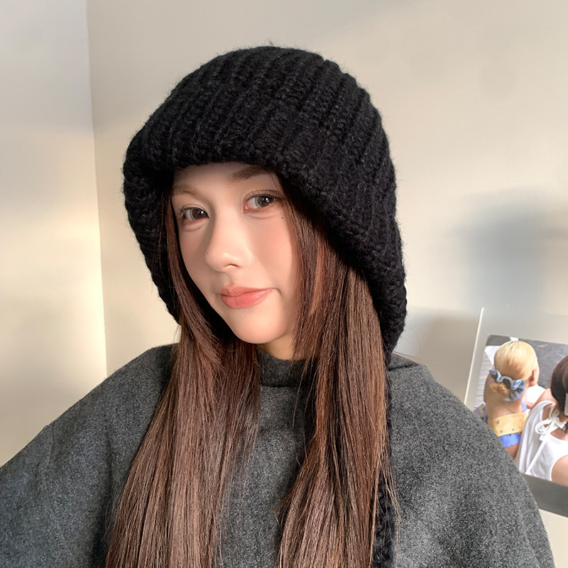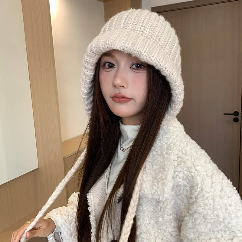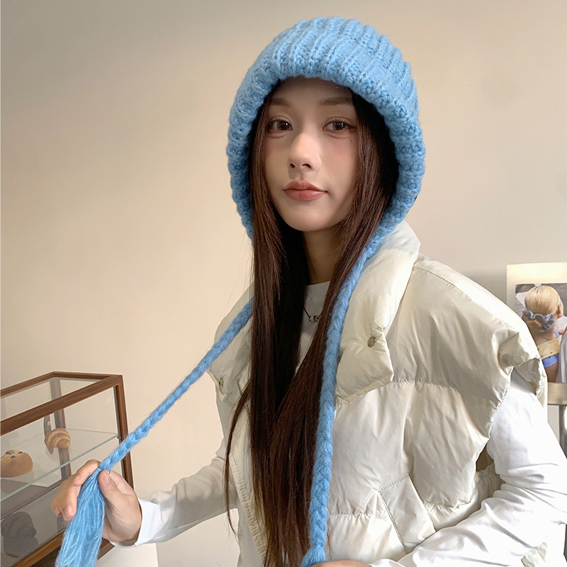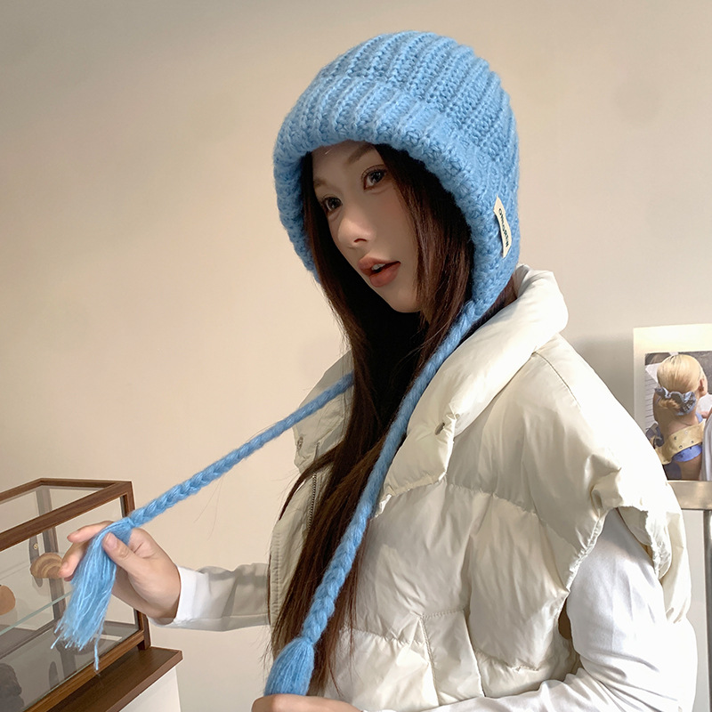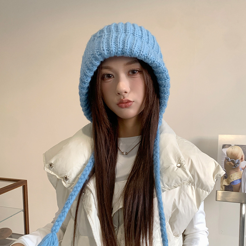 두개골이 큰 여성용 발라클라바 두꺼운 니트 모자, 겨울 방한 레이펑 모자, 따뜻하고 귀를 보호하는 모직 모자