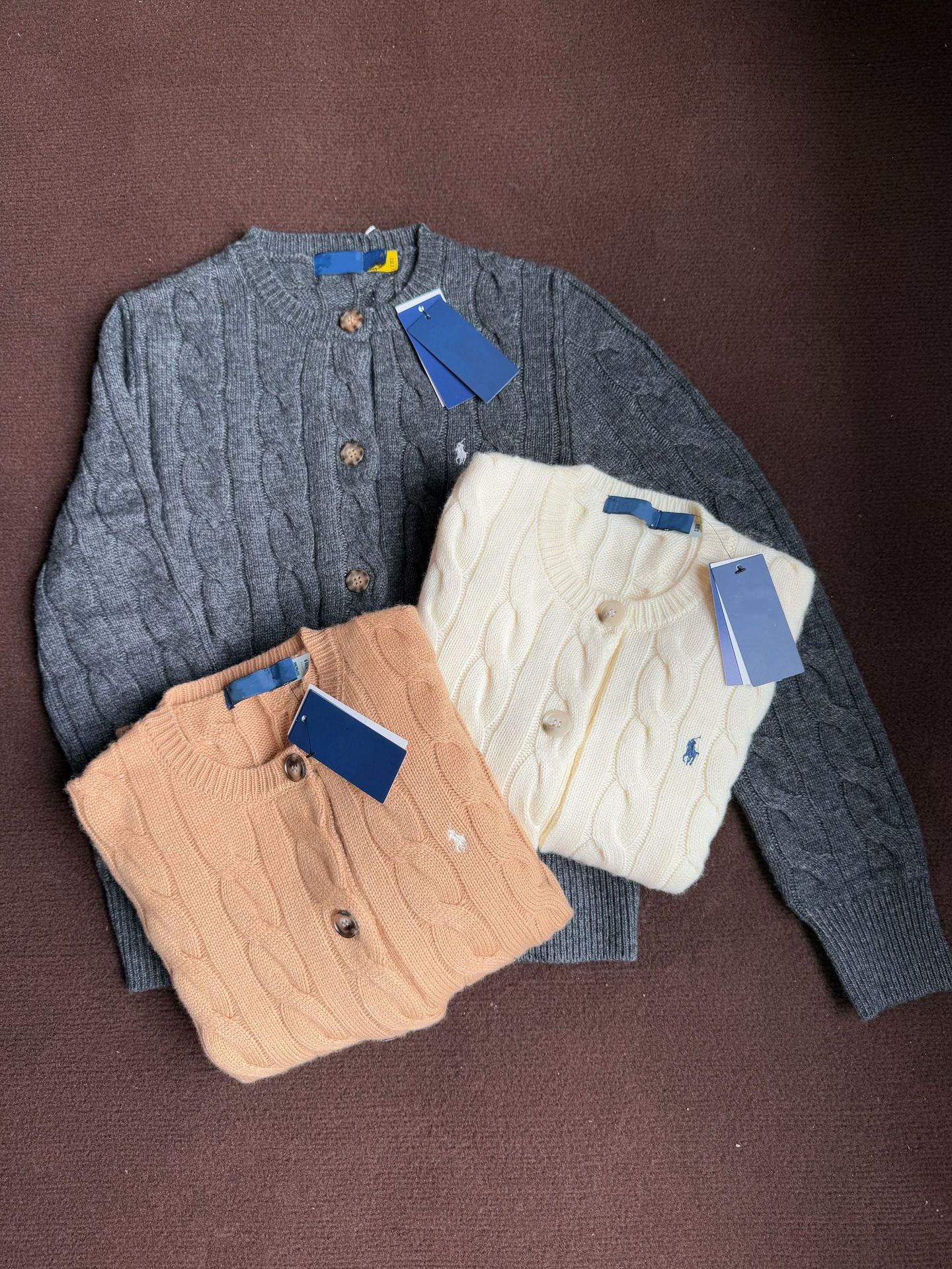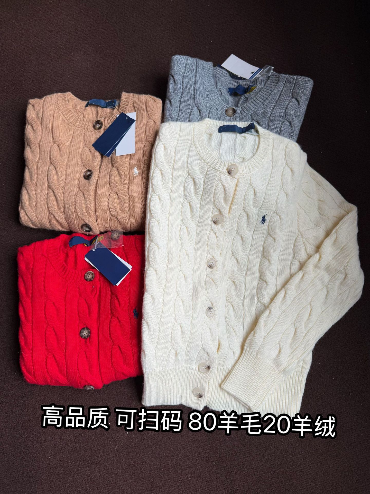 울 80% 캐시미어 20% 스캔 가능한 라프마 로고 자수 트위스트 니트 가디건 올드머니 스타일 트위스트 울 가디건