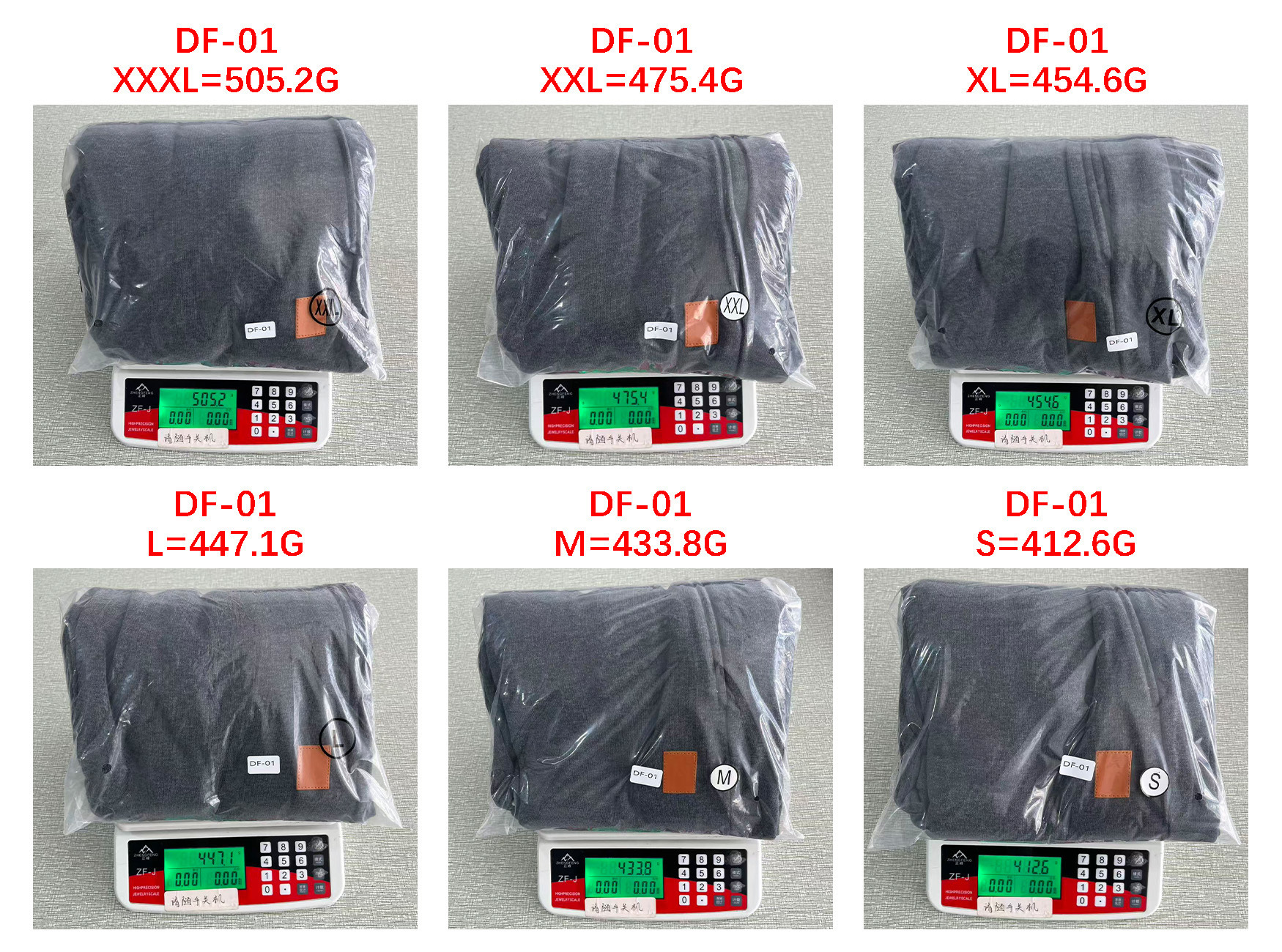 单件(套)净重:S:412g,M:433g,L:447g,XL:454g,2XL:475g,3XL:505g