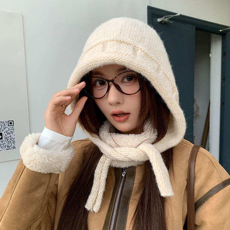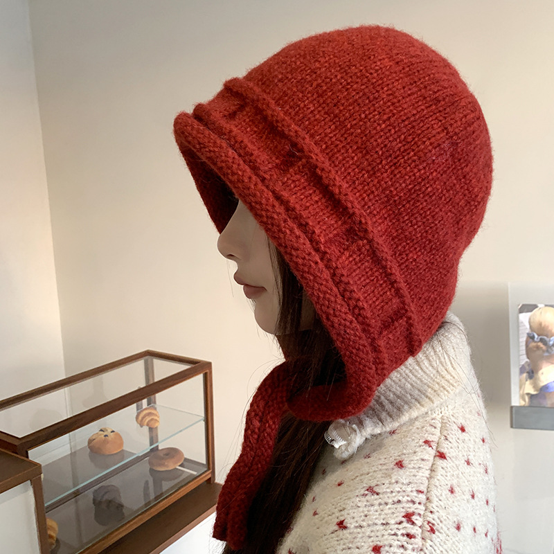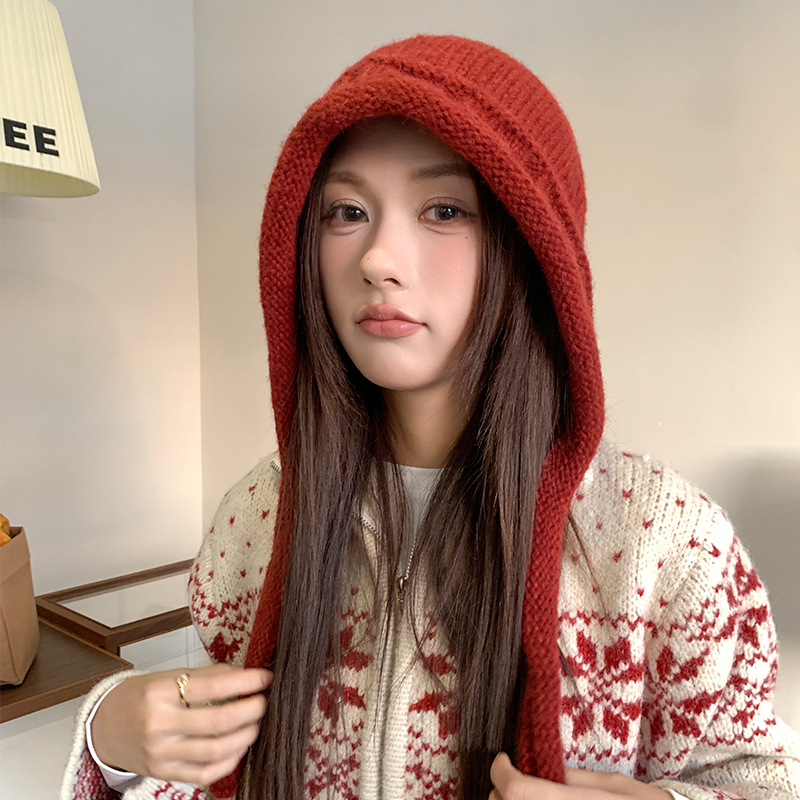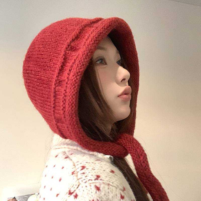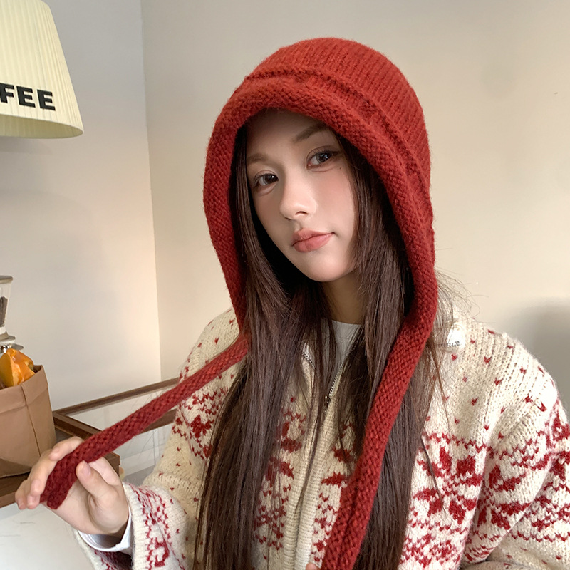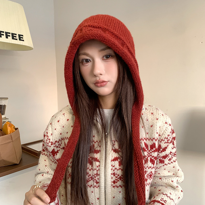 가을 겨울 여성용 발라클라바 레드 니트 모자 따뜻한 귀 보호 모직 모자 야외 사이클링 방한 레이펑 모자