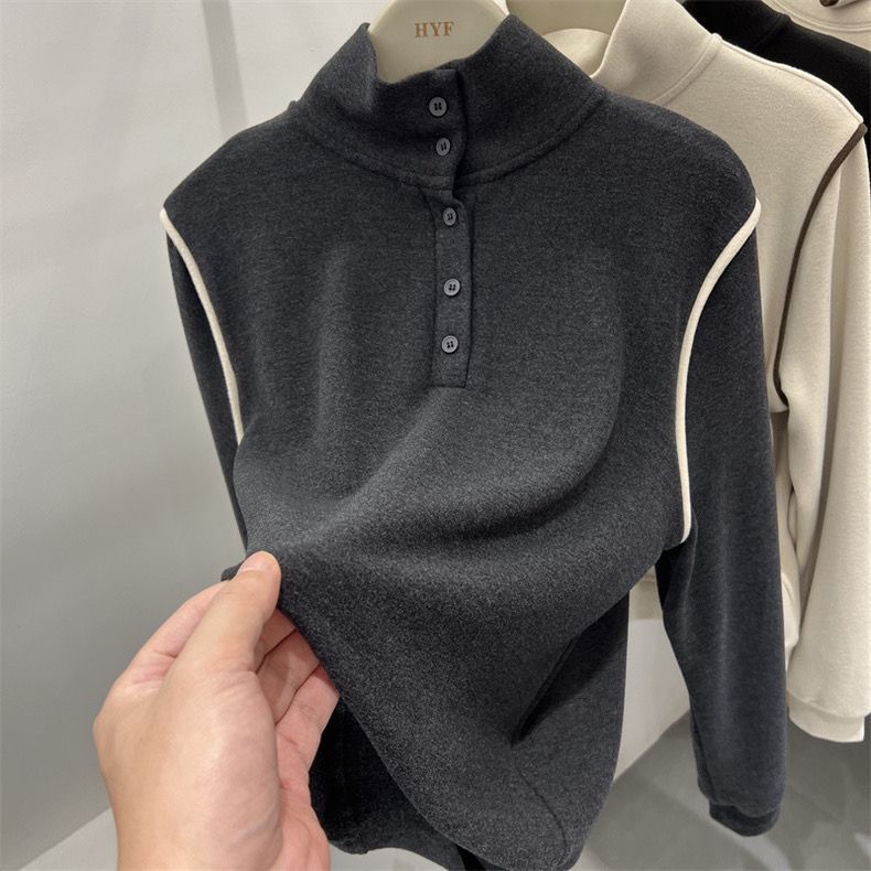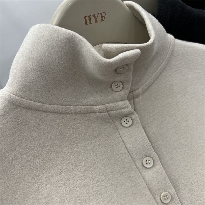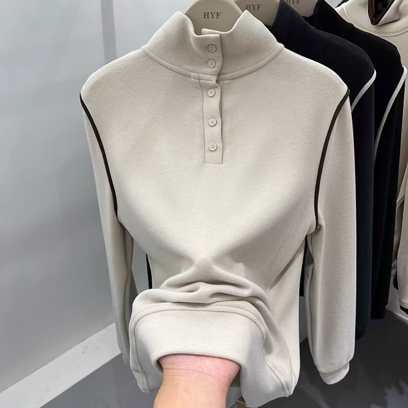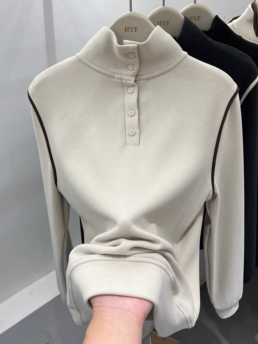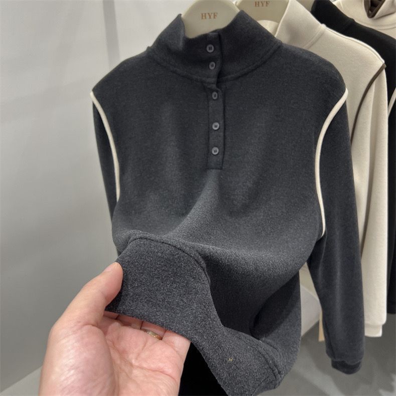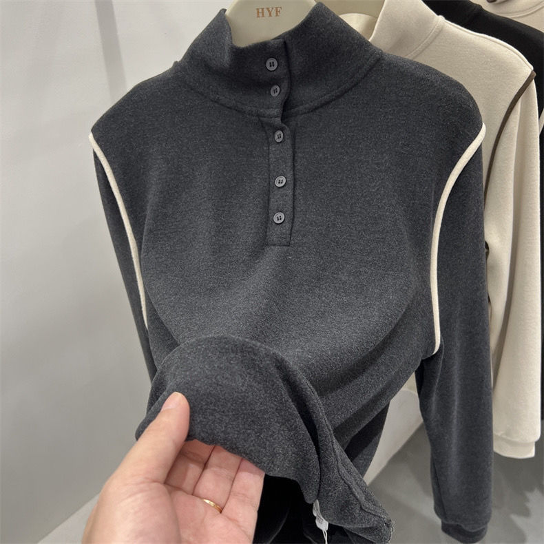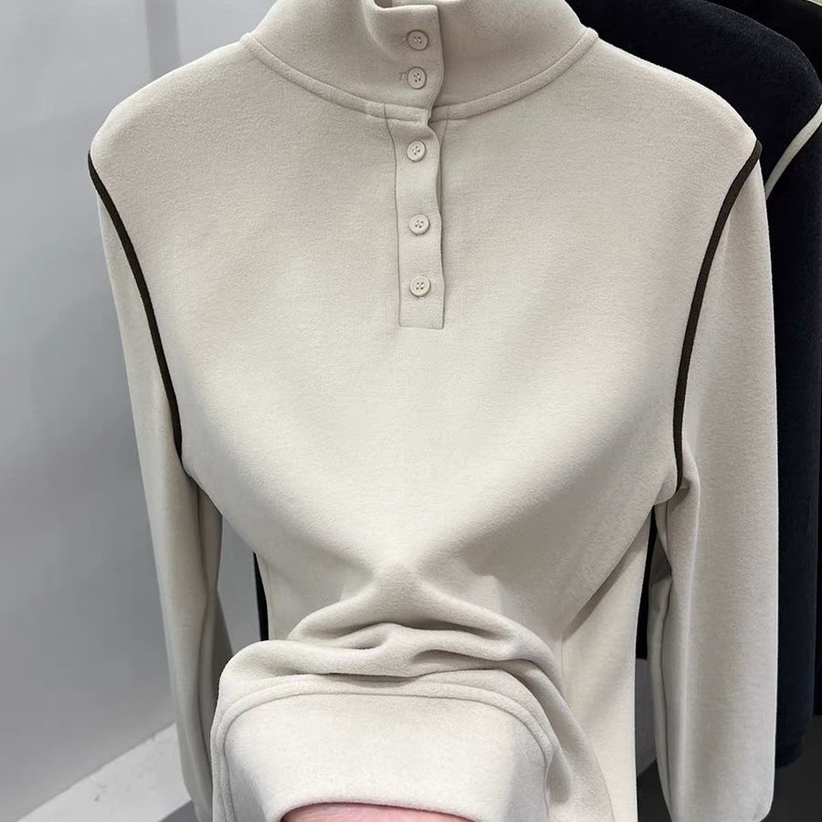 2025 가을 겨울 신작 버튼 하프 터틀넥 양면 기모 독일 벨벳 긴팔 티셔츠 여성용 이너 레이어드 셔츠 탑