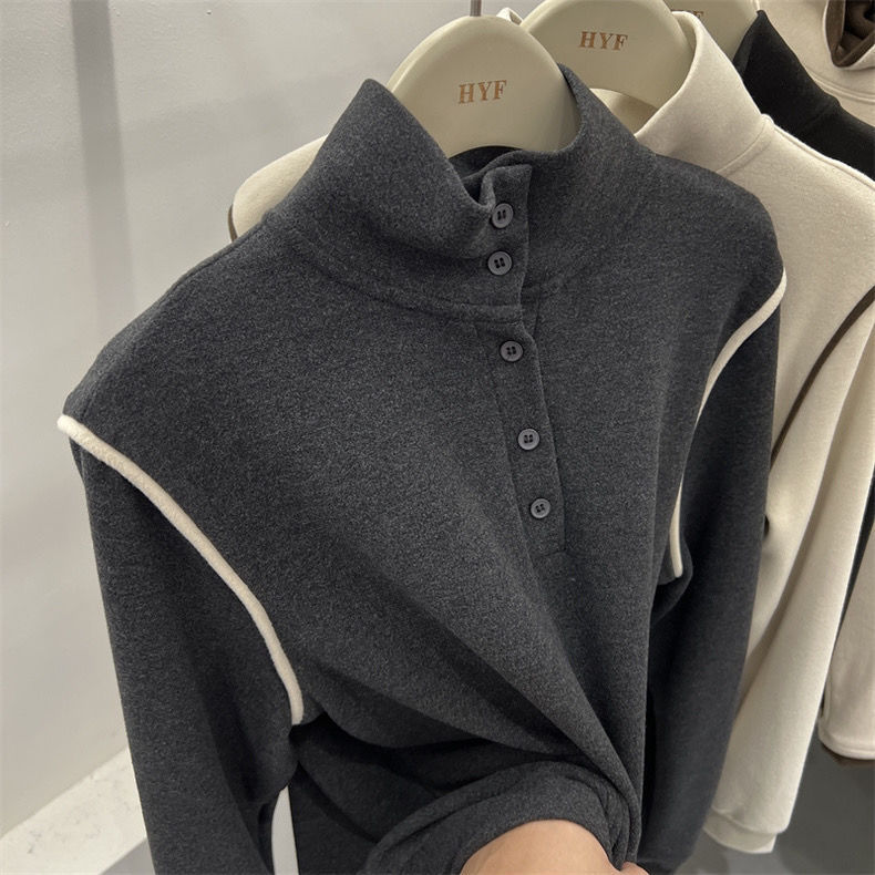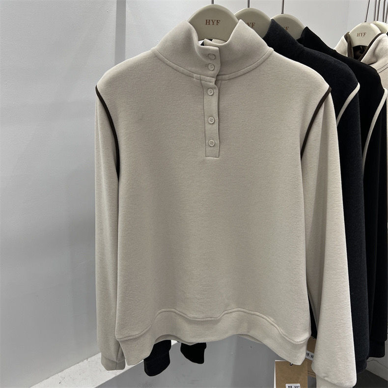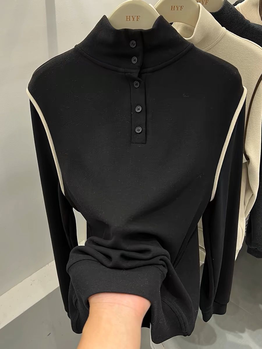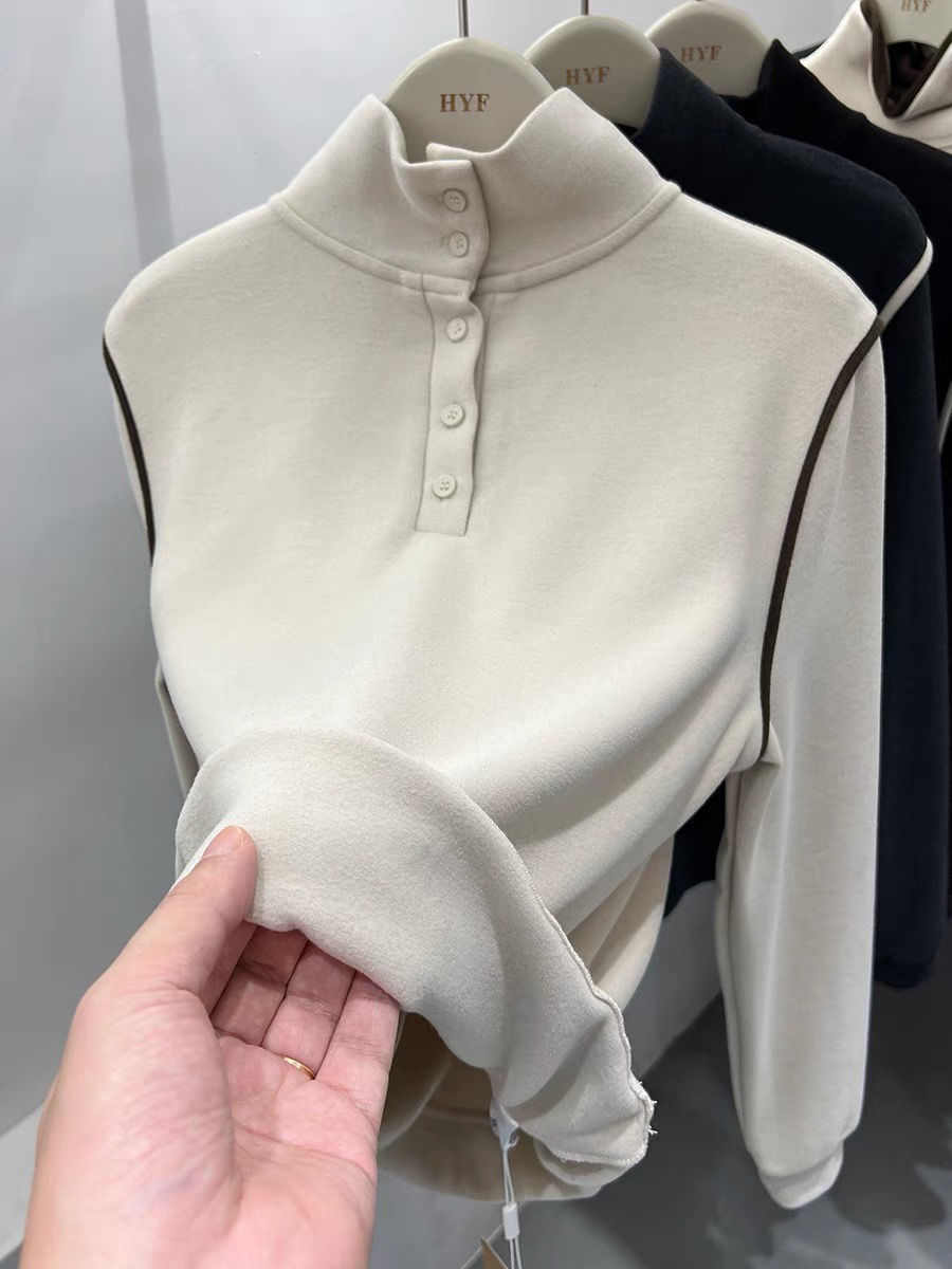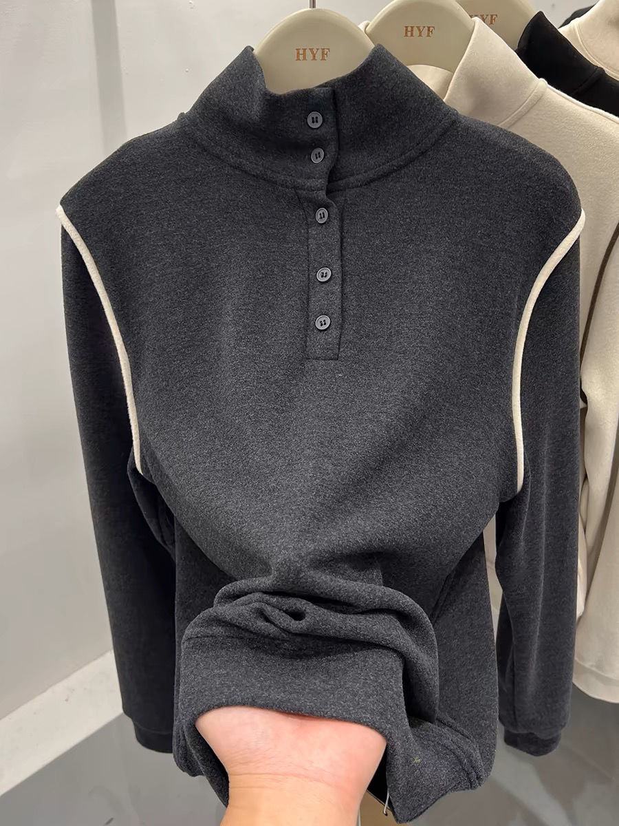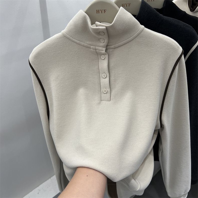 2025 가을 겨울 신작 버튼 하프 터틀넥 양면 기모 독일 벨벳 긴팔 티셔츠 여성용 이너 레이어드 셔츠 탑