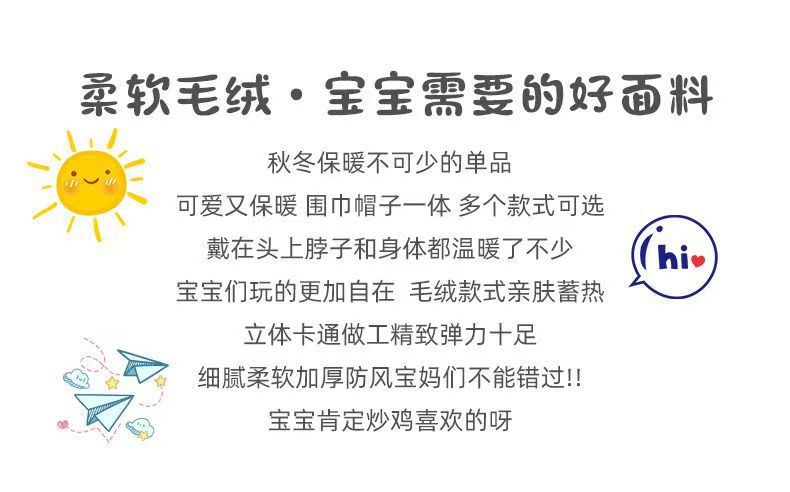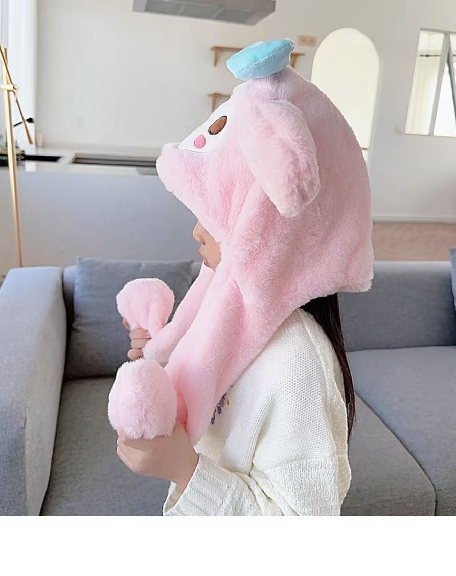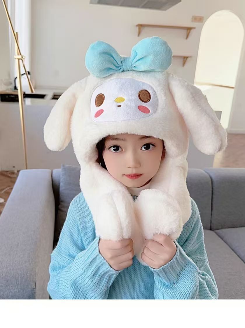 [귀가 움직일 수 있음] 겨울 신상 아동용 플러시 스카프 일체형 모자 귀여운 만화 에어백 아기 방풍모자