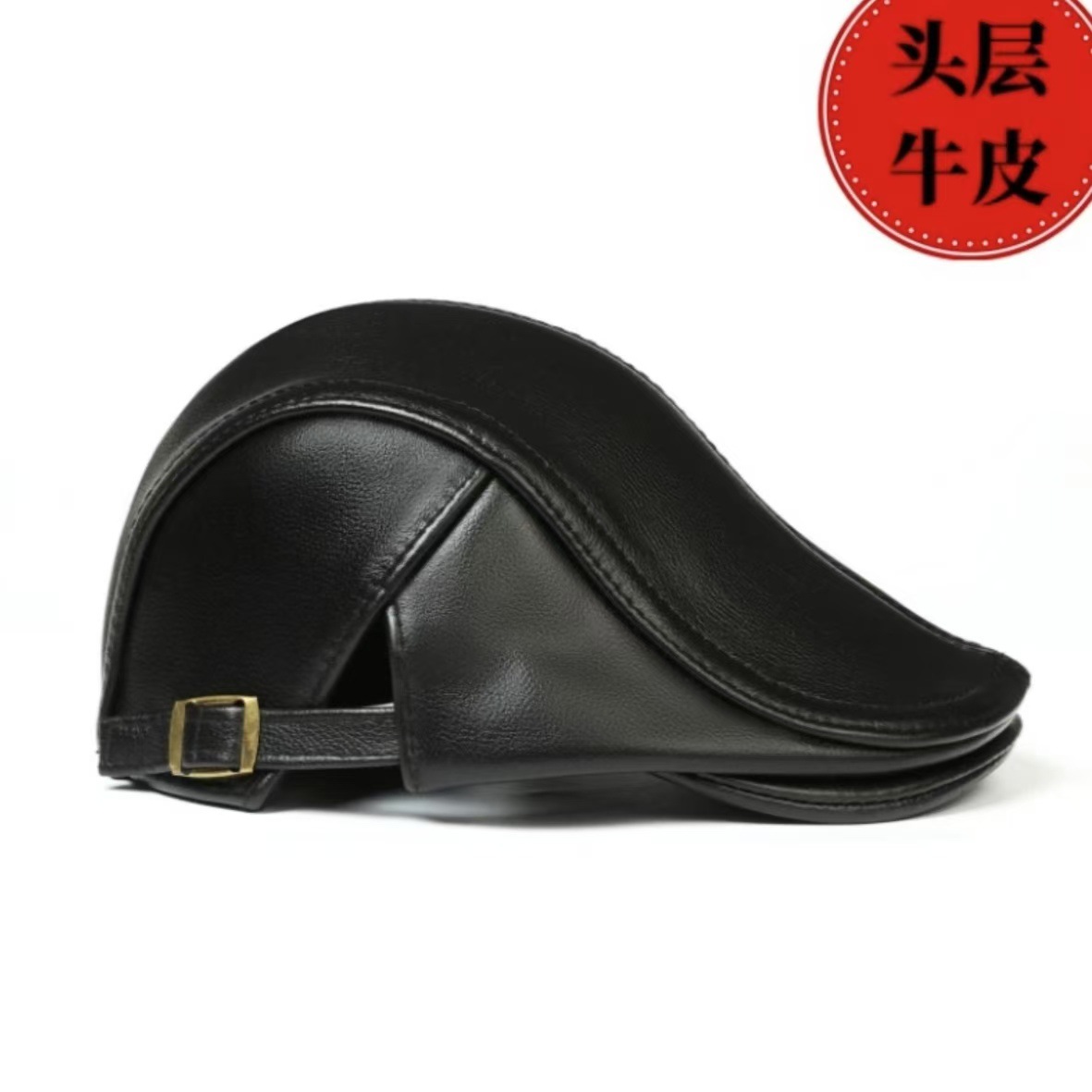 Yinxiyuan 소가죽 싱글 스타일 피크 캡 가죽 모자 봄, 가을 캐주얼 소가죽 베레모 남성 패션 포워드 모자
